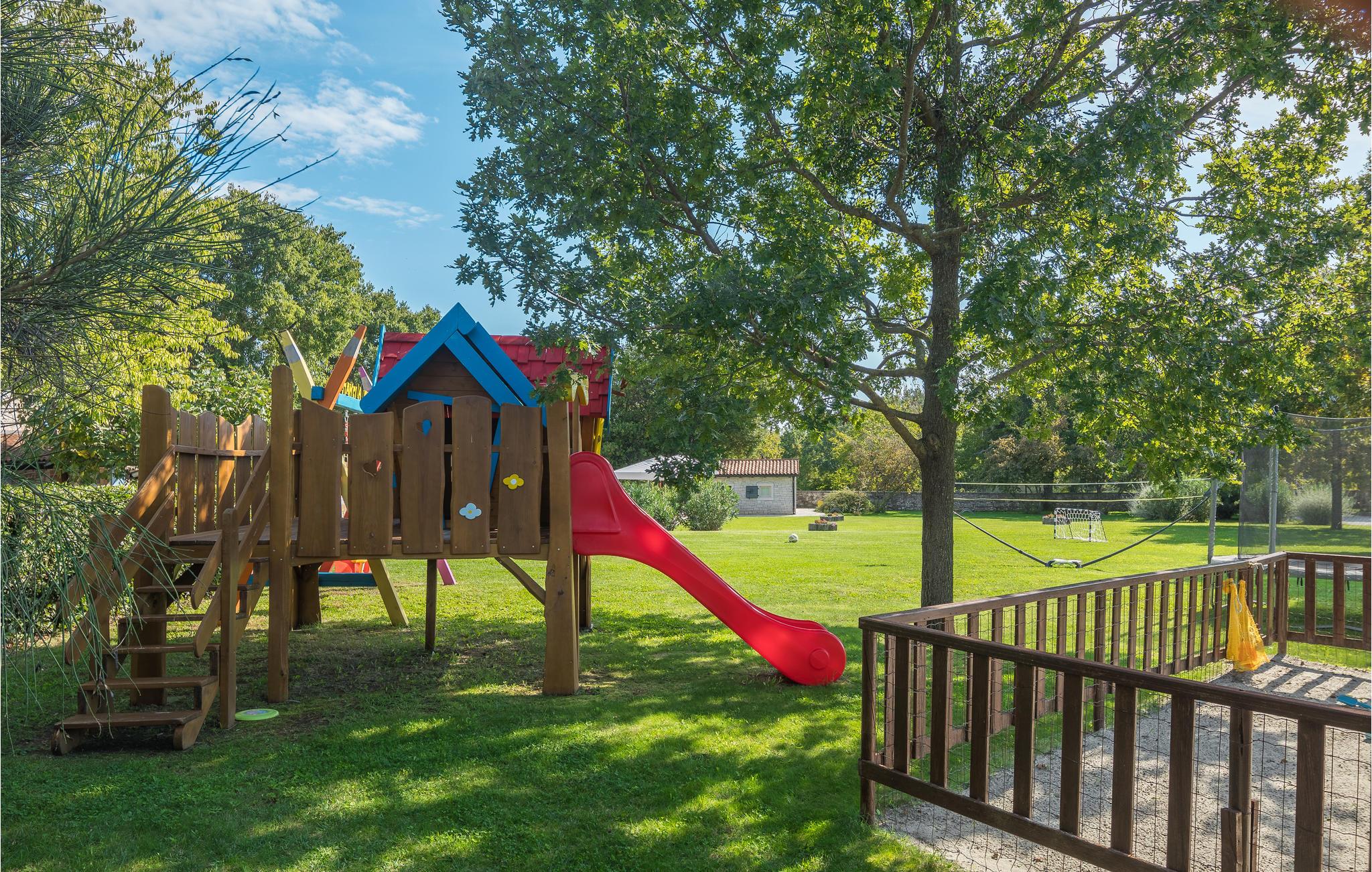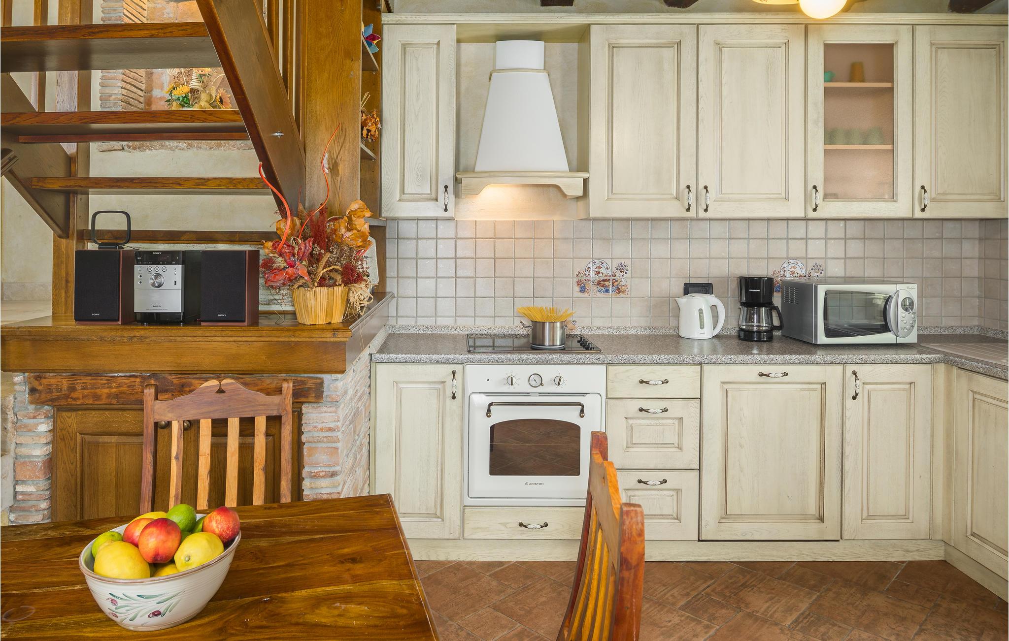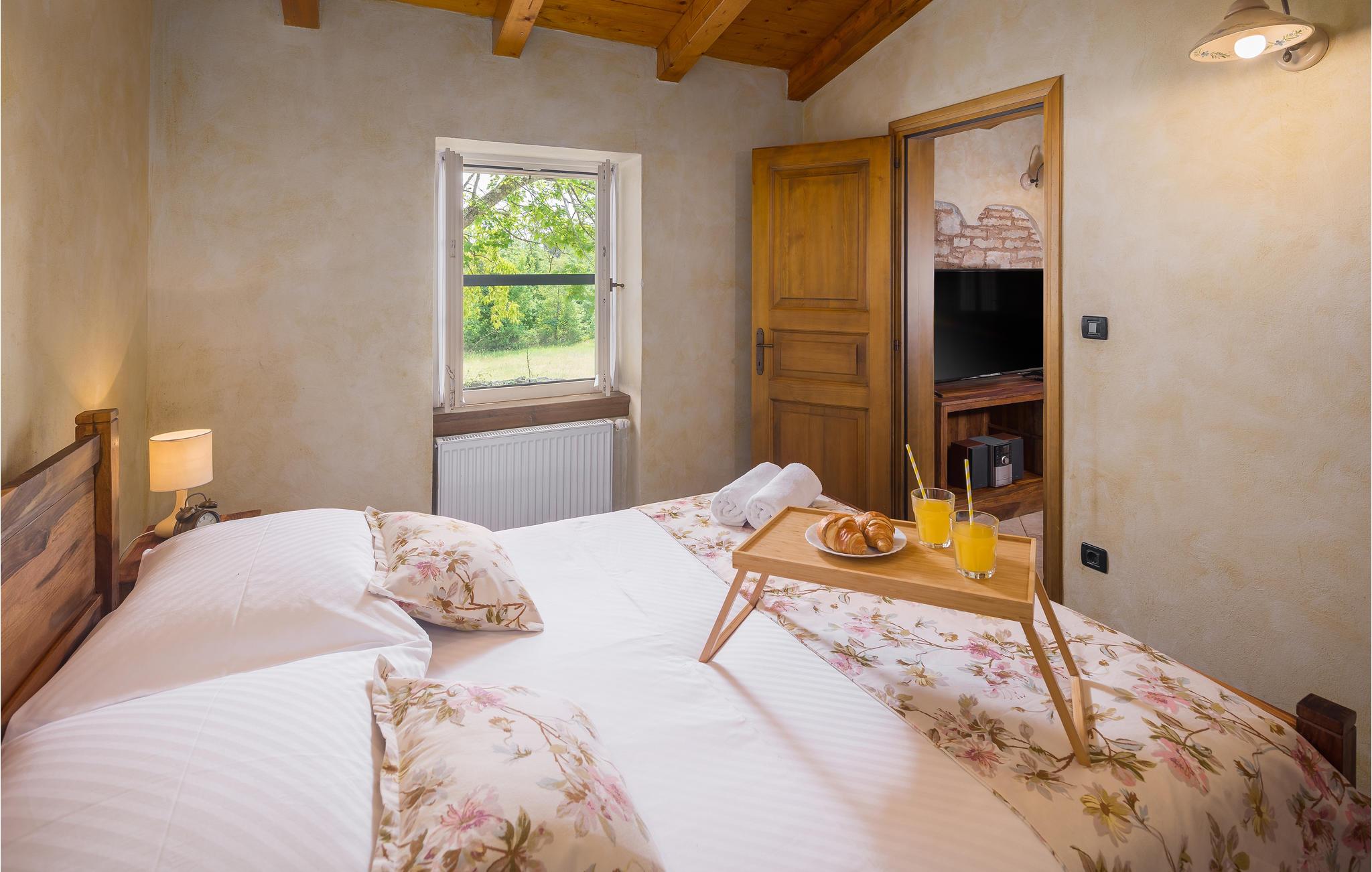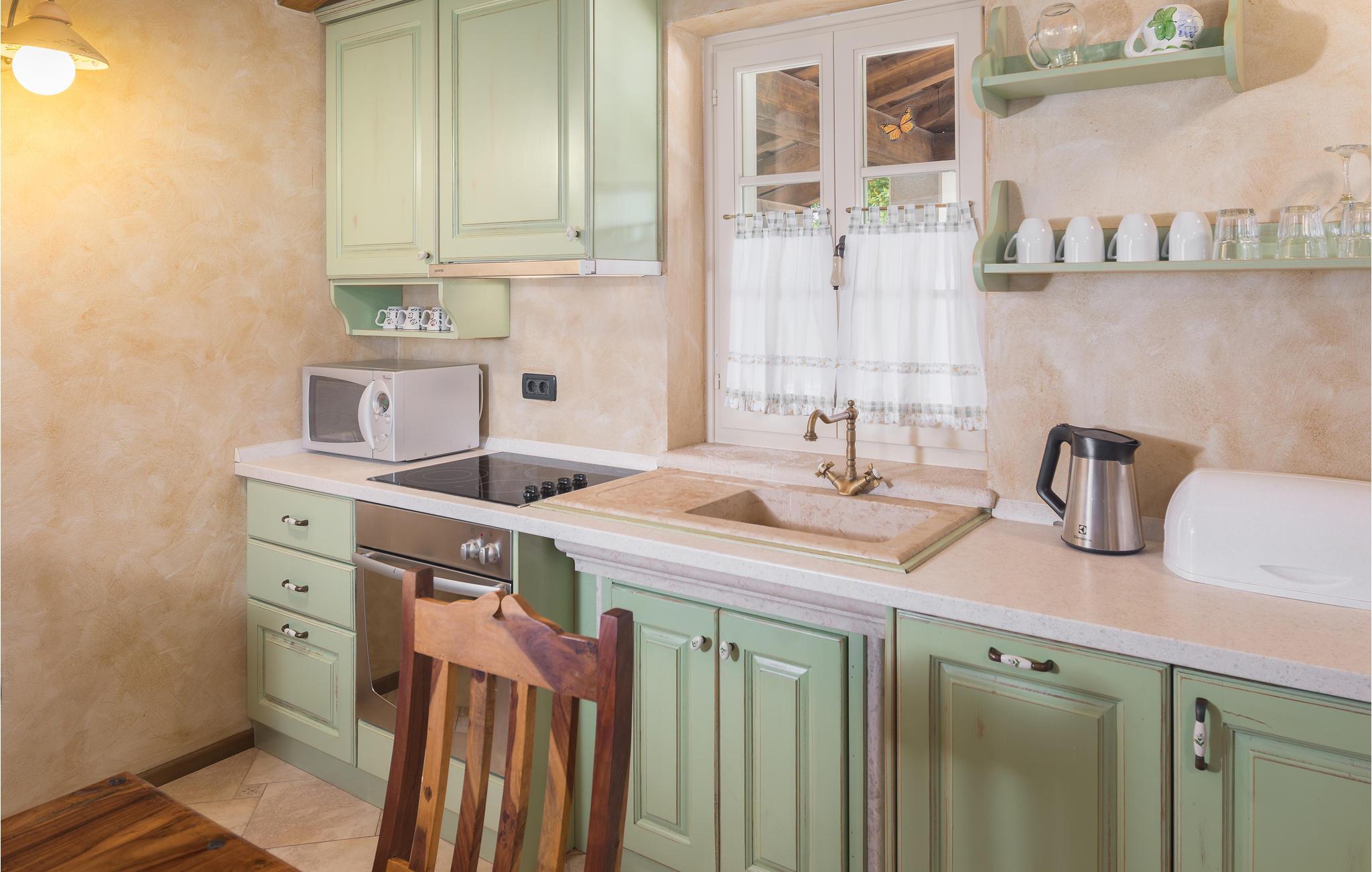 Dieses wunderschöne und exklusive Anwesen in guter Lage, unweit der mittelalterlichen Stadt Tinjan gelegen, lädt Sie zum Entspannen und Wohlfühlen ein. Auf dem 4000 m2 großen, gepflegten Grundstück befinden sich drei gut ausgestattete Wohneinheiten. Sie alle bestehen aus Wohnbereich und Küche, Schlafzimmern und Bad. Das Badezimmer Nr. 6 ist in einem separat Gebäude im Garten. Die Wohnungen verfügen darüber hinaus über einen gemeinsamen Außenpool, Sauna und Fitnessraum. 5 Fahrräder stehen zur Verfügung, womit die Gäste die schöne Gegend und andere Teile Istriens erkunden können. Das Anwesen ist fast 100 Jahre alt, wurde jedoch 2007 komplett renoviert und mit geschmackvollen und rustikalen Möbeln eingerichtet. Besuchen Sie Tinjan, die als Stadt des getrockneten Schinkens - Prsut bekannt ist. Diese Gegend können Sie sehr gut auf Wander- oder Radwegen erforschen, hier können Sie beides gleich gut, ausspannen oder einen Aktivurlaub verbringen. Wir empfehlen Ihnen die Weinstraßen der Region und die malerischen Kleinstädte im Inland und natürlich die berühmten Badestrände von Rabac und Opatija an der Ostküste zu besuchen. Besuchen Sie auch die Cave Baredine! Entdecken Sie die kleinen, mittelalterlichen Städte in der Gegend wie Motovun, wo Ende Juli das jährliche, internationale Filmfestival stattfindet oder Hum, die als die kleinste Stadt der Welt gilt. Fahren Sie entlang der Weinstraße und probieren Sie köstliche, lokal produzierte Weine und entdecken Sie, wie lecker Prsut, ein geräucherter Schinken, oder Trüffel schmecken, die in vielen Konobas angeboten werden.