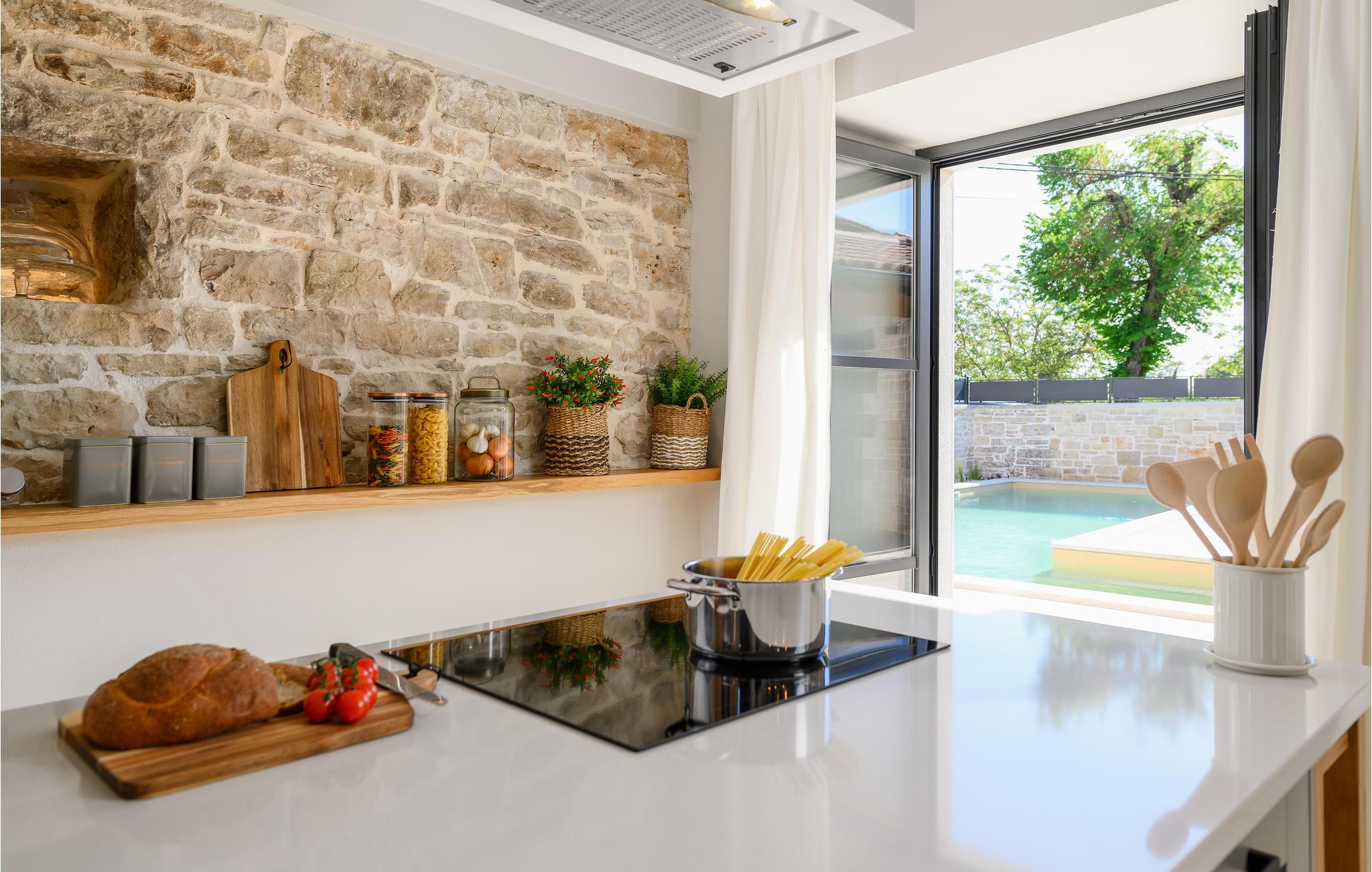 In dieser hübschen Villa verbringen Sie einen wahren Traumurlaub unter der kroatischen Sonne. Kommen Sie mit der ganzen Familie oder Ihren Freunden an diesen einladenden Ort, um eine wunderbare Zeit mit vielen Annehmlichkeiten zu verbringen. Die Schlaf- und Wohnräume bieten Ihnen genügend Platz, um sich für Ihre Urlaubszeit bequem einzurichten und sich wie zu Hause zu fühlen. Aber Sie werden wahrscheinlich viele Stunden im Außenbereich verbringen. Hier können Sie sich im Pool erfrischen, auf der Terrasse sonnen, die Kinder können im Garten spielen und am Abend sitzen Sie bei einem leckeren Barbecue gesellig unter dem überdachten Bereich mit Außenküche beisammen und lassen Ihre erlebnisreichen Tage Revue passieren.