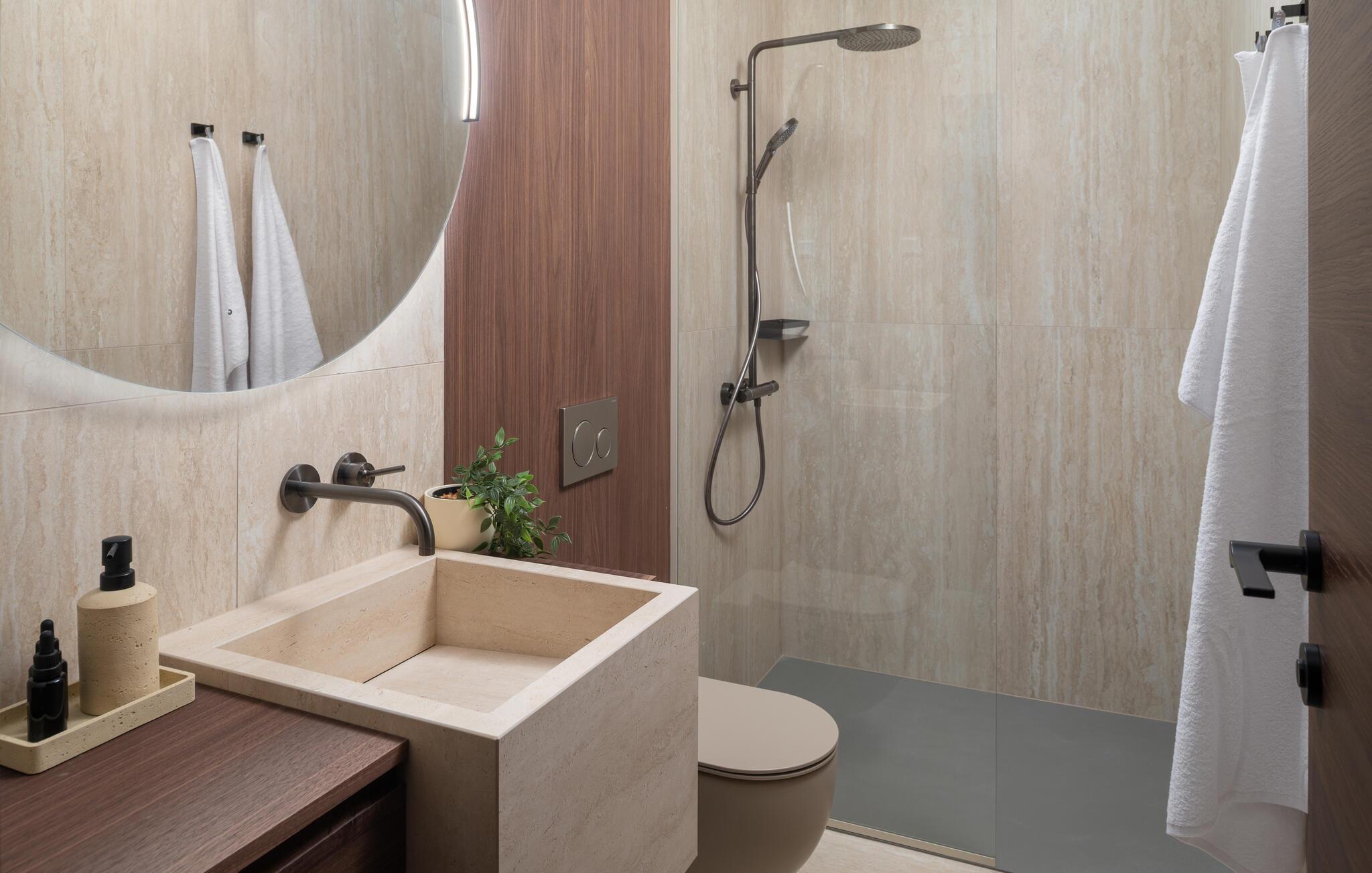 Badezimmer 5m2 (nr. 1) - WC. Warmes und kaltes Wasser. Dusche