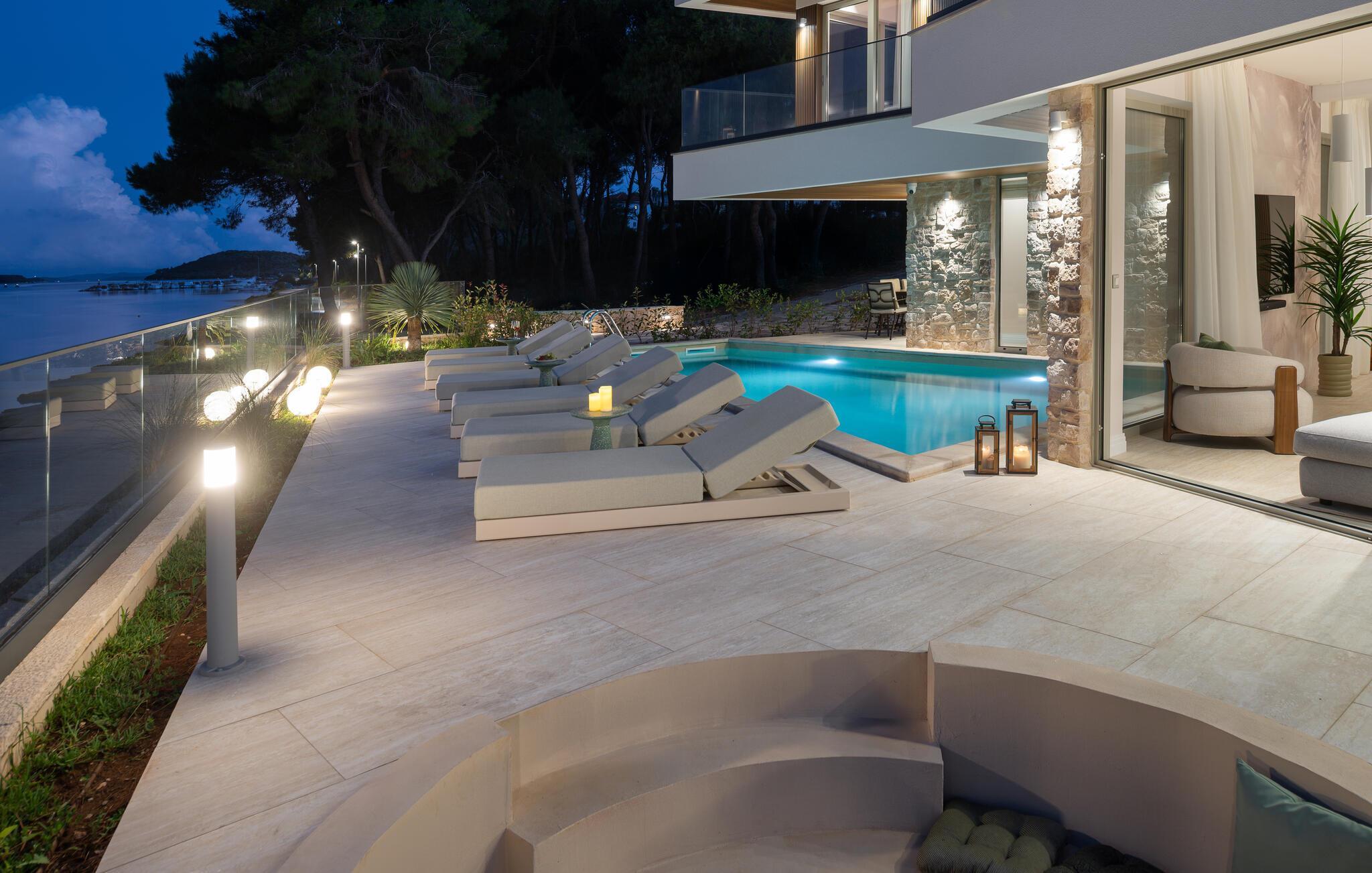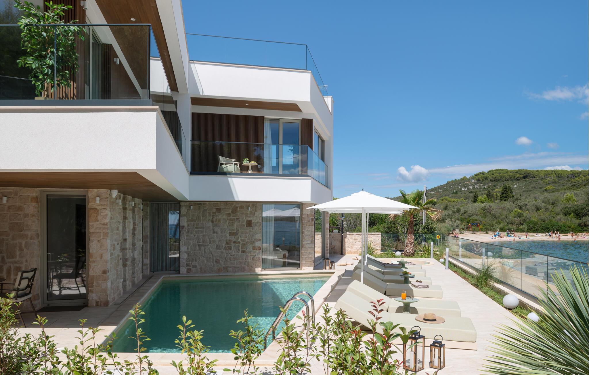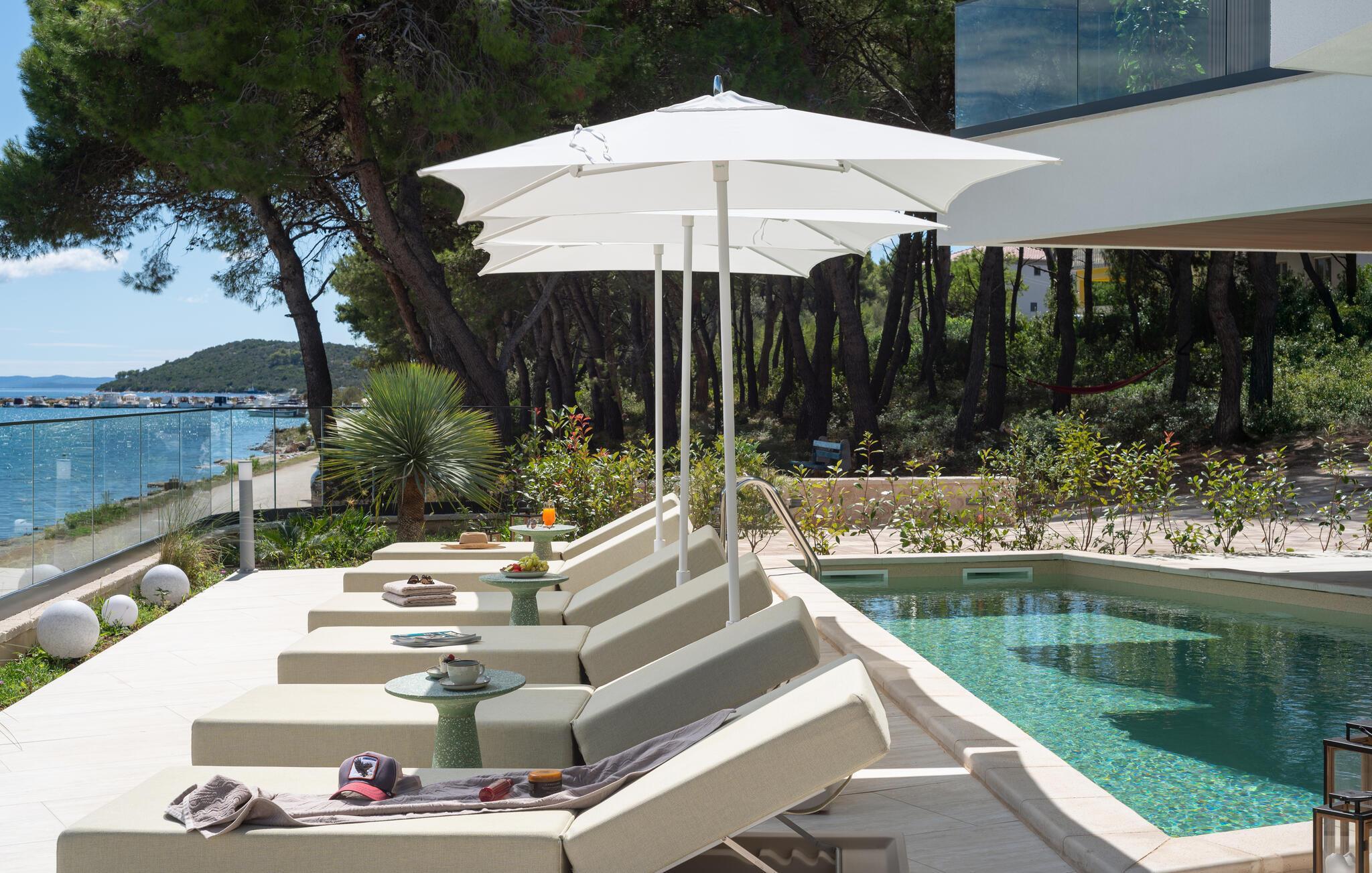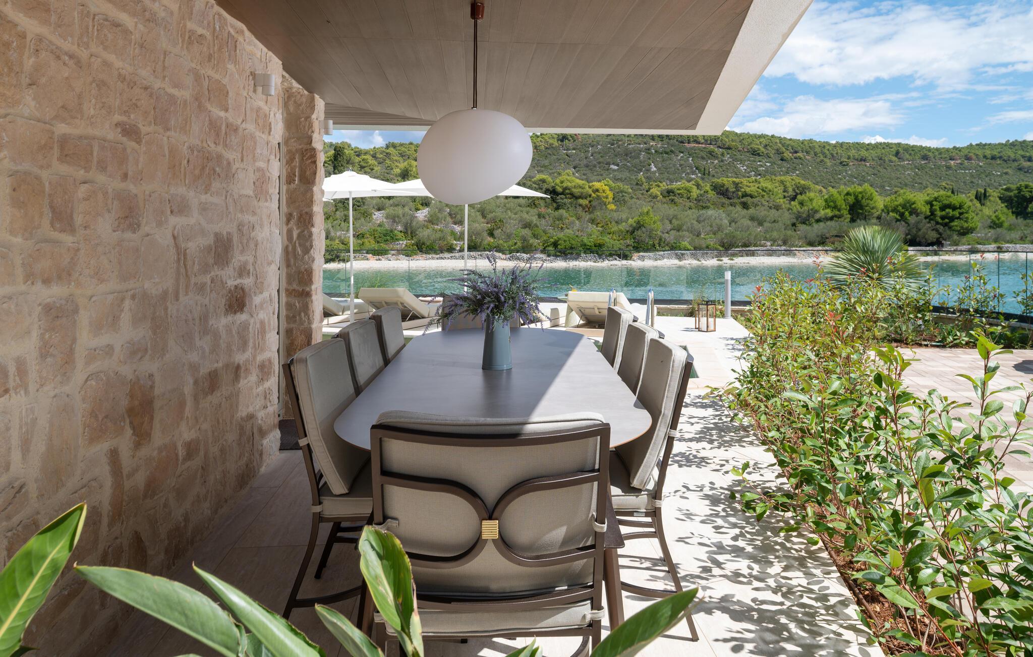 Der elegante Außenbereich ist wie geschaffen, um das herrliche Klima in vollen Zügen zu genießen. Ob Sie sich im Pool erfrischen, ein Frühstück im Schatten genießen oder sich von der Sonne bescheinen lassen – die ruhige Bucht haben Sie dabei stets im Blick.