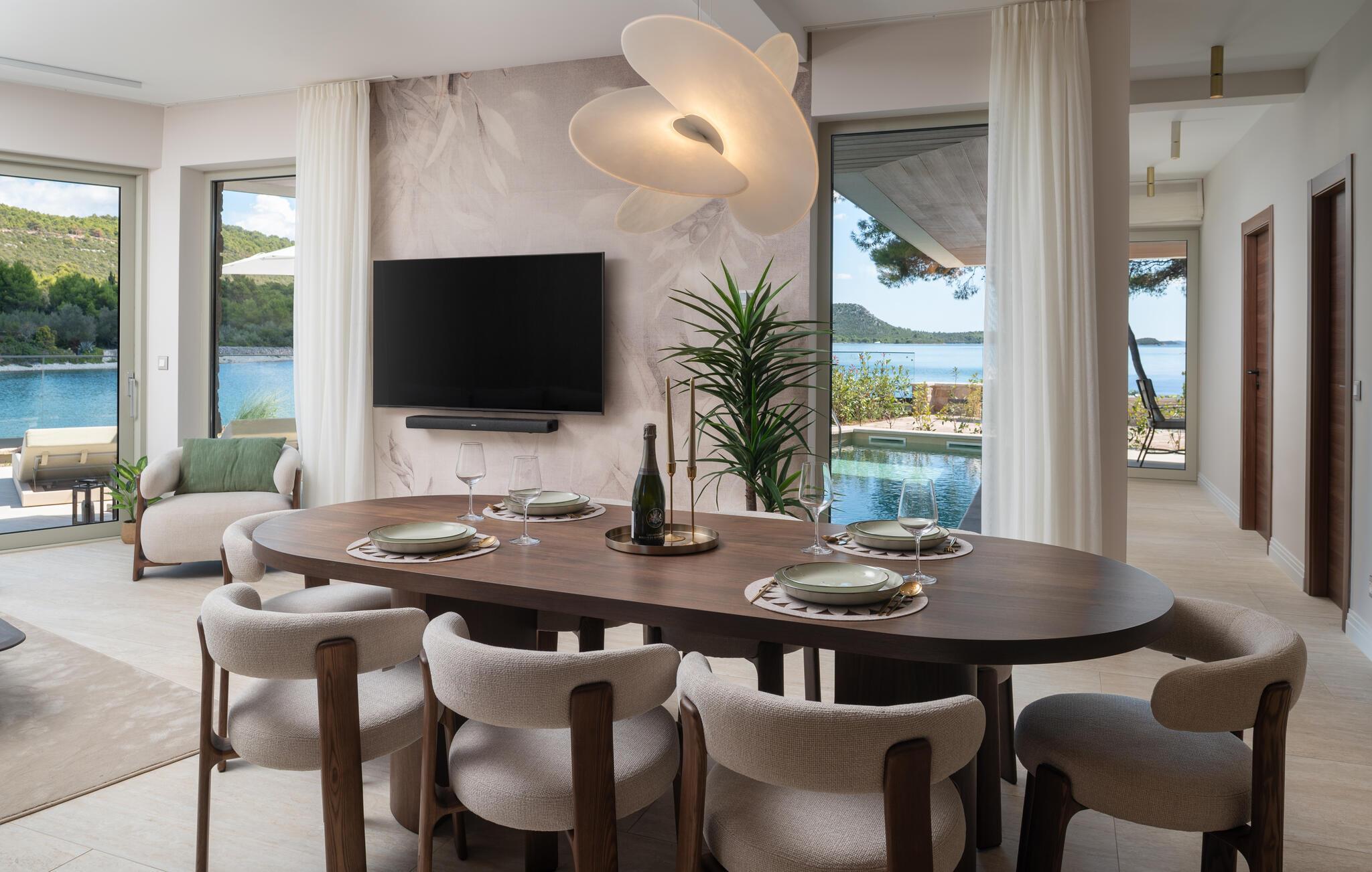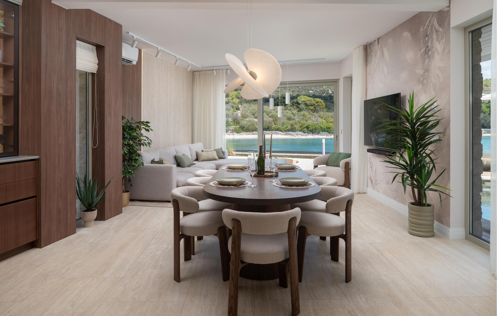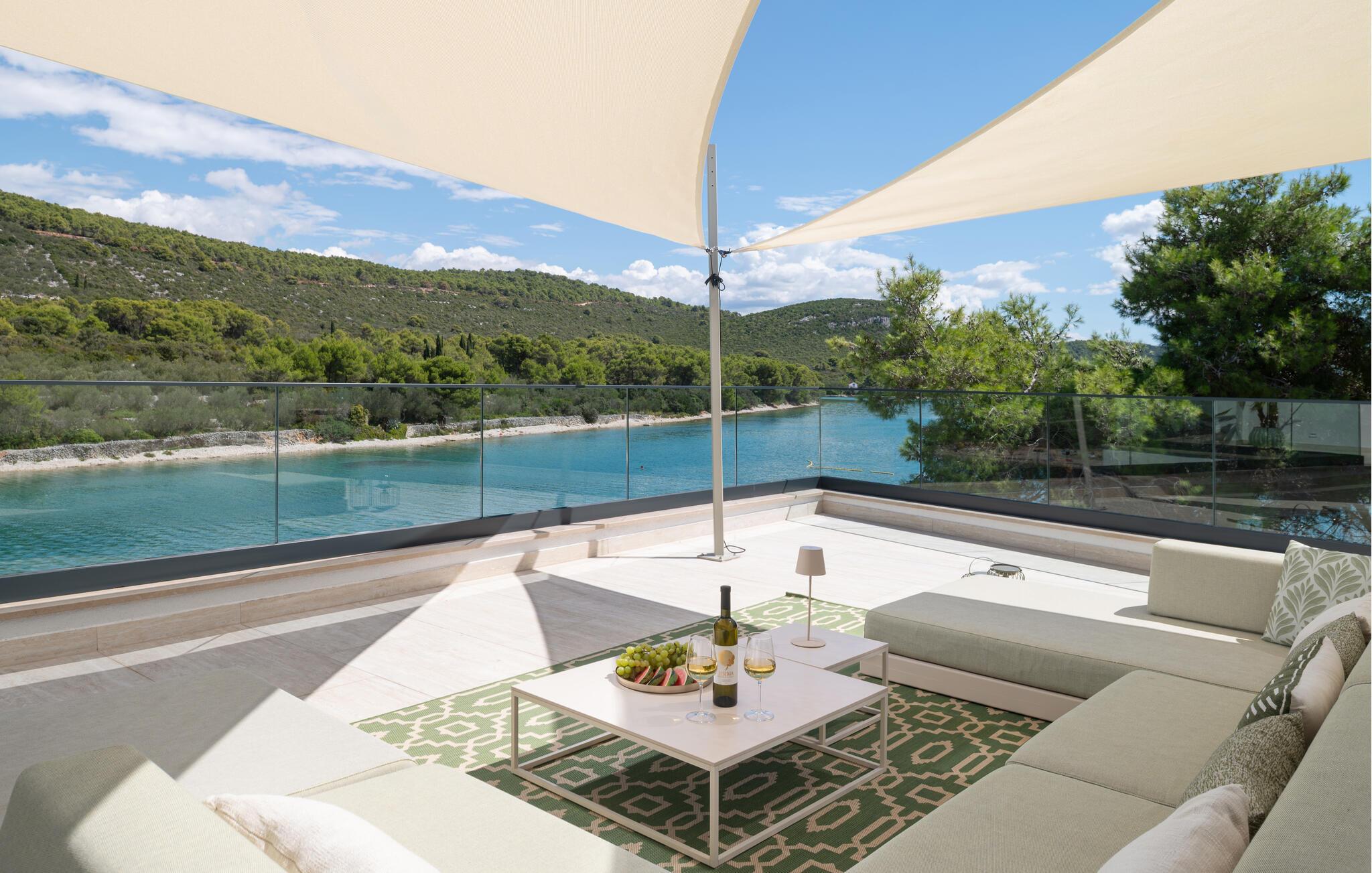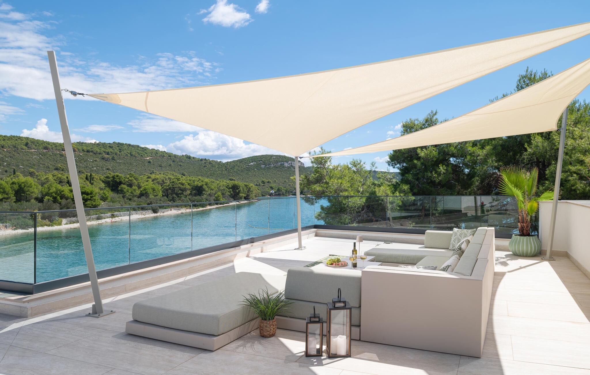 Der elegante Außenbereich ist wie geschaffen, um das herrliche Klima in vollen Zügen zu genießen. Ob Sie sich im Pool erfrischen, ein Frühstück im Schatten genießen oder sich von der Sonne bescheinen lassen – die ruhige Bucht haben Sie dabei stets im Blick.