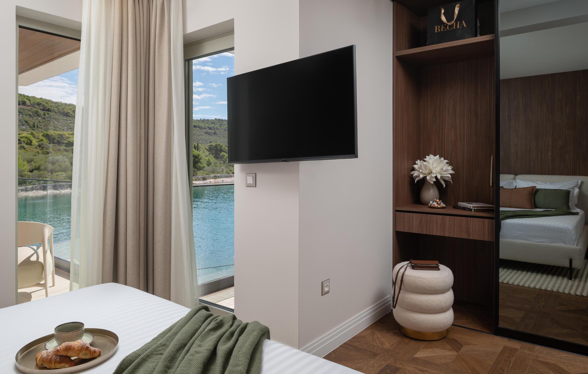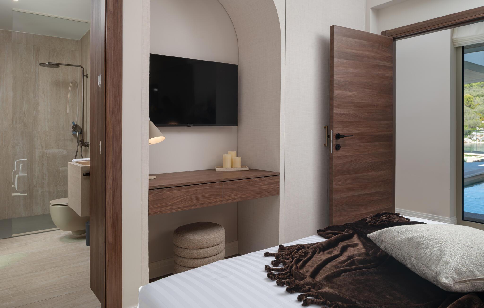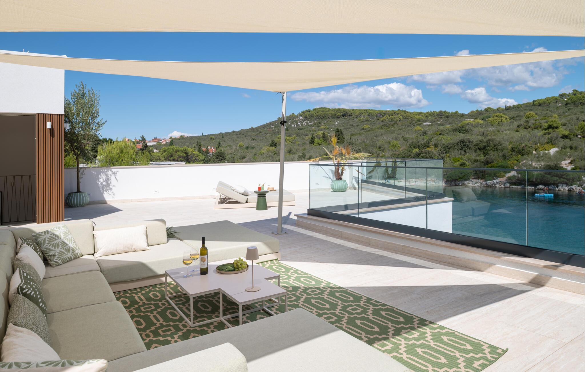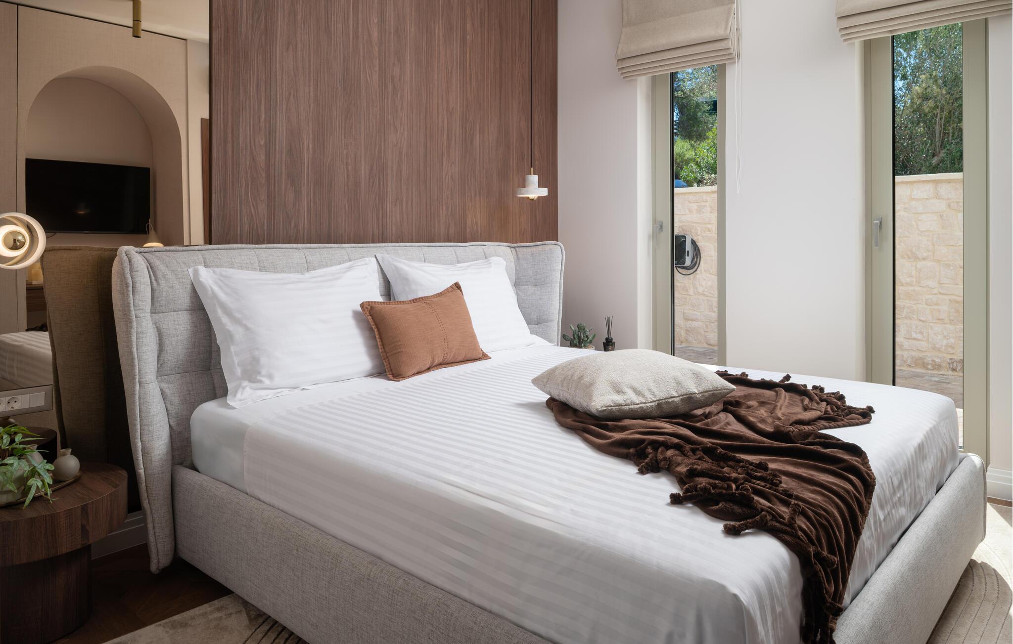 Der elegante Außenbereich ist wie geschaffen, um das herrliche Klima in vollen Zügen zu genießen. Ob Sie sich im Pool erfrischen, ein Frühstück im Schatten genießen oder sich von der Sonne bescheinen lassen – die ruhige Bucht haben Sie dabei stets im Blick.