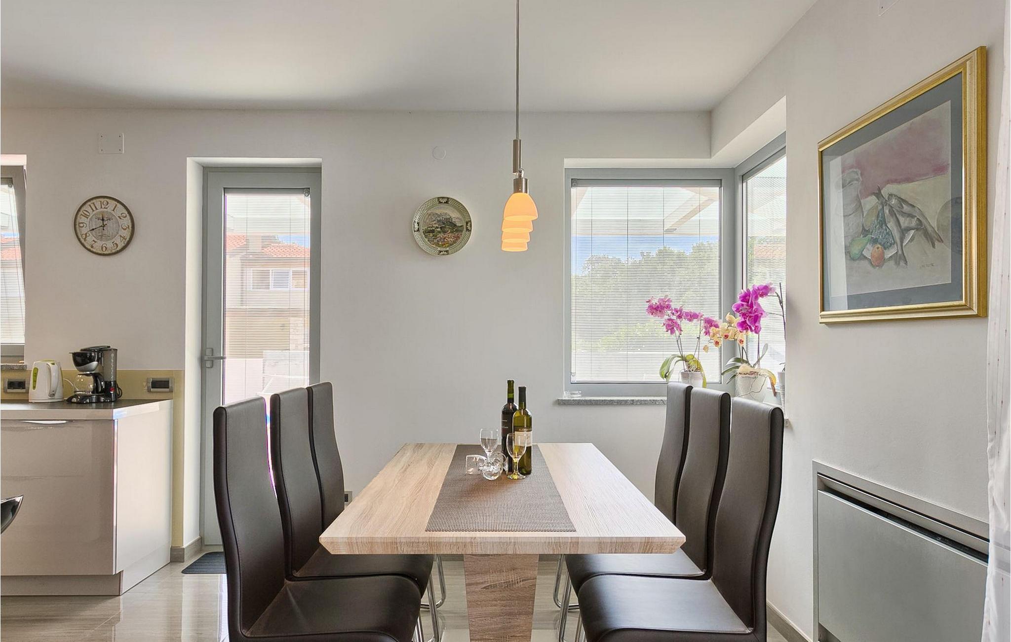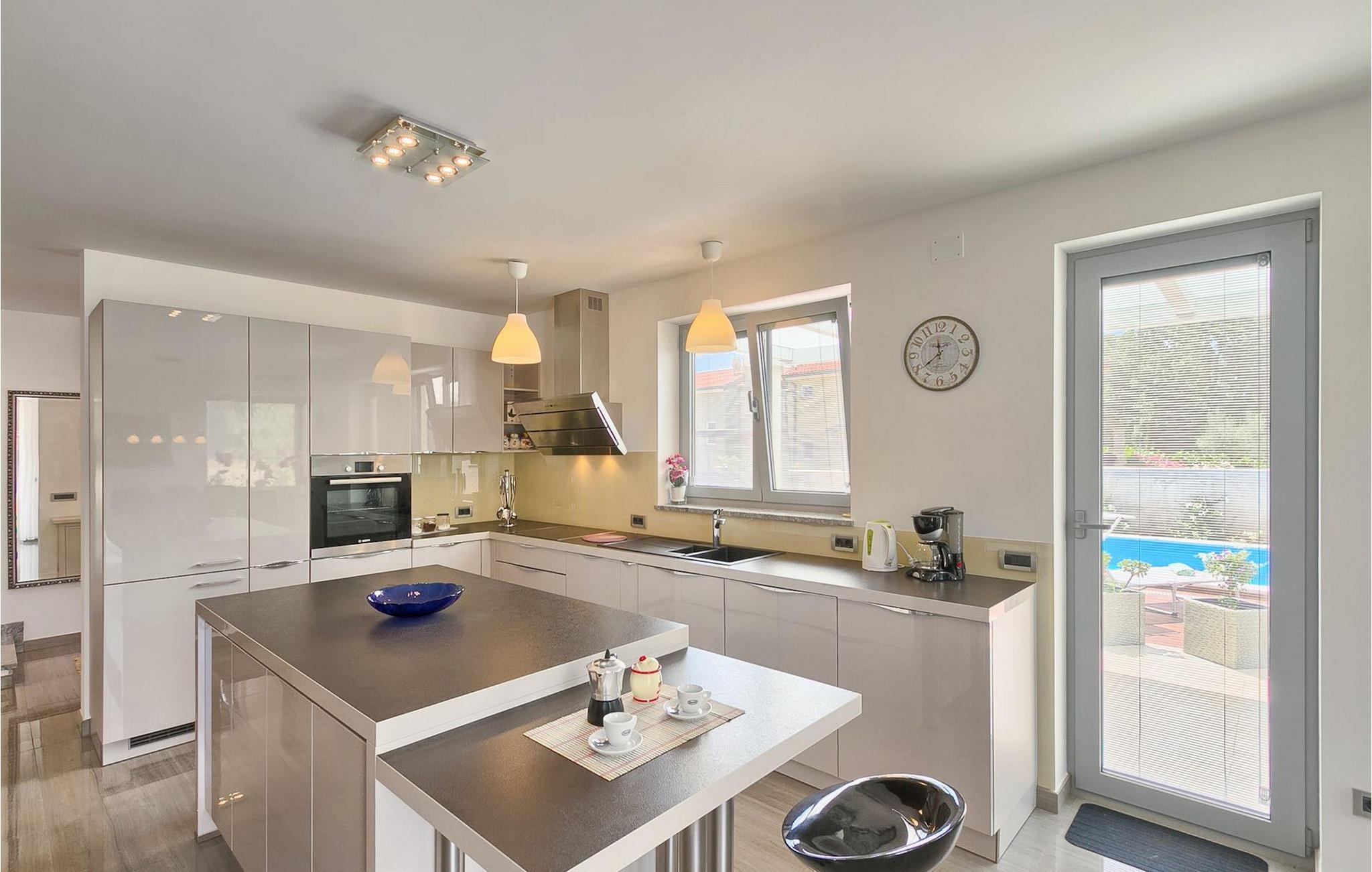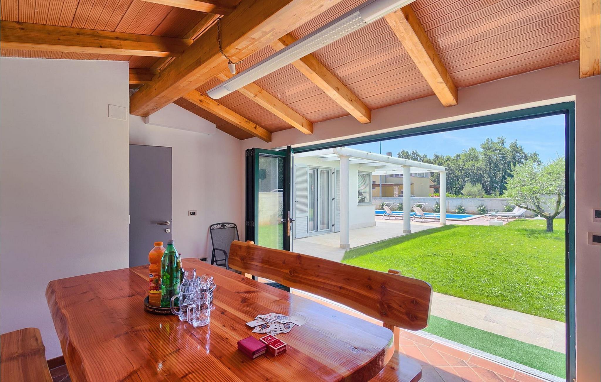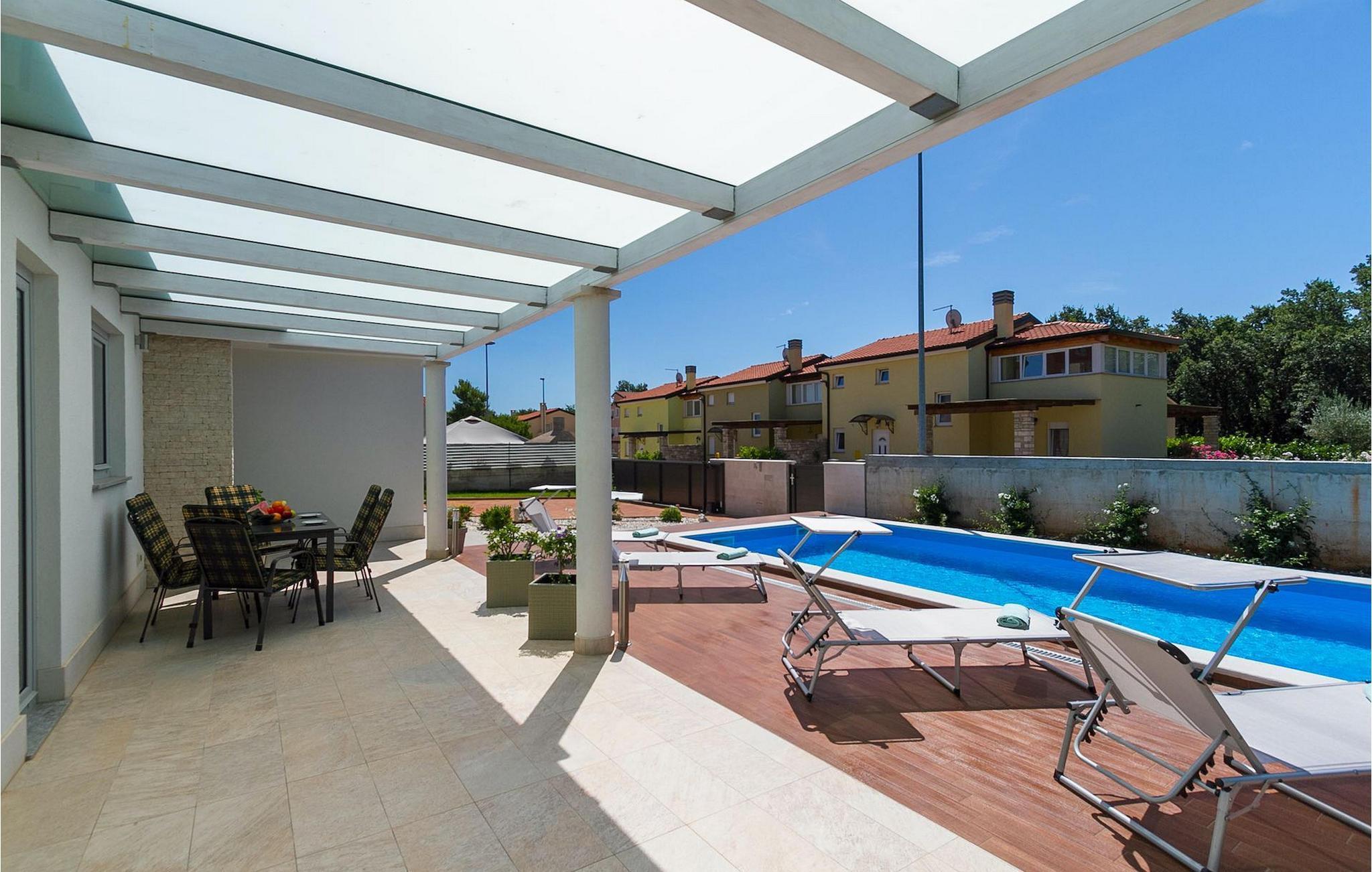 Die schöne Familienvilla Paris liegt in der Nähe des Meeres. Die Villa erstreckt sich über eine 176 m2 große Fläche, in der Sie sich wie zu Hause fühlen werden. Das offen gestaltetes Erdgeschoss der Villa verfügt über eine moderne und voll ausgestattete Küche, ein Esszimmer und ein komfortables Wohnzimmer. Im Erdgeschoss befindet sich ein Schlafzimmer mit einem Doppelbett und einem eigenen Bad. Alle Zimmer im Erdgeschoss haben Zugang zum wunderschön gestalteten Außenbereich der Villa. Im ersten Stock befinden sich zwei weitere Schlafzimmer, mit derweils einem Doppelbett und eigenem Bad. Der Garten ist ein idealer Ort, um sich zu entspannen und einen Sommertag zu genießen. Diese Villa verfügt über eine voll ausgestattete Sommerküche, in der Sie mit Ihrer Familie und Freunden Mahlzeiten zubereiten und grillen können. Erfrischen Sie sich an heißen Sommertagen am 28 m2 großen Pool. Diese schöne Villa ist eine ideale Wahl für Sie und Ihre Familie. Buchen Sie diese herrliche Villa und genießen Sie ihren nächsten Urlaub in Istrien.Die Villa Paris befindet sich in der populären Küstenstadt Umag. Umag bietet eine große Auswahl an Freizeitaktivitäten und touristischen Annehmlichkeiten, sowie einen kleinen Hafen. Hervorragende Restaurants, Bars und Cafés sind in seinen hübschen Pflastertraßen zu finden. Jeden Juli findet hier der ATP Croatia Open statt, mit vielen der größten Namen aus dem Herren-Tenniswelt. In unmittelbarer Nähe liegt auch das preisgekrönte Erlebnisbad Istralandia, idealer Ort für einen vergnüglichen Tag in der Sonne mit der ganzen Familie. Die magische Landschaft Zentralistriens berühmt für ihre zauberhaften mittelalterlichen Hügelstädte, sowie gastronomische Genüsse ist entlang sehr guten Straßen leicht erreichbar.