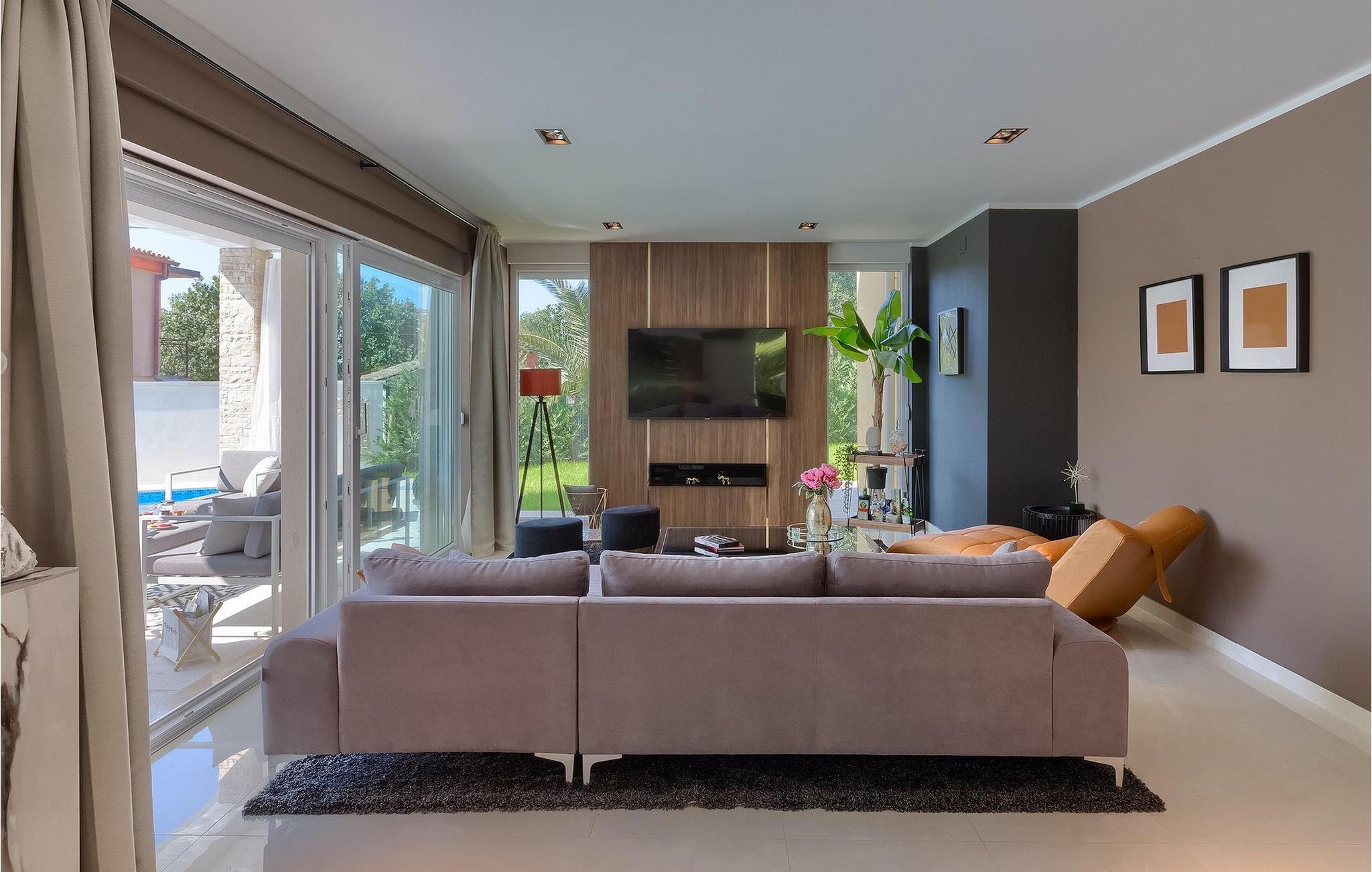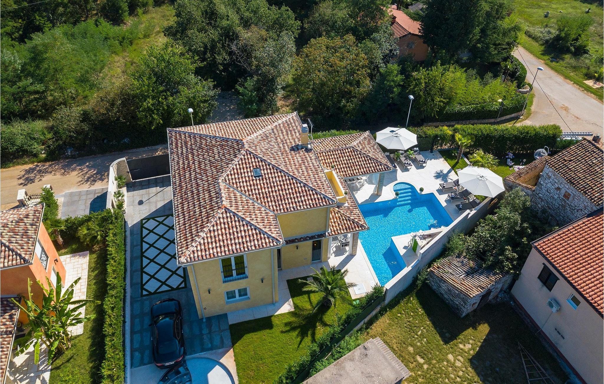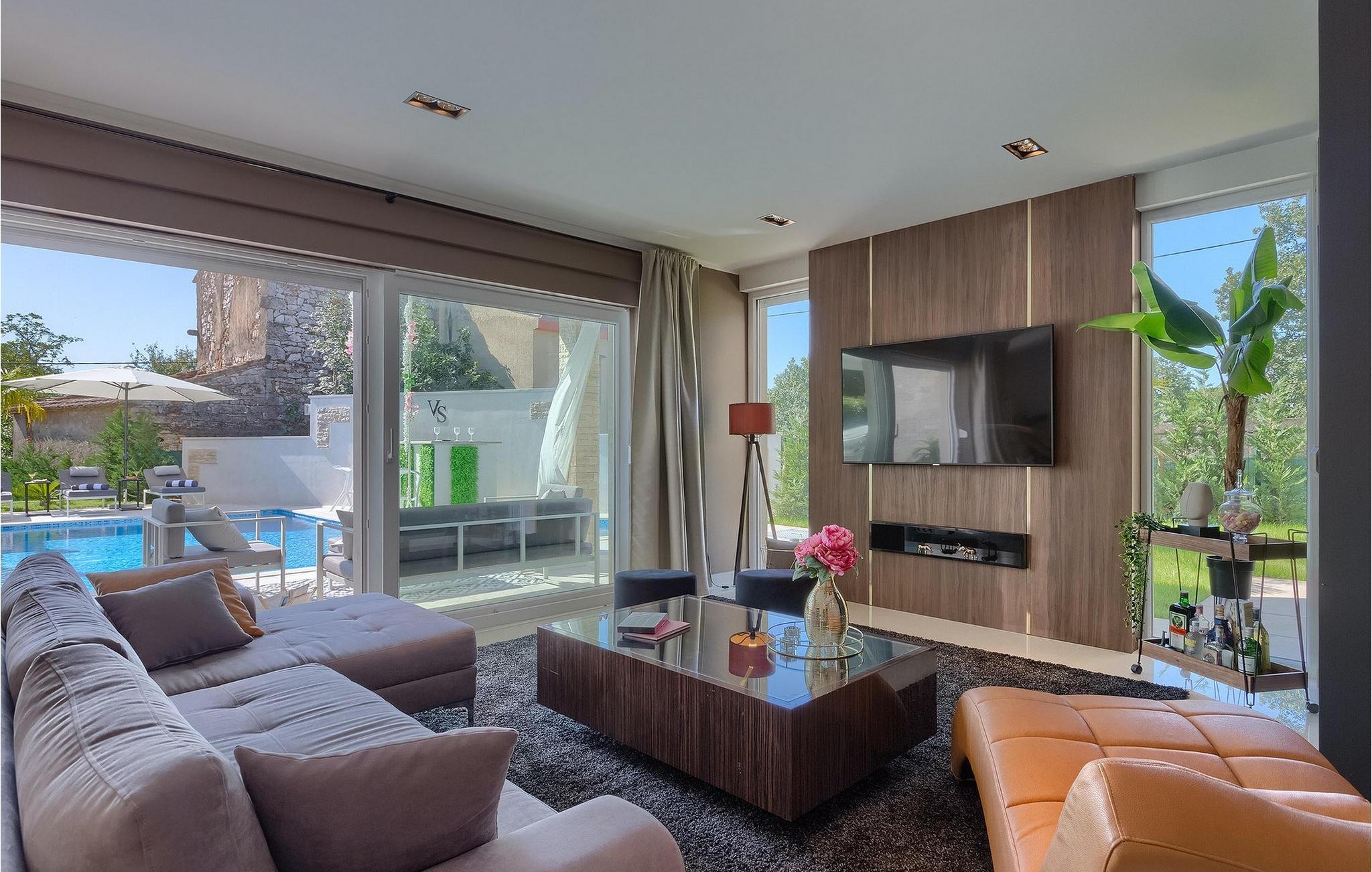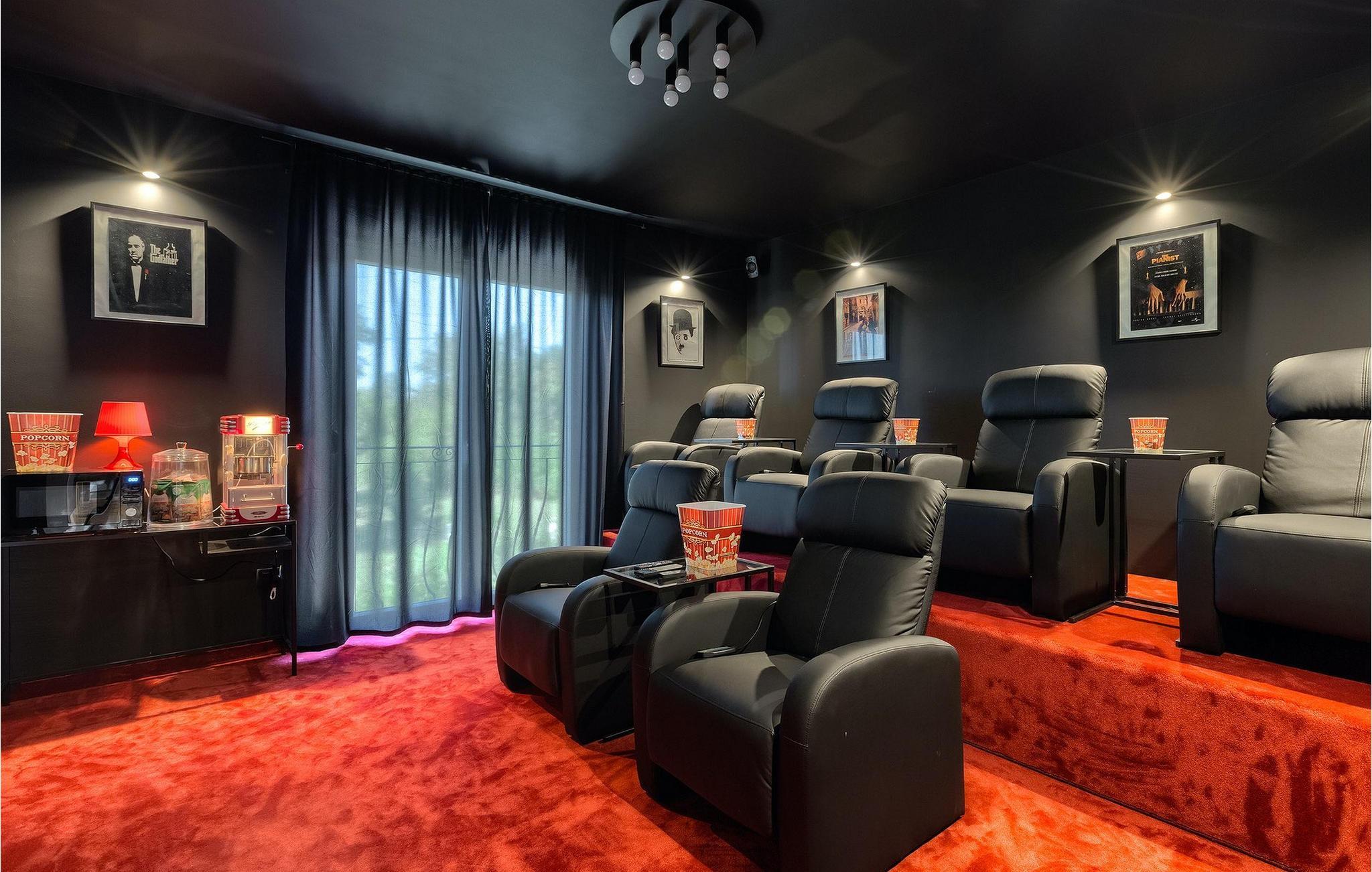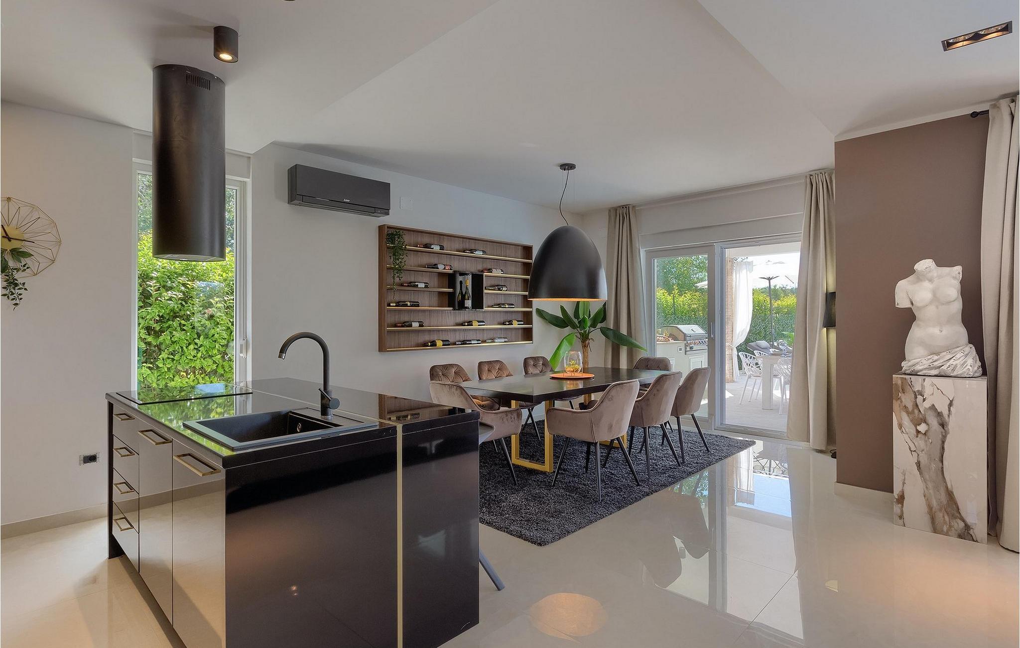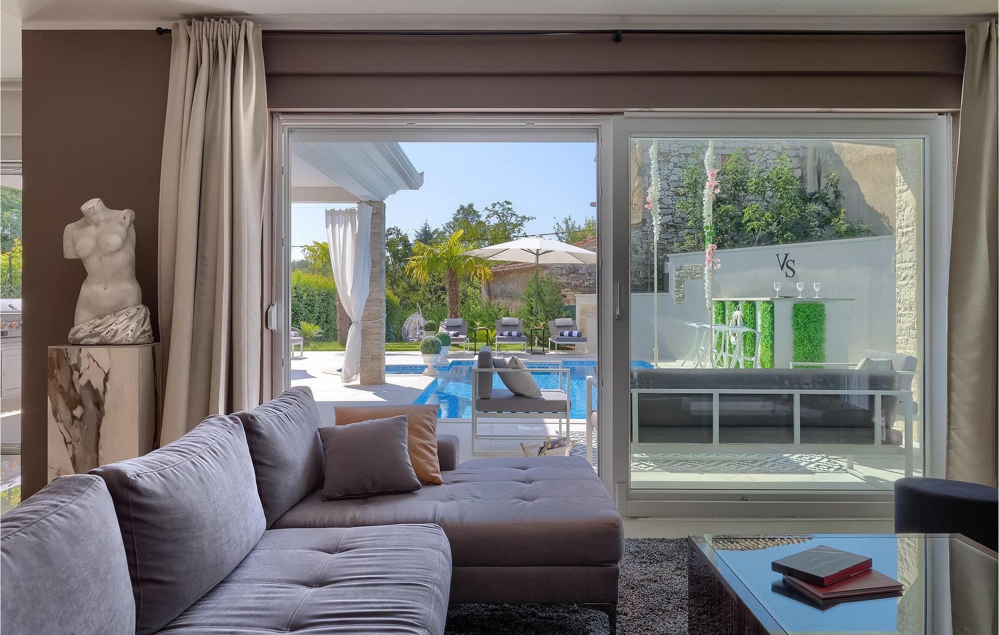 Betreten Sie die prächtige Villa Santo, die ideale Kombination aus traditionellem istrischen Stil und modernen Möbeln. Elegante und moderne Details sind das Hauptmerkmal dieser Villa in Kombination mit der Steinfassade. Das Besondere an der Villa Santo ist das private Kino im ersten Stock, in dem 6 Massagestühle, ein 75-Zoll-Fernseher und eine Popcornmaschine für echtes Filmvergnügen mit Familie und Freunden sind. Wir sind sicher, dass Sie viele unvergessliche Momente und Filmabende in diesem charmanten kleinen Kino verbringen werden. Das Innere der Villa Santo ist hinreißend und bietet Platz für insgesamt 8 Personen in einer wunderschönen Umgebung. Die Villa ist in zwei Etagen unterteilt, in denen moderne Details herrschen. Im Erdgeschoss der Villa befindet sich ein offener Raum, in dem sich ein Wohnzimmer, eine Küche mit Essbereich, ein Schlafzimmer und ein Badezimmer befinden. Im ersten Stock befinden sich 3 komfortable Schlafzimmer, 2 Badezimmer und das Kino. Atemberaubende Schlafzimmer bieten Ihnen Ruhe und Komfort unter schönen Baldahinen. Vom Wohnzimmer aus haben Sie einen Zugang zur Außenterrasse mit privatem Pool und Liegestühlen sowie einen Essbereich im Freien, in dem Sie in der Außenküche neben dem Pool grillen können. Erfrischen Sie sich an heißen Sommertagen im großen Pool und genießen Sie den Sommer in diesem magischen Klima. Wir sind sicher, dass die Villa Santo Ihnen in dieser göttlichen Residenz den Urlaub ermöglichen wird, den Sie verdienen. Ganz am Ende der Westkäste der istrischen Halbinsel liegt die prächtige Stadt Umag. Reiche Geschichte, kristallklares Meer und magische Strände schmücken diese Landschaft. Die Stadtmauer sowie die berühmte Brücke wurden im 10. Jahrhundert gebaut. Einer der ebenfalls berühmten Sehenswürdigkeiten ist die Kirche St. Rocha, die im Jahr 1507 nach der Pestepidemie gebaut wurde. Die Villa Santo liegt nur 9 Autominuten von der Stadt Umag entfernt. Sie können viele berühmten Sehenswürdigkeiten wie den berühmten Savudrija Leuchtturm besuchen der 20 Autominuten von der Villa entfernt ist. Fels- und Kiesstrände im Camp Finida liegen nur 1,2 km entfernt. Gastronomie Liebhaber werden vom Restaurants und Weinkellereien Angebot in der Umgebung begeistert sein. Wenn Sie Abendessen für Ihre Lieben vorbereiten möchten, finden Sie alle notwendigen Lebensmittel in Supermarketen und kleinen Geschäften im Umkreisvon von 2 km von der Villa.