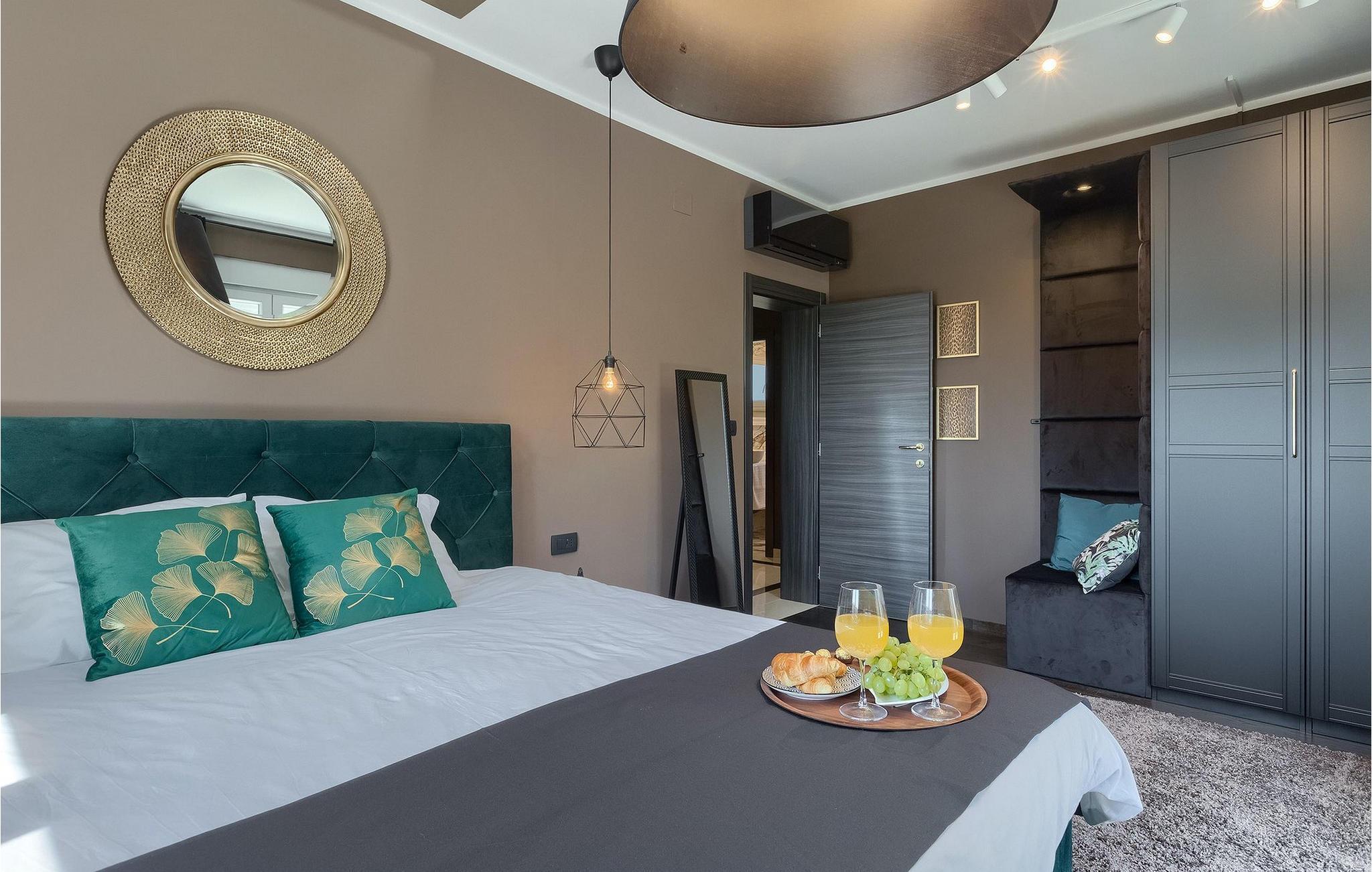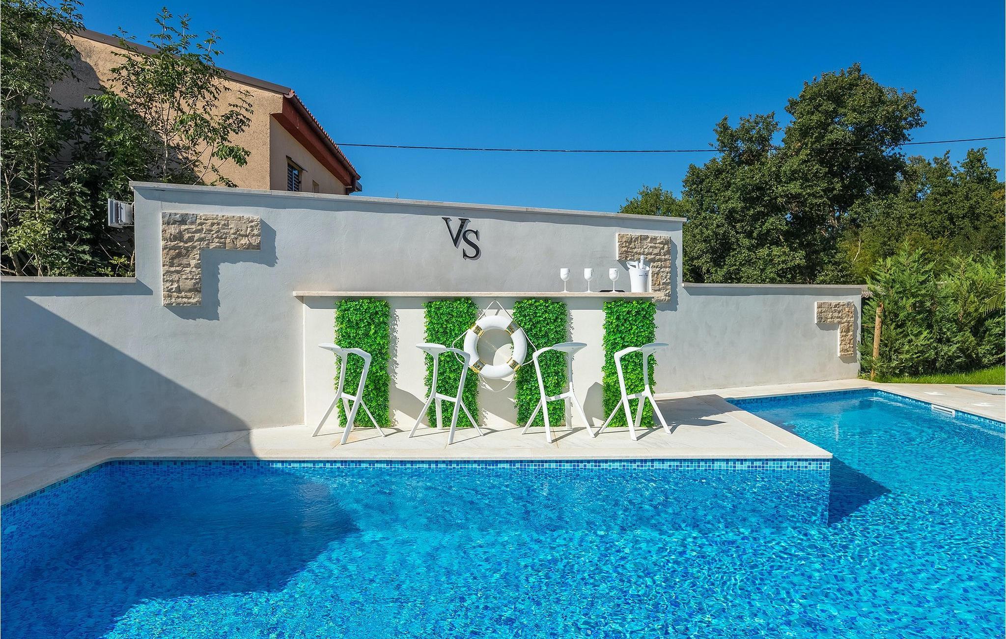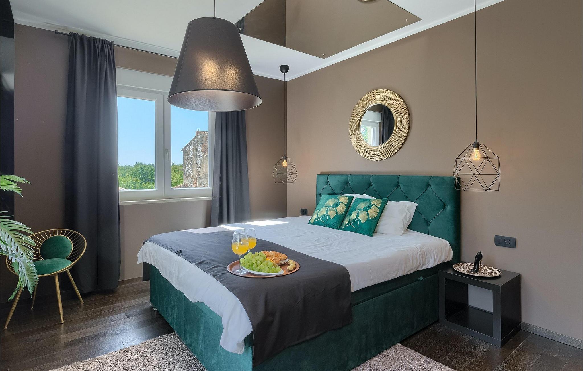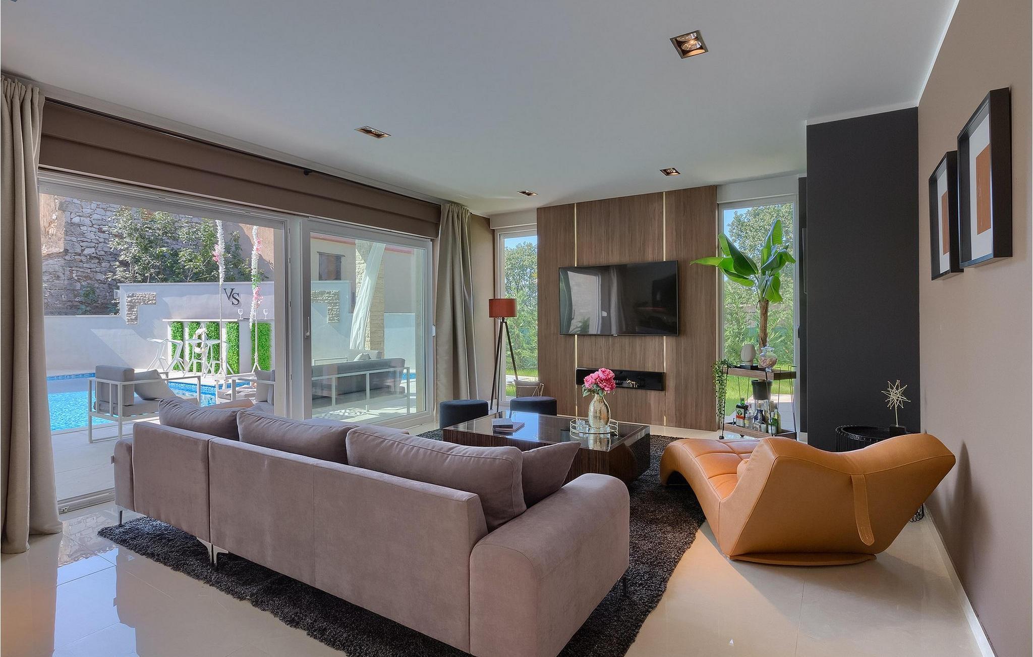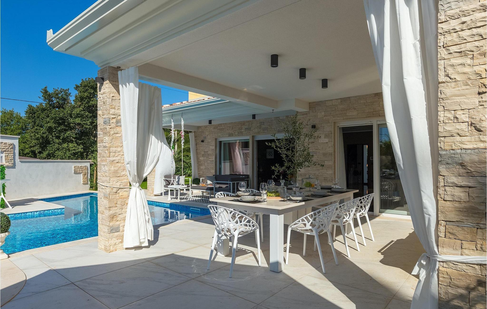 Betreten Sie die prächtige Villa Santo, die ideale Kombination aus traditionellem istrischen Stil und modernen Möbeln. Elegante und moderne Details sind das Hauptmerkmal dieser Villa in Kombination mit der Steinfassade. Das Besondere an der Villa Santo ist das private Kino im ersten Stock, in dem 6 Massagestühle, ein 75-Zoll-Fernseher und eine Popcornmaschine für echtes Filmvergnügen mit Familie und Freunden sind. Wir sind sicher, dass Sie viele unvergessliche Momente und Filmabende in diesem charmanten kleinen Kino verbringen werden. Das Innere der Villa Santo ist hinreißend und bietet Platz für insgesamt 8 Personen in einer wunderschönen Umgebung. Die Villa ist in zwei Etagen unterteilt, in denen moderne Details herrschen. Im Erdgeschoss der Villa befindet sich ein offener Raum, in dem sich ein Wohnzimmer, eine Küche mit Essbereich, ein Schlafzimmer und ein Badezimmer befinden. Im ersten Stock befinden sich 3 komfortable Schlafzimmer, 2 Badezimmer und das Kino. Atemberaubende Schlafzimmer bieten Ihnen Ruhe und Komfort unter schönen Baldahinen. Vom Wohnzimmer aus haben Sie einen Zugang zur Außenterrasse mit privatem Pool und Liegestühlen sowie einen Essbereich im Freien, in dem Sie in der Außenküche neben dem Pool grillen können. Erfrischen Sie sich an heißen Sommertagen im großen Pool und genießen Sie den Sommer in diesem magischen Klima. Wir sind sicher, dass die Villa Santo Ihnen in dieser göttlichen Residenz den Urlaub ermöglichen wird, den Sie verdienen. Ganz am Ende der Westkäste der istrischen Halbinsel liegt die prächtige Stadt Umag. Reiche Geschichte, kristallklares Meer und magische Strände schmücken diese Landschaft. Die Stadtmauer sowie die berühmte Brücke wurden im 10. Jahrhundert gebaut. Einer der ebenfalls berühmten Sehenswürdigkeiten ist die Kirche St. Rocha, die im Jahr 1507 nach der Pestepidemie gebaut wurde. Die Villa Santo liegt nur 9 Autominuten von der Stadt Umag entfernt. Sie können viele berühmten Sehenswürdigkeiten wie den berühmten Savudrija Leuchtturm besuchen der 20 Autominuten von der Villa entfernt ist. Fels- und Kiesstrände im Camp Finida liegen nur 1,2 km entfernt. Gastronomie Liebhaber werden vom Restaurants und Weinkellereien Angebot in der Umgebung begeistert sein. Wenn Sie Abendessen für Ihre Lieben vorbereiten möchten, finden Sie alle notwendigen Lebensmittel in Supermarketen und kleinen Geschäften im Umkreisvon von 2 km von der Villa.