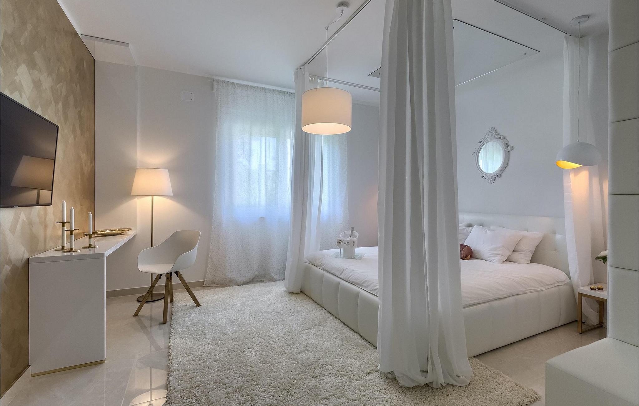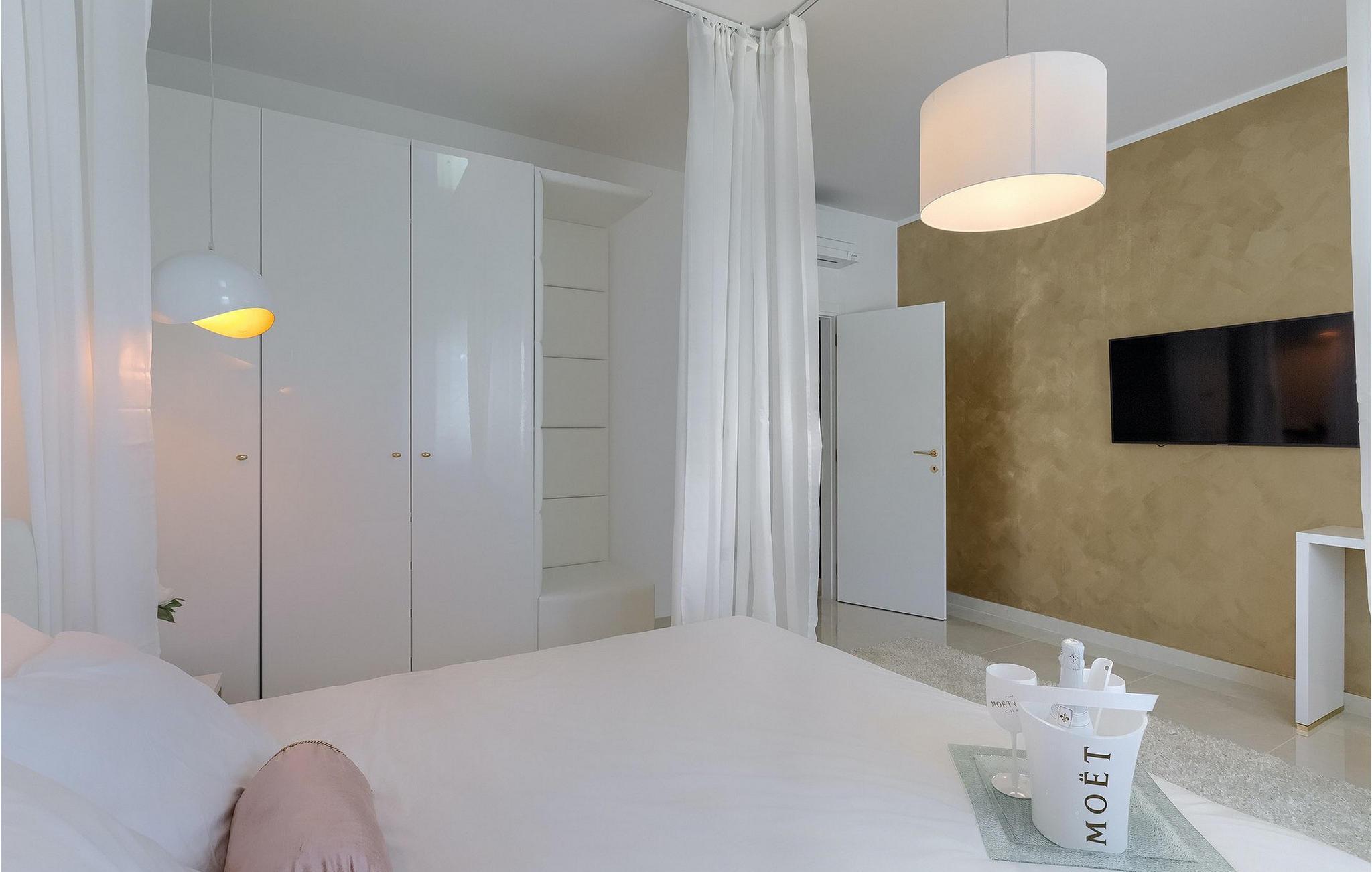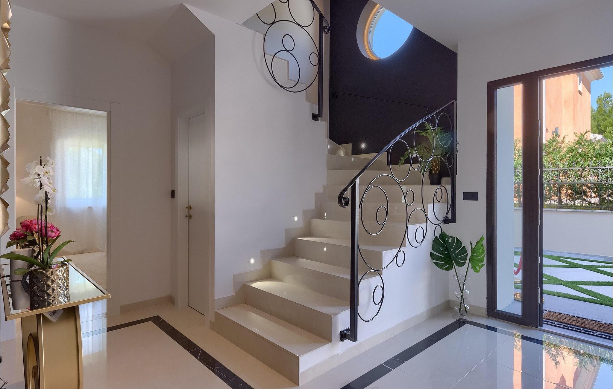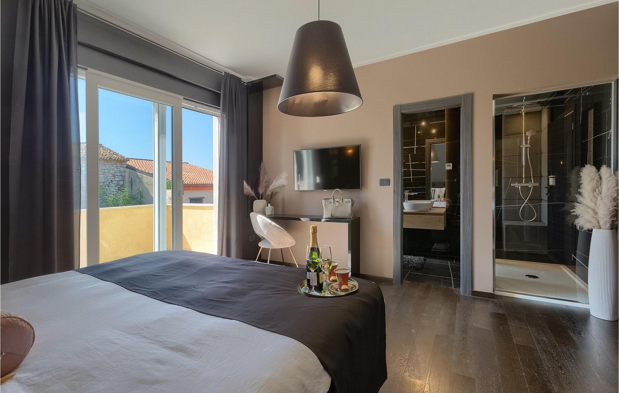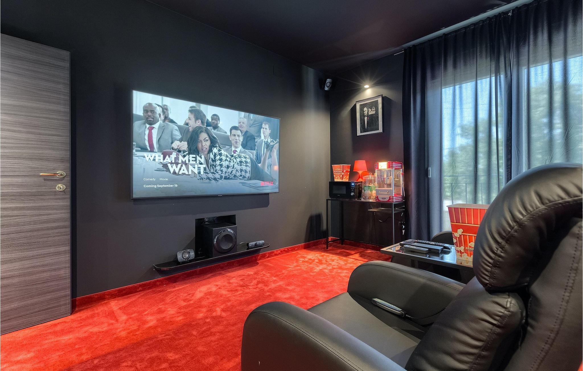 Betreten Sie die prächtige Villa Santo, die ideale Kombination aus traditionellem istrischen Stil und modernen Möbeln. Elegante und moderne Details sind das Hauptmerkmal dieser Villa in Kombination mit der Steinfassade. Das Besondere an der Villa Santo ist das private Kino im ersten Stock, in dem 6 Massagestühle, ein 75-Zoll-Fernseher und eine Popcornmaschine für echtes Filmvergnügen mit Familie und Freunden sind. Wir sind sicher, dass Sie viele unvergessliche Momente und Filmabende in diesem charmanten kleinen Kino verbringen werden. Das Innere der Villa Santo ist hinreißend und bietet Platz für insgesamt 8 Personen in einer wunderschönen Umgebung. Die Villa ist in zwei Etagen unterteilt, in denen moderne Details herrschen. Im Erdgeschoss der Villa befindet sich ein offener Raum, in dem sich ein Wohnzimmer, eine Küche mit Essbereich, ein Schlafzimmer und ein Badezimmer befinden. Im ersten Stock befinden sich 3 komfortable Schlafzimmer, 2 Badezimmer und das Kino. Atemberaubende Schlafzimmer bieten Ihnen Ruhe und Komfort unter schönen Baldahinen. Vom Wohnzimmer aus haben Sie einen Zugang zur Außenterrasse mit privatem Pool und Liegestühlen sowie einen Essbereich im Freien, in dem Sie in der Außenküche neben dem Pool grillen können. Erfrischen Sie sich an heißen Sommertagen im großen Pool und genießen Sie den Sommer in diesem magischen Klima. Wir sind sicher, dass die Villa Santo Ihnen in dieser göttlichen Residenz den Urlaub ermöglichen wird, den Sie verdienen. Ganz am Ende der Westkäste der istrischen Halbinsel liegt die prächtige Stadt Umag. Reiche Geschichte, kristallklares Meer und magische Strände schmücken diese Landschaft. Die Stadtmauer sowie die berühmte Brücke wurden im 10. Jahrhundert gebaut. Einer der ebenfalls berühmten Sehenswürdigkeiten ist die Kirche St. Rocha, die im Jahr 1507 nach der Pestepidemie gebaut wurde. Die Villa Santo liegt nur 9 Autominuten von der Stadt Umag entfernt. Sie können viele berühmten Sehenswürdigkeiten wie den berühmten Savudrija Leuchtturm besuchen der 20 Autominuten von der Villa entfernt ist. Fels- und Kiesstrände im Camp Finida liegen nur 1,2 km entfernt. Gastronomie Liebhaber werden vom Restaurants und Weinkellereien Angebot in der Umgebung begeistert sein. Wenn Sie Abendessen für Ihre Lieben vorbereiten möchten, finden Sie alle notwendigen Lebensmittel in Supermarketen und kleinen Geschäften im Umkreisvon von 2 km von der Villa.