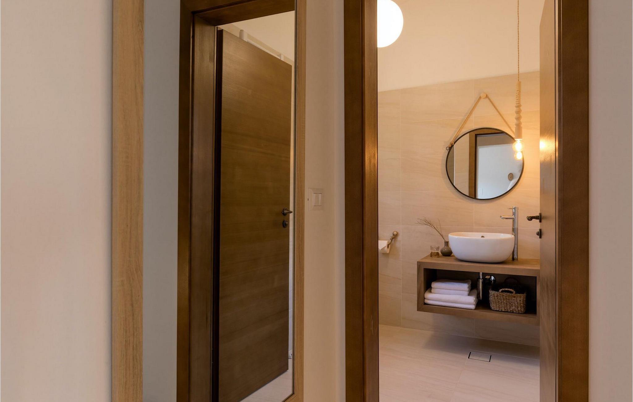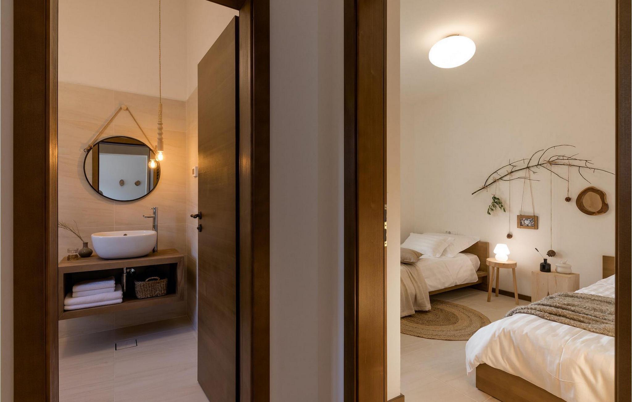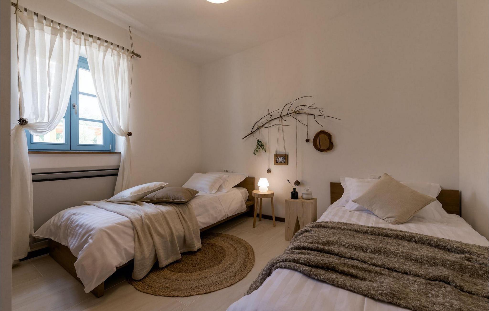 Die schöne Villa Toscana hat 2 Schlafzimmer und kann insgesamt 4+2 Gäste beherbergen. Ihr modernes minimalistisches Interieur erzeugt eine gemütliche, entspannende Atmosphäre. Große Glasflächen sorgen für natürliches Licht in allen Räumen der Villa und gehen Hand in Hand mit den dominanten Pastellfarben und charmanten Holzdetails. Im Erdgeschoss finden Sie ein geschmackvoll eingerichtetes und geräumiges Wohnzimmer, das mit einem komplett ausgestatteten Koch- und Essbereich verbunden ist. Hier befindet sich auch ein Schlafzimmer mit zwei Einzelbetten und ensuite Badezimmer. Ein Schlafzimmer mit Doppelbett, ensuite Bad und Balkon ist im Obergeschoss zu finden.