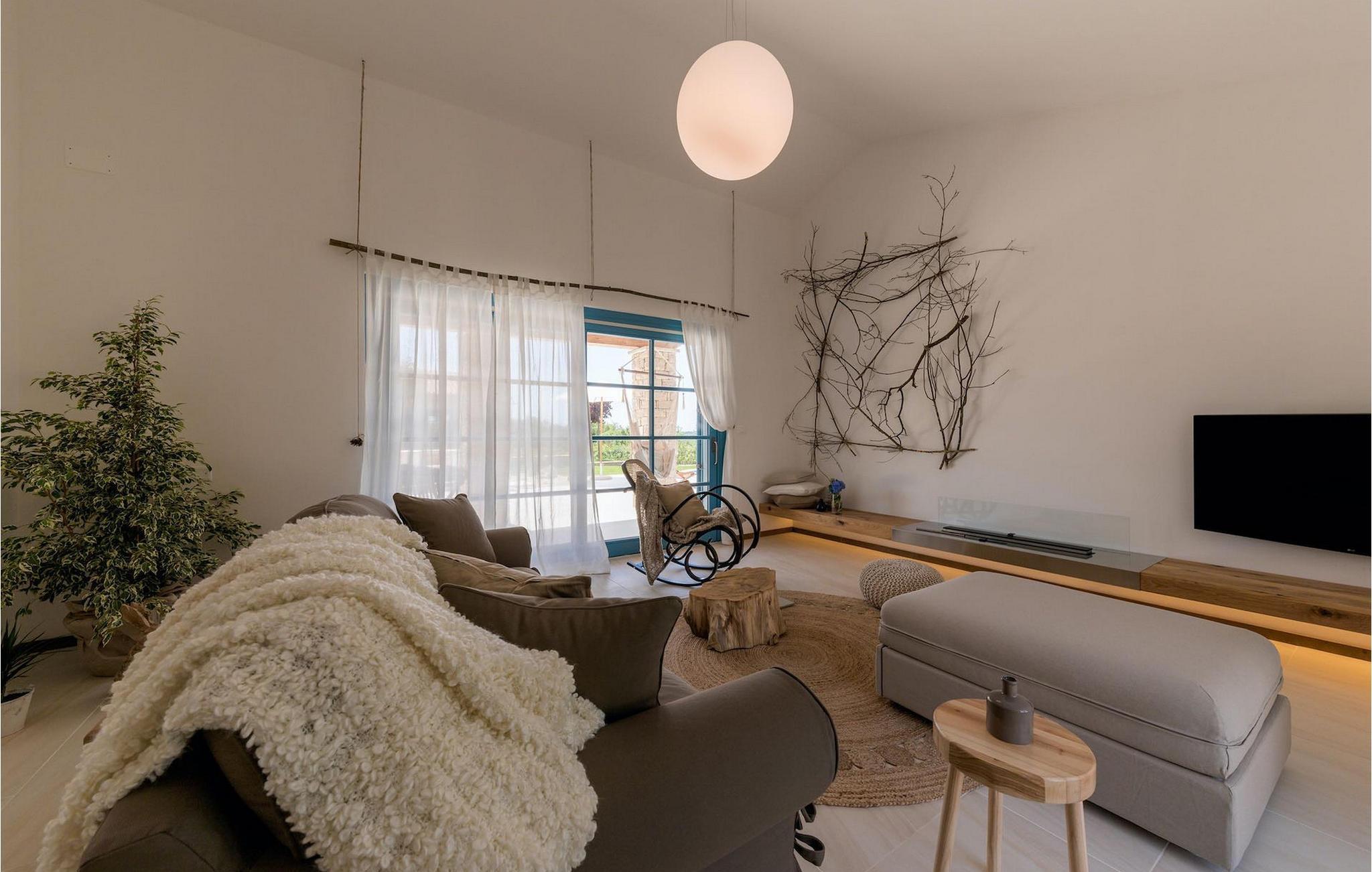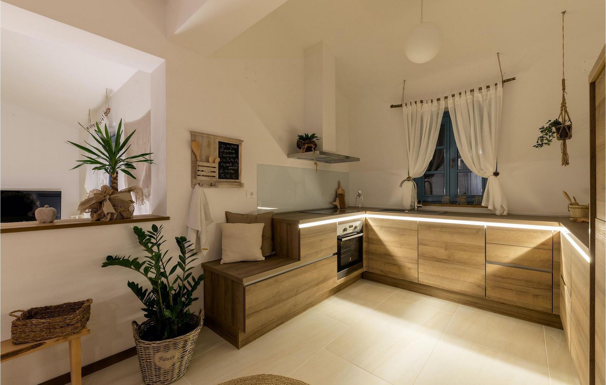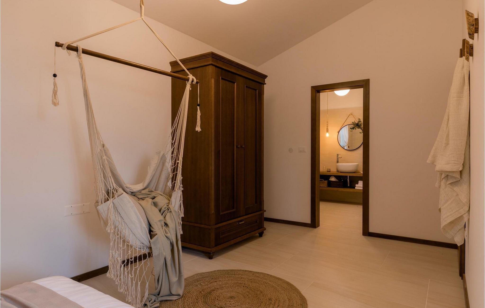 Die schöne Villa Toscana hat 2 Schlafzimmer und kann insgesamt 4+2 Gäste beherbergen. Ihr modernes minimalistisches Interieur erzeugt eine gemütliche, entspannende Atmosphäre. Große Glasflächen sorgen für natürliches Licht in allen Räumen der Villa und gehen Hand in Hand mit den dominanten Pastellfarben und charmanten Holzdetails. Im Erdgeschoss finden Sie ein geschmackvoll eingerichtetes und geräumiges Wohnzimmer, das mit einem komplett ausgestatteten Koch- und Essbereich verbunden ist. Hier befindet sich auch ein Schlafzimmer mit zwei Einzelbetten und ensuite Badezimmer. Ein Schlafzimmer mit Doppelbett, ensuite Bad und Balkon ist im Obergeschoss zu finden.