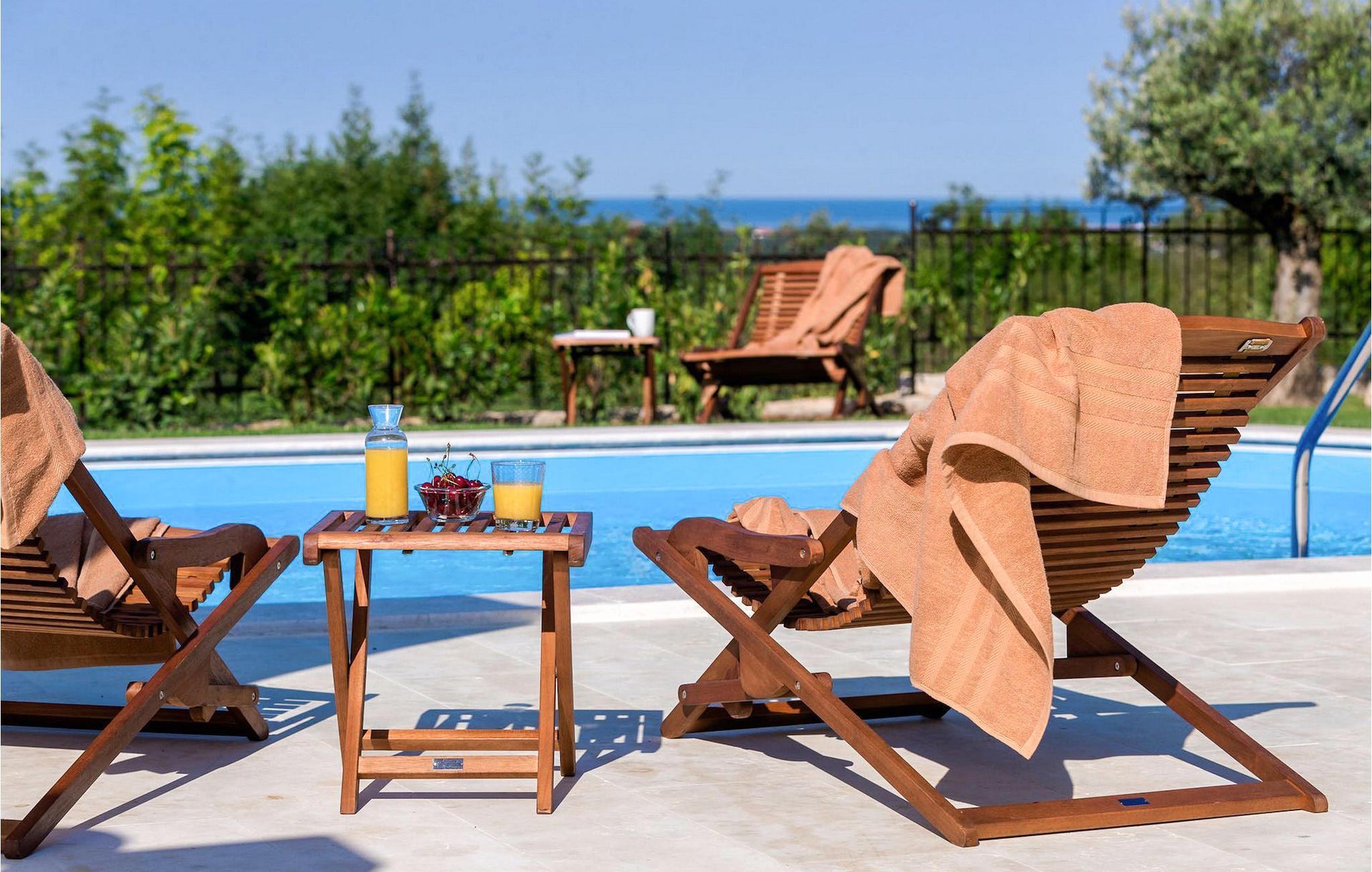 Das Erdgeschoss öffnet sich zum schönen Außenbereich der Villa. Das Highlight der Terrasse ist der attraktive Pool mit schönem Meerblick. Der gepflegte Garten ist nur ein weiterer Grund, um mehr Zeit auf der Terrasse von Villa Toscana zu verbringen. Genießen Sie die Sonnenstrahlen auf den gemütlichen Liegestühlen um den Pool herum oder entspannen Sie sich unter dem überdachten Terrassenbereich. Auf der Terrasse können Sie die am Grill vorbereiteten Gerichte unter dem romantischen Sommerhimmel genießen. Die Villa verfügt über Privatparkplatz für 2 Autos