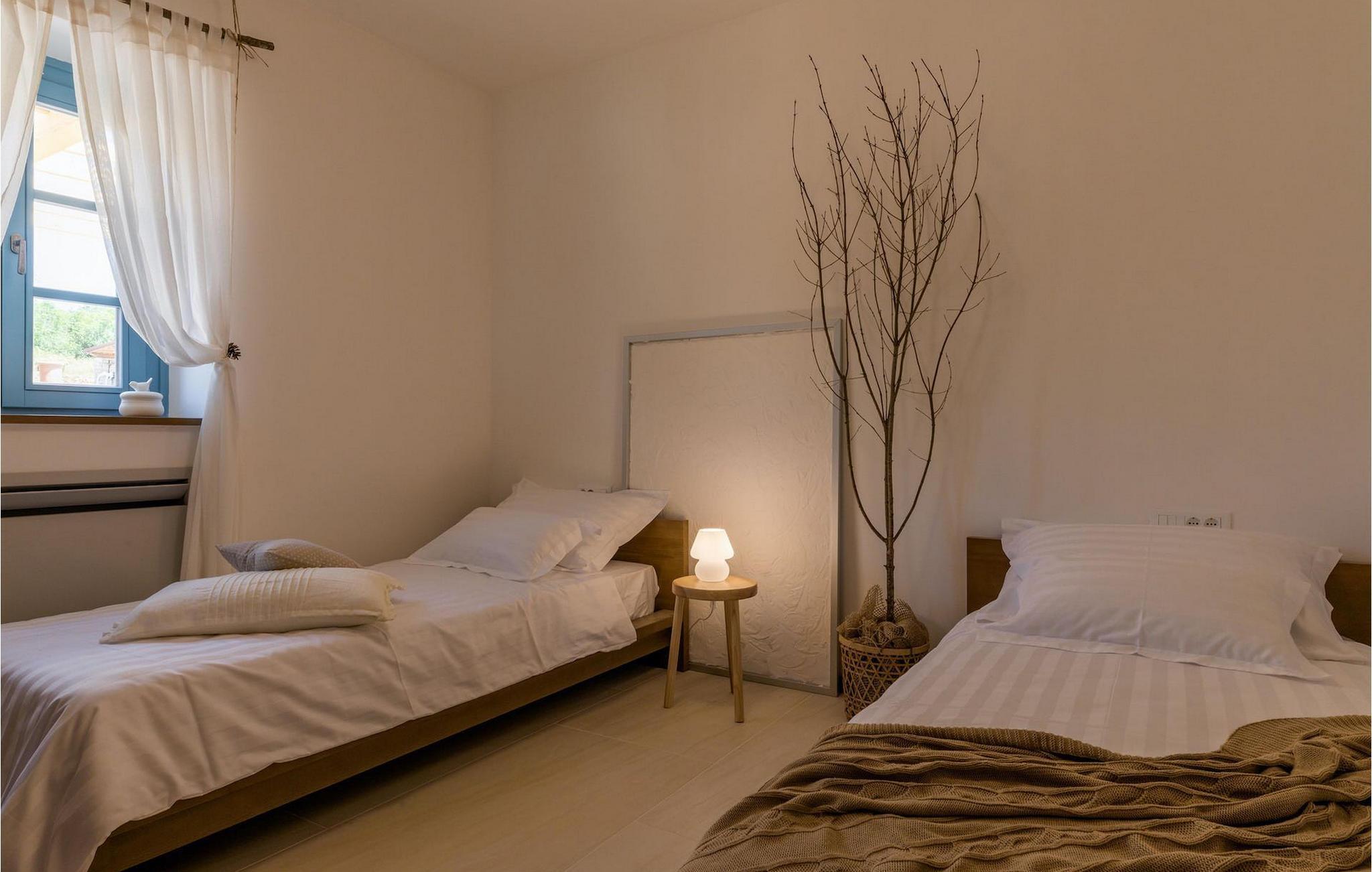 Das tolle Interieur dieser steinernen Villa ist von hochwertigen Holzmöbeln und sorgfältig ausgewählten Details geprägt. Das Erdgeschoss besteht aus einem hellen und luftigen Wohnraum, der mit einer komplett ausgestatteten Küche mit integriertem Essbereich verbunden ist. Wegen seiner charmanten Atmosphäre ist das Wohnzimmer der perfekte Platz, um sich mit einem guten Buch auf dem Sofa einzukuscheln oder die Gesellschaft der Liebsten zu genießen. Im Erdgeschoss befindet sich auch ein Schlafzimmer mit zwei Einzelbetten und ensuite Badezimmer. Im Obergeschoss finden Sie ein Schlafzimmer mit Doppelbett, ensuite Bad und eigenem Balkon.