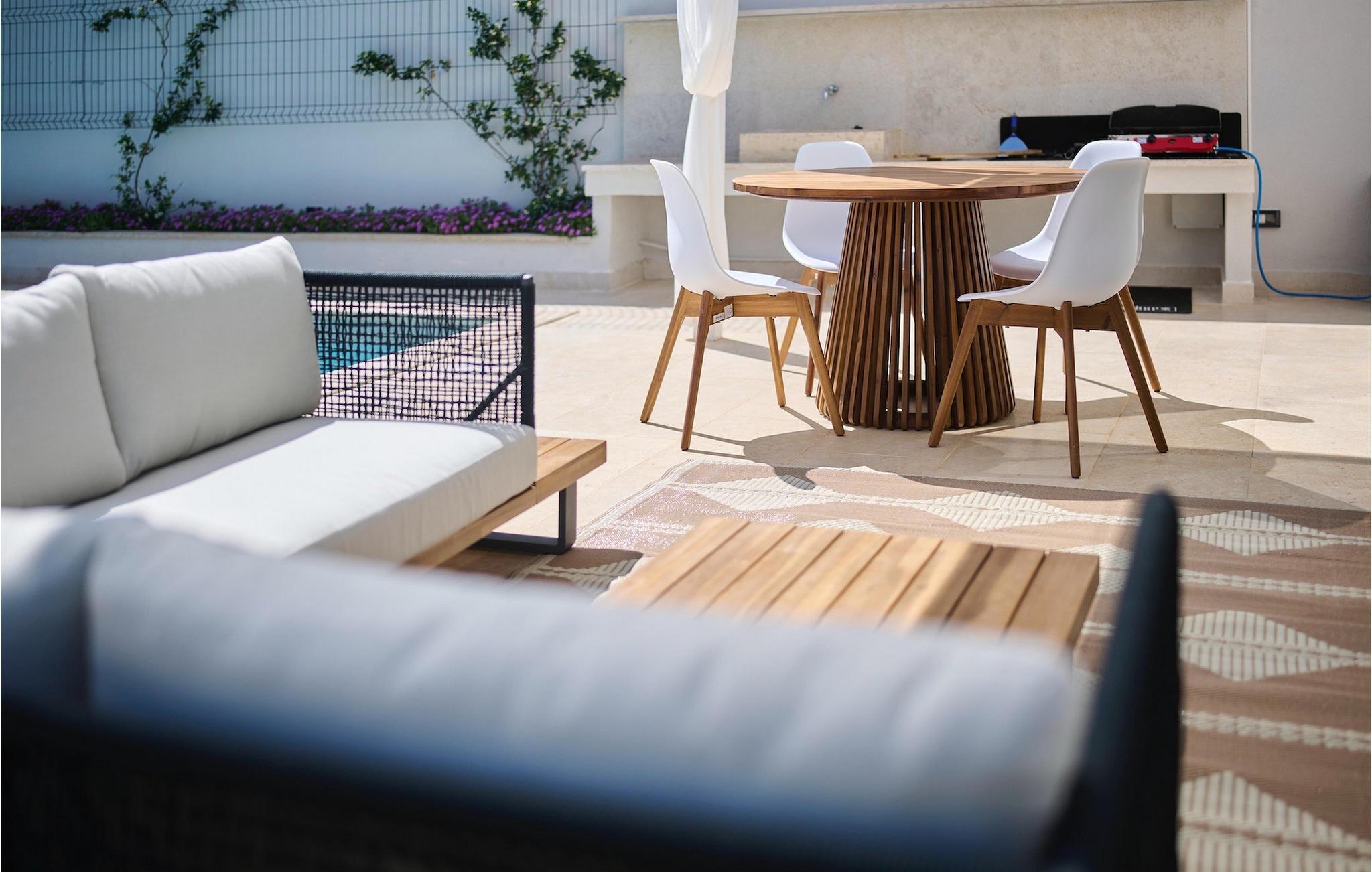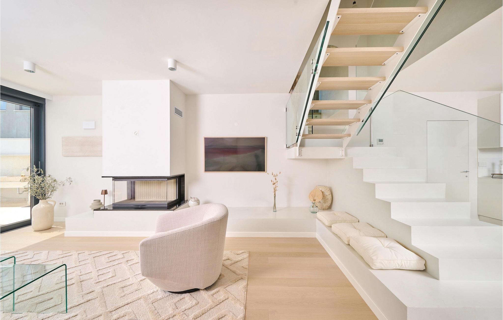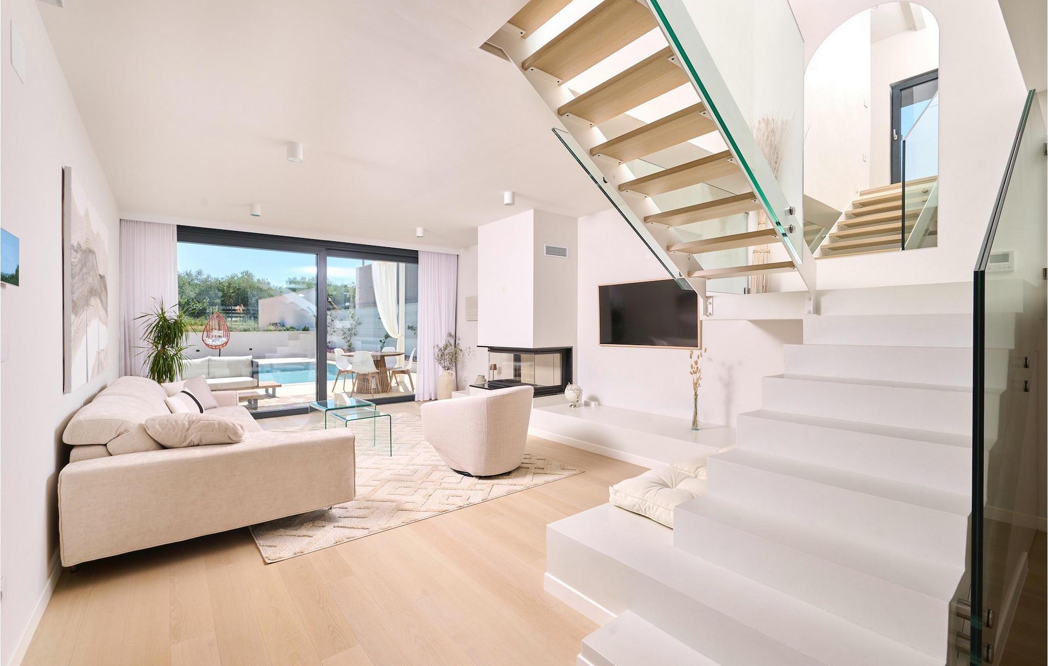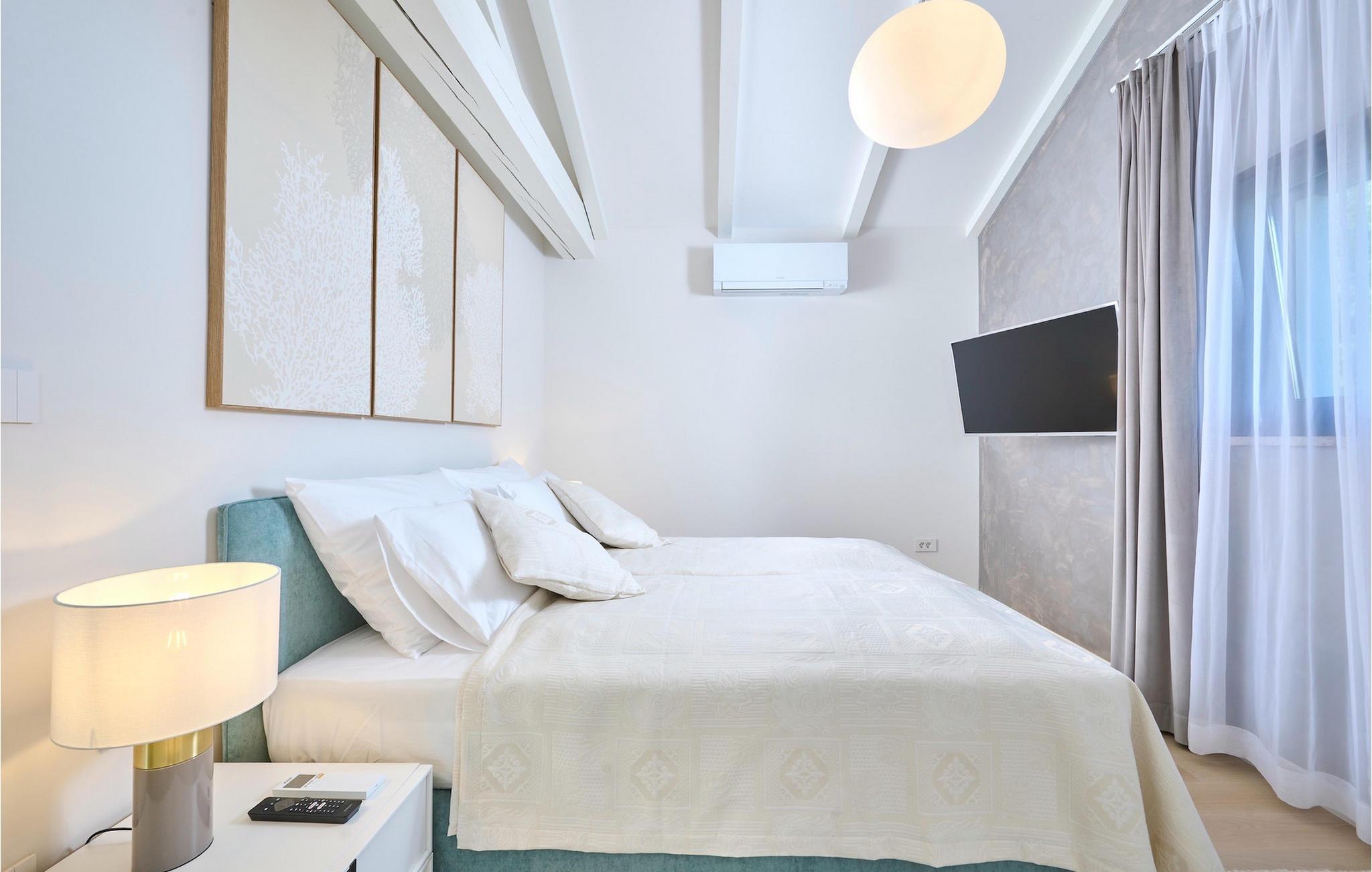 Beide Schlafzimmer befinden sich im ersten Stock. Die Schlafzimmer sind modern und komfortabel. Beide Zimmer verfügen über einen Fernseher und sind klimatisiert. Das Hauptschlafzimmer bietet ein Doppelbett, während das zweite Zimmer ein Doppelbett bietet, das in zwei Einzelbetten geteilt werden kann. Auf der gleichen Etage befindet sich auch ein Badezimmer. Im Erdgeschoss der Villa finden Sie ein helles, modern eingerichtetes Wohnzimmer mit Kamin und Fernseher sowie ein Essbereich und eine voll ausgestattete Küche, die in einem Open-Space-Konzept verbunden sind. Es gibt auch ein weiteres Badezimmer auf der Etage. Dieser Bereich ist klimatisiert und ideal für Ihren Urlaub. Der Garten der Villa bietet Ihnen verschiedene Orte zum Entspannen. An erster Stelle steht ein privater Pool mit Sonnenliegen. Für eine Pause vom Sonnenbaden und Schwimmen können Sie den schattigen Teil der Terrasse mit Relaxecke direkt neben dem Haus genießen. Im Garten finden Sie auch einen schattigen Essbereich mit Esstisch sowie einen Grill, wo Sie Ihre Kochkünste ausprobieren können.