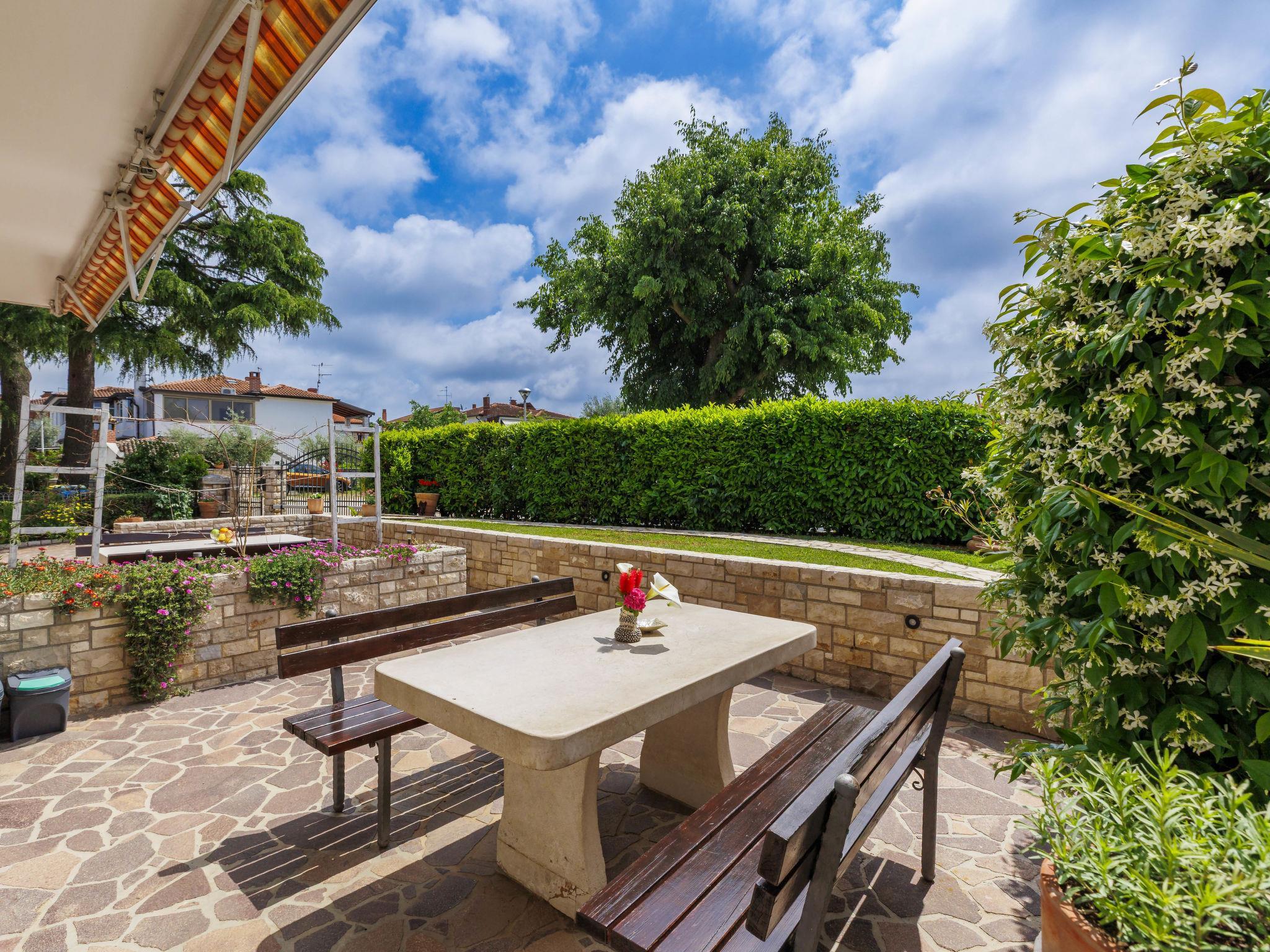 Apartment house "Nika". In the district of Punta 2 km from the centre of Umag, in a sunny position, 300 m from the sea, 300 m from the beach. For shared use: property 1'500 m2 (fenced), well-kept garden, swimming pool (8 x 4 m, depth 135 cm, seasonal availability: 25.Apr. - 19.Sep.). Outdoor shower, hot tub, barbecue. In the house: internet access, bicycles available (extra). Available: boat (extra). Parking. E-charging station. Shop, restaurant 500 m, bus stop 1.9 km, pebble beach 300 m. Tennis 200 m, children's playground 20 m. For shared use: hot tub available from 15.05. - 15.09. Video surveillance of the driveway and parking.