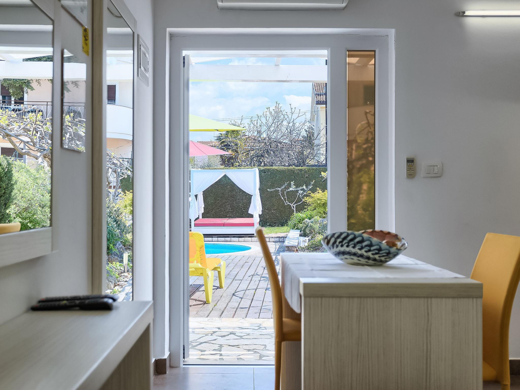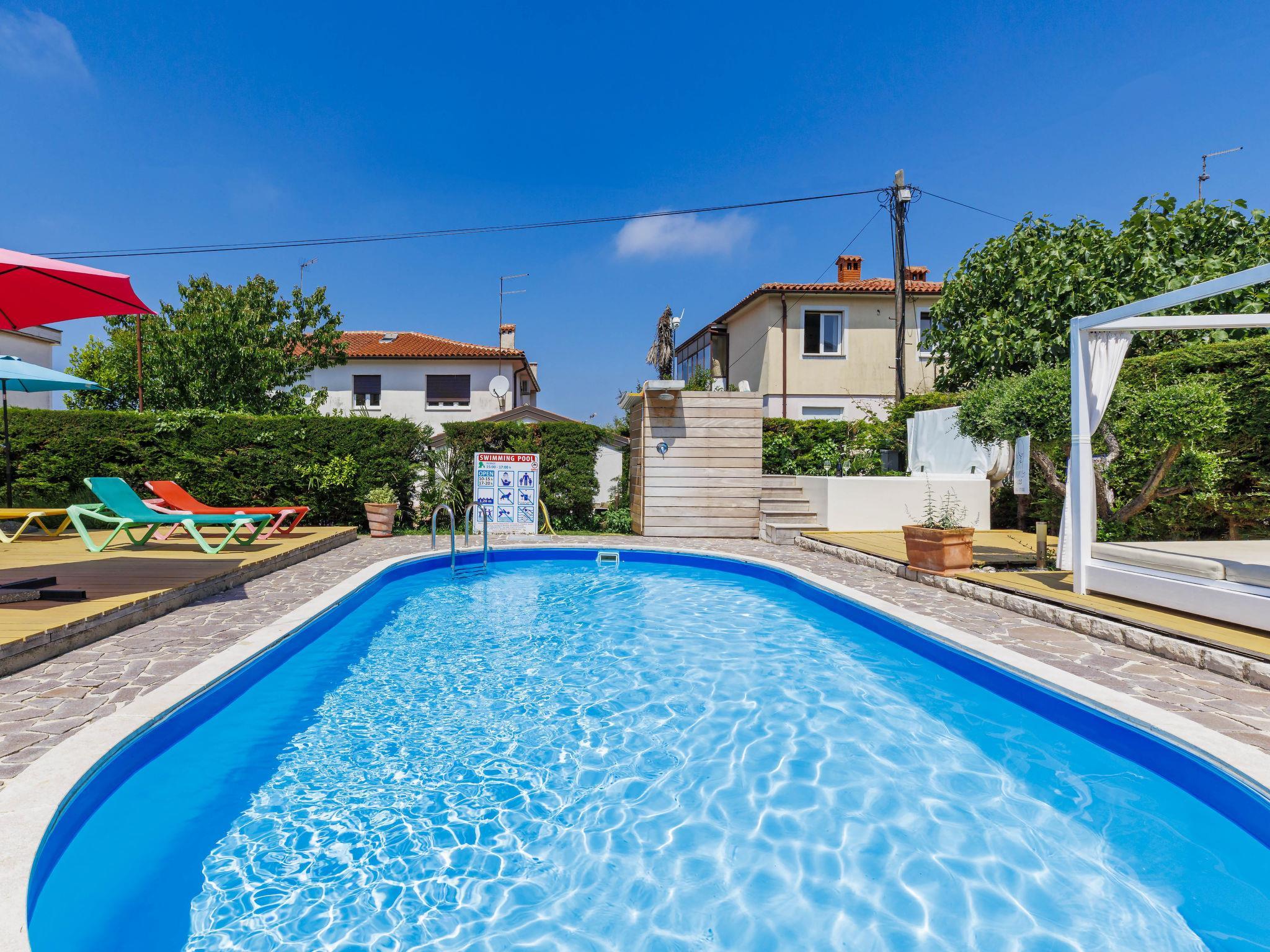 Apartment house "Nika". In the district of Punta 2 km from the centre of Umag, in a sunny position, 300 m from the sea, 300 m from the beach. For shared use: property 1'500 m2 (fenced), well-kept garden, swimming pool (8 x 4 m, depth 135 cm, seasonal availability: 25.Apr. - 19.Sep.). Outdoor shower, hot tub, barbecue. In the house: internet access, bicycles available (extra). Available: boat (extra). Parking. E-charging station. Shop, restaurant 500 m, bus stop 1.9 km, pebble beach 300 m. Tennis 200 m, children's playground 20 m. For shared use: hot tub available from 15.05. - 15.09. Video surveillance of the driveway and parking.