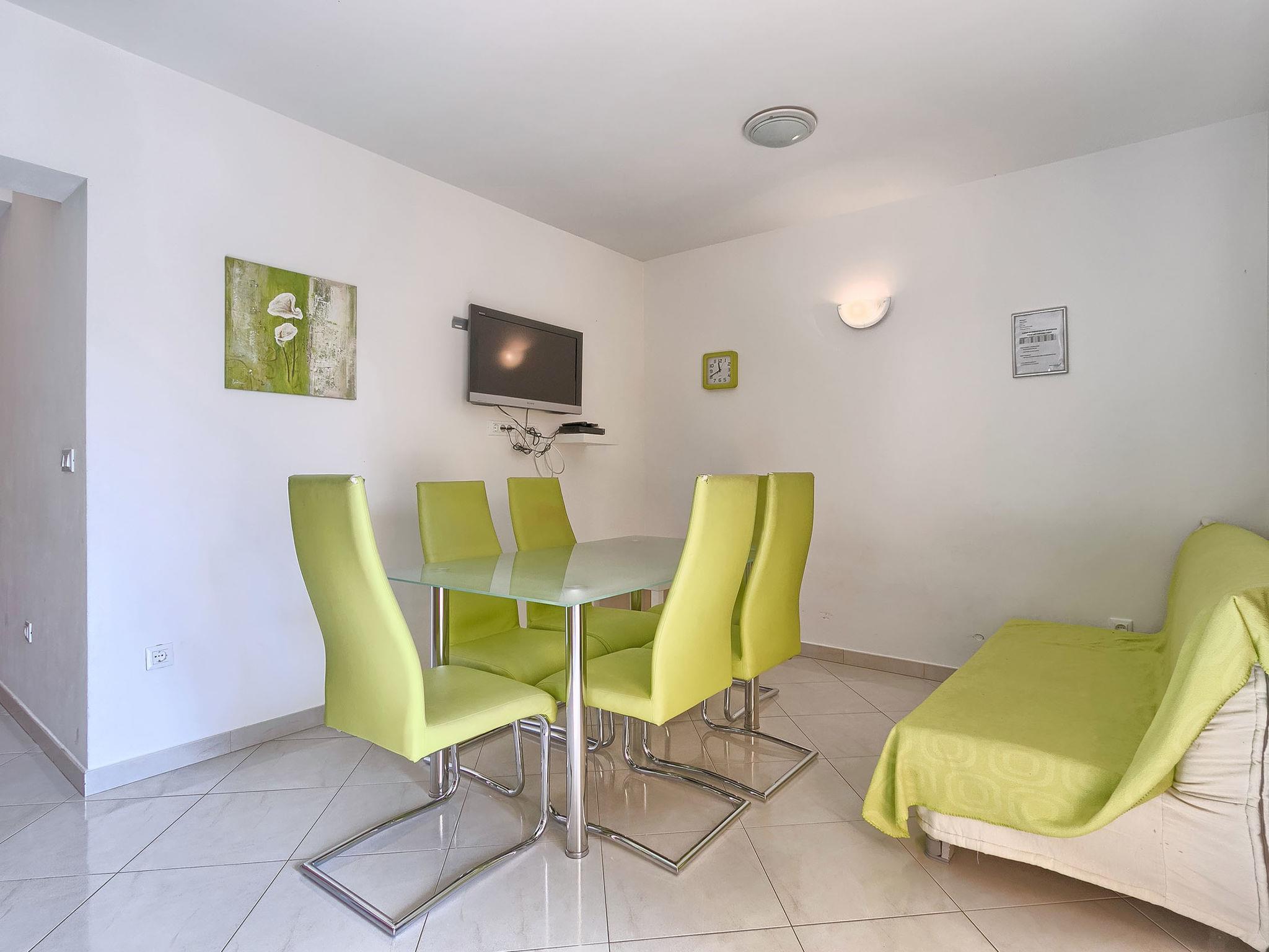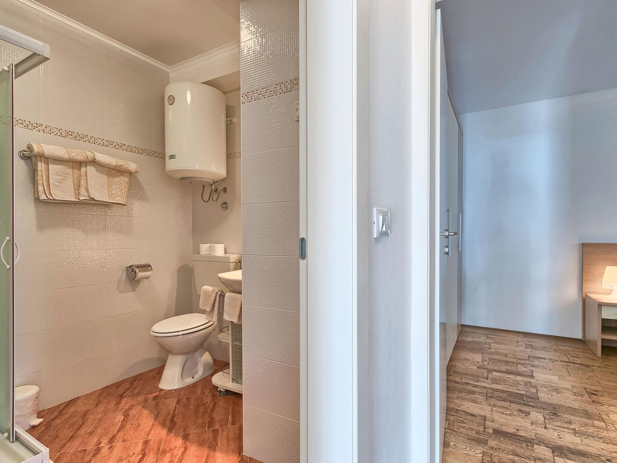 3-room apartment 52 m2, on the ground floor. Living/dining room with 1 double sofabed and satellite TV (flat screen), air conditioning. Exit to the terrace. 2 rooms, each room with 1 double bed (2 x 80 cm, length 200 cm). Open kitchen (2 ceramic glass hob hotplates, microwave, freezer). Shower/WC. Terrace 6 m2, roofed. Terrace furniture. View of the garden. Facilities: Internet (WiFi, free).