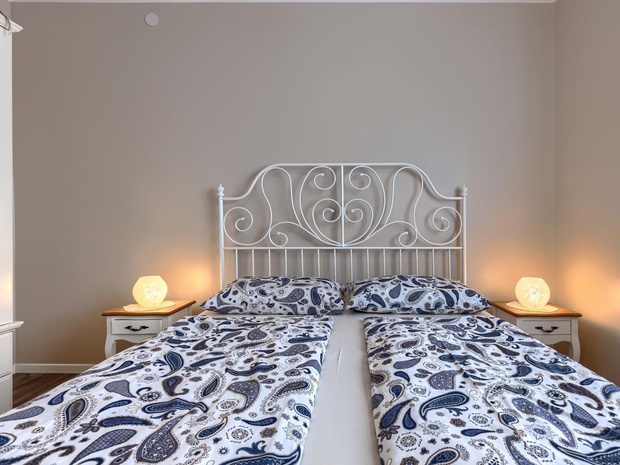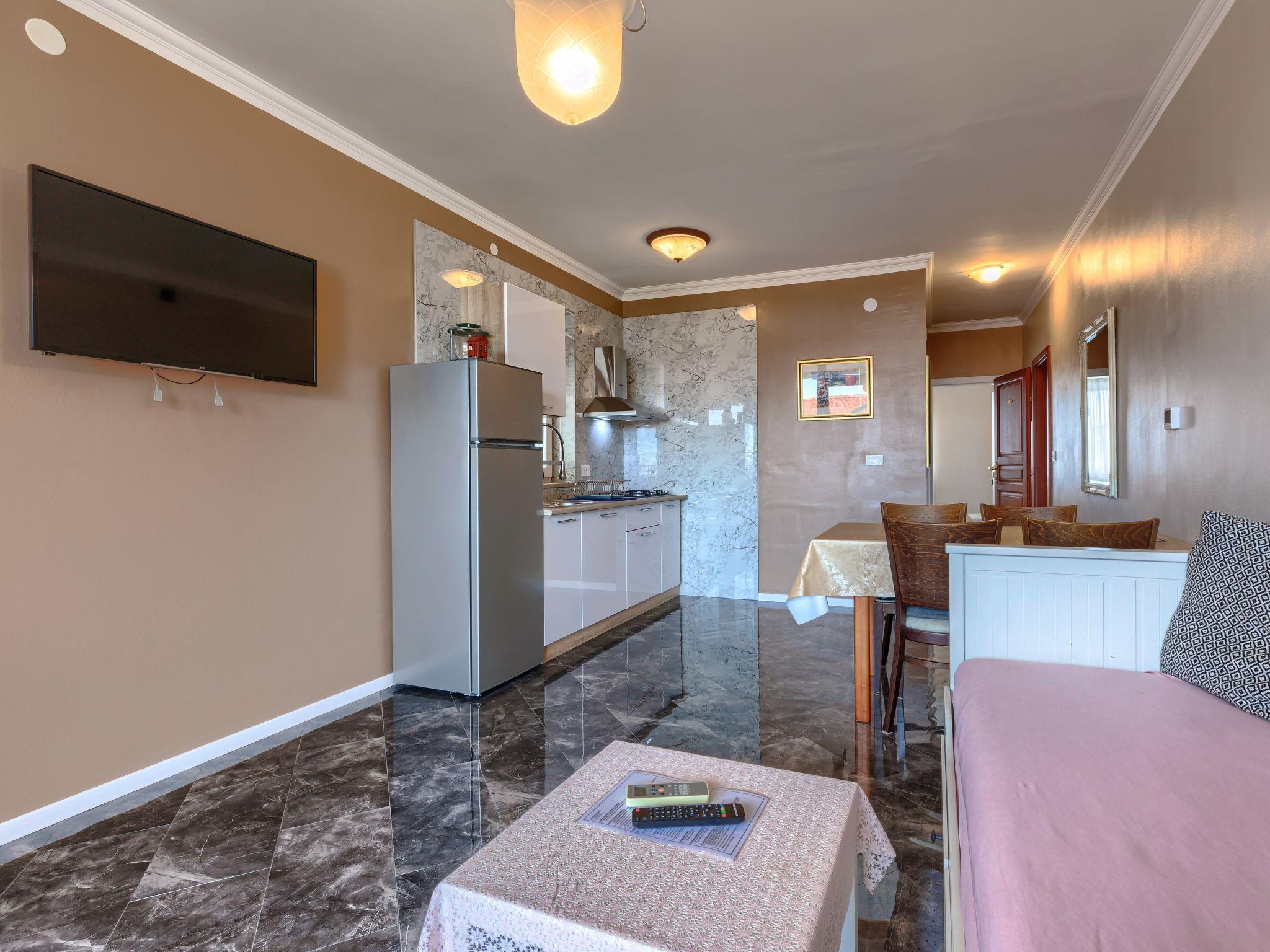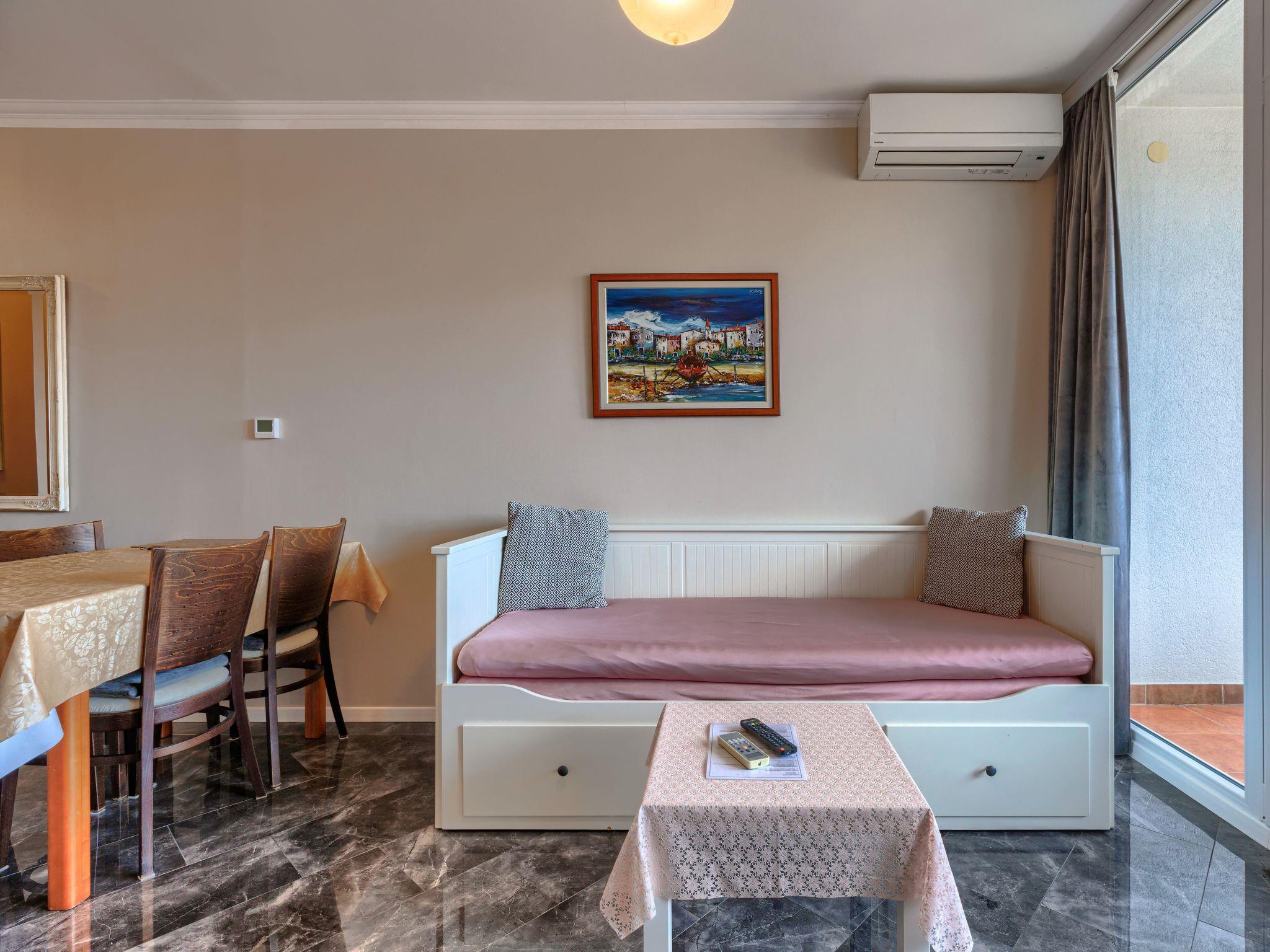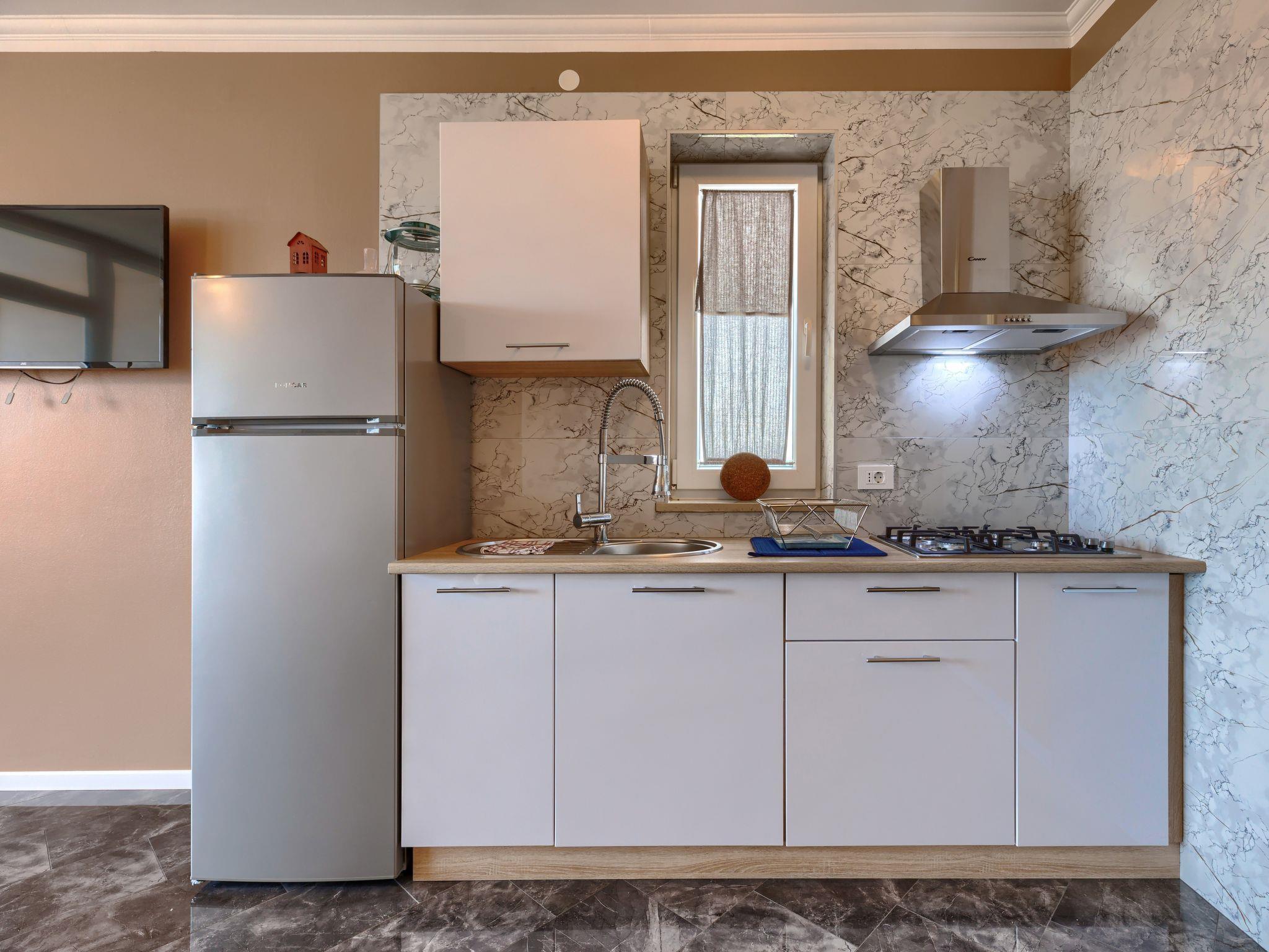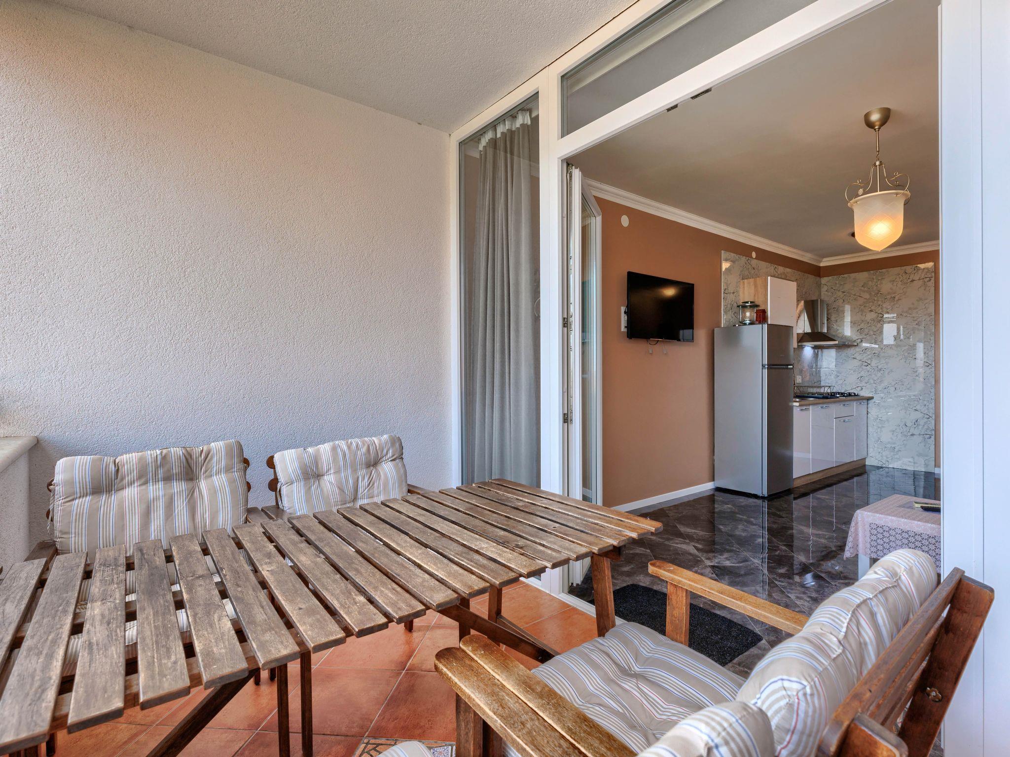"Pepe", 2-room apartment 40 m2, on the upper floor. Comfortable and cosy furnishings: living/dining room with 1 double sofabed (160 cm, length 200 cm), satellite TV. Exit to the terrace. 1 room with 1 french bed (160 cm, length 200 cm). Open kitchen (4 gas rings, kettle, freezer) with air conditioning. Shower/WC. Terrace 6 m2. Terrace furniture. View of the garden. Facilities: Internet (WiFi, free).