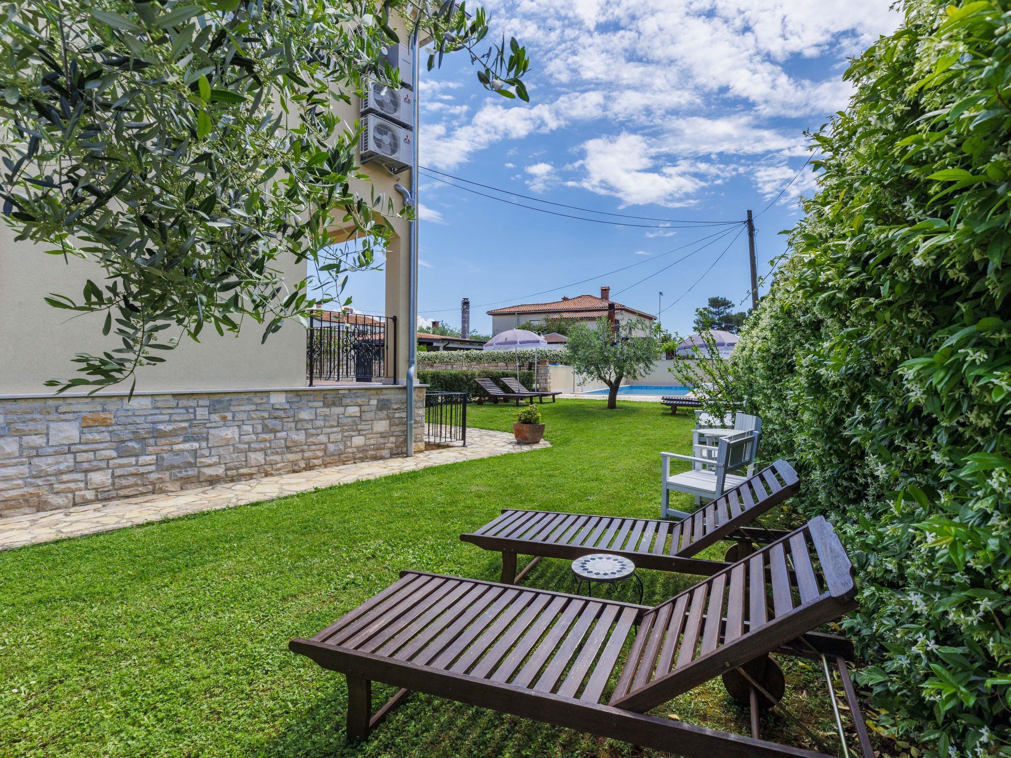 Apartment house "Villa Ester", 2 storeys. In the district of Punta 2 km from the centre of Umag, in a sunny position, from the sea, 300 m from the beach. For shared use: property 1'500 m2, swimming pool (48 m2, depth 150 cm, seasonal availability: 01.May. - 30.Sep.). Outdoor shower, hot tub, pool maintenance by the owner/gardener. In the house: internet access. Parking. Shop, restaurant 500 m, bar, bus stop 3 km, railway station 29 km, sandy beach, pebble beach 300 m. Marina 300 m, golf course (18 hole) 8 km, tennis 200 m, sports centre 300 m.