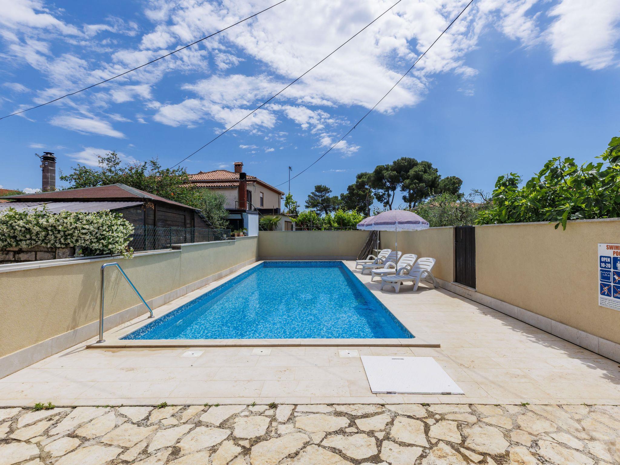 Apartment house "Villa Ester", 2 storeys. In the district of Punta 2 km from the centre of Umag, in a sunny position, from the sea, 300 m from the beach. For shared use: property 1'500 m2, swimming pool (48 m2, depth 150 cm, seasonal availability: 01.May. - 30.Sep.). Outdoor shower, hot tub, pool maintenance by the owner/gardener. In the house: internet access. Parking. Shop, restaurant 500 m, bar, bus stop 3 km, railway station 29 km, sandy beach, pebble beach 300 m. Marina 300 m, golf course (18 hole) 8 km, tennis 200 m, sports centre 300 m.