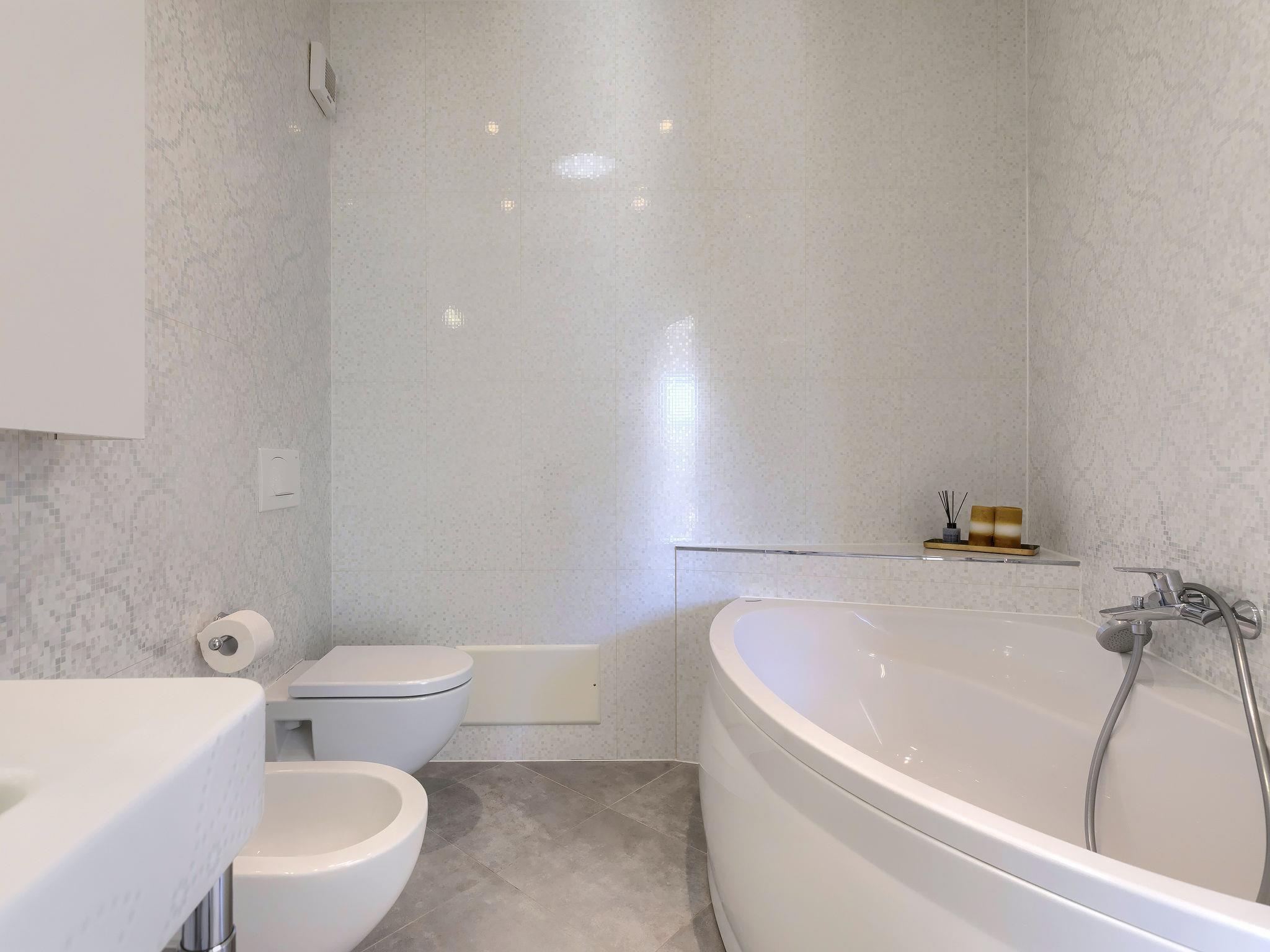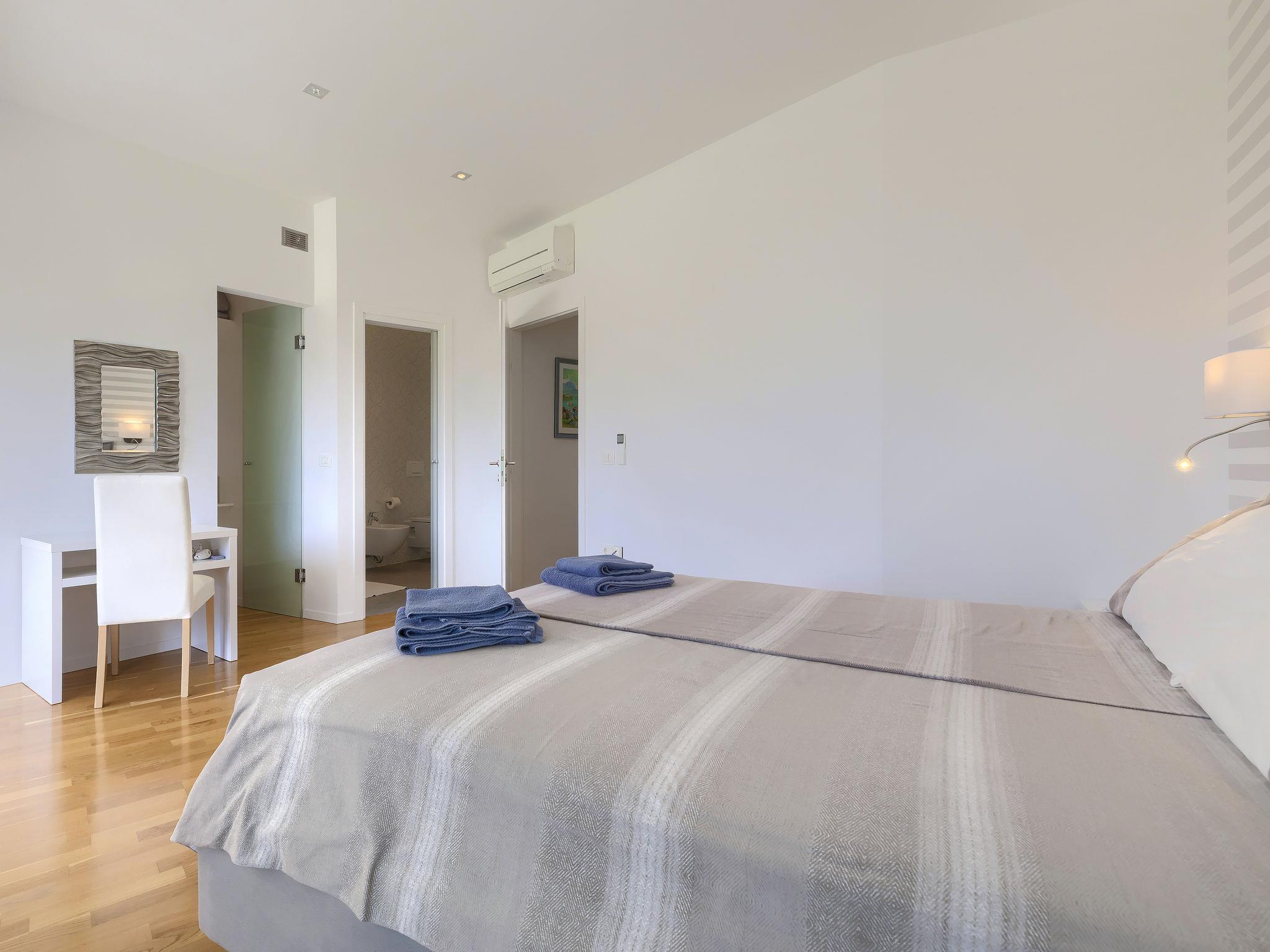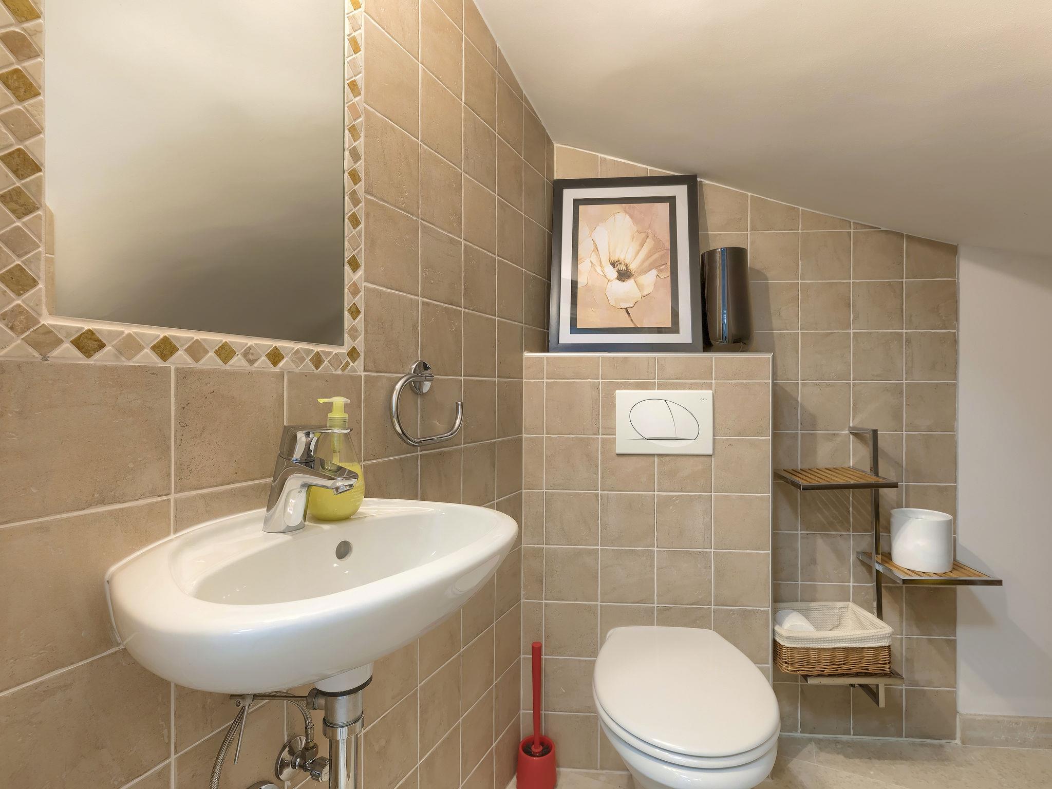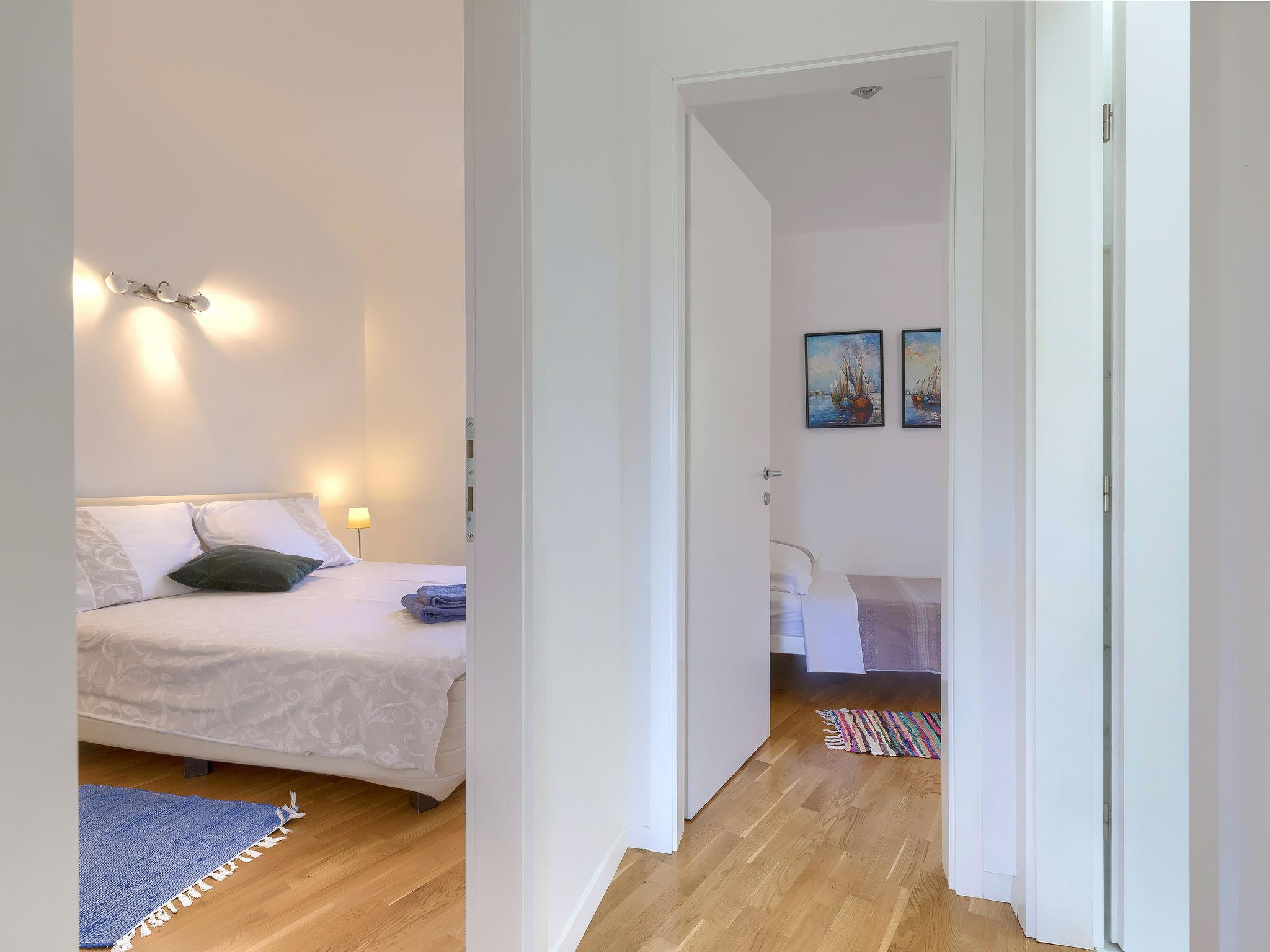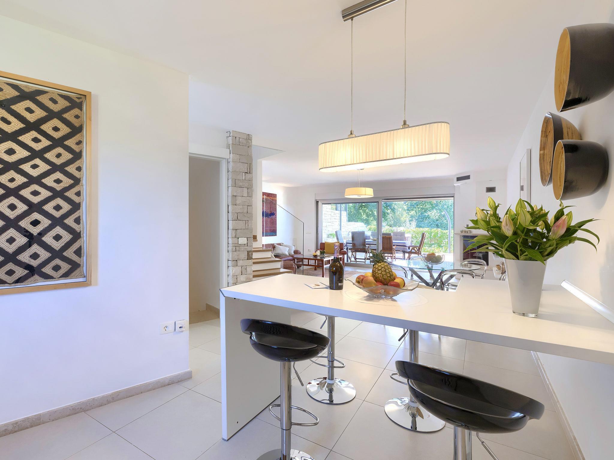 4-room terraced house 160 m2 on 2 levels. Living/dining room with open-hearth fireplace (only for decoration), satellite TV and air conditioning. Exit to the terrace. Open kitchen (4 hot plates, dishwasher, microwave, freezer). Shower/WC. On the lower ground floor: sep. WC. Upper floor: 1 room with 1 french bed (160 cm, length 200 cm), bath/bidet/WC, with corner bath and air conditioning. Exit to the terrace. 1 room with 1 french bed (160 cm, length 200 cm), air conditioning. 1 room with 2 beds (90 cm, length 200 cm), air conditioning. Shower/WC. Heating (extra). Terrace 20 m2, roofed, terrace 8 m2, roofed. Terrace furniture. View of the sea. Facilities: Internet (WiFi, free). Garage (2 cars). Maximum 1 small pet/ dog allowed.