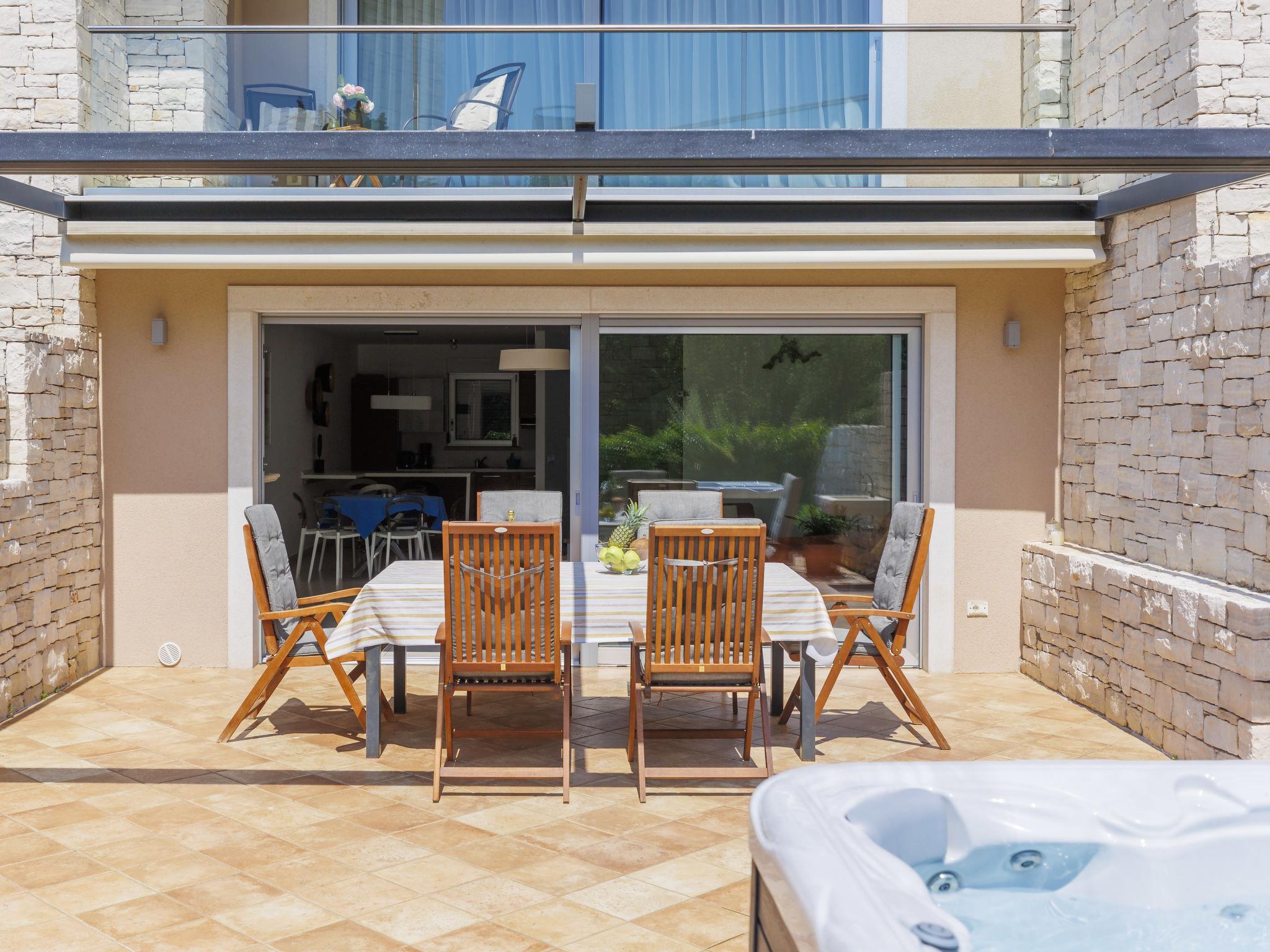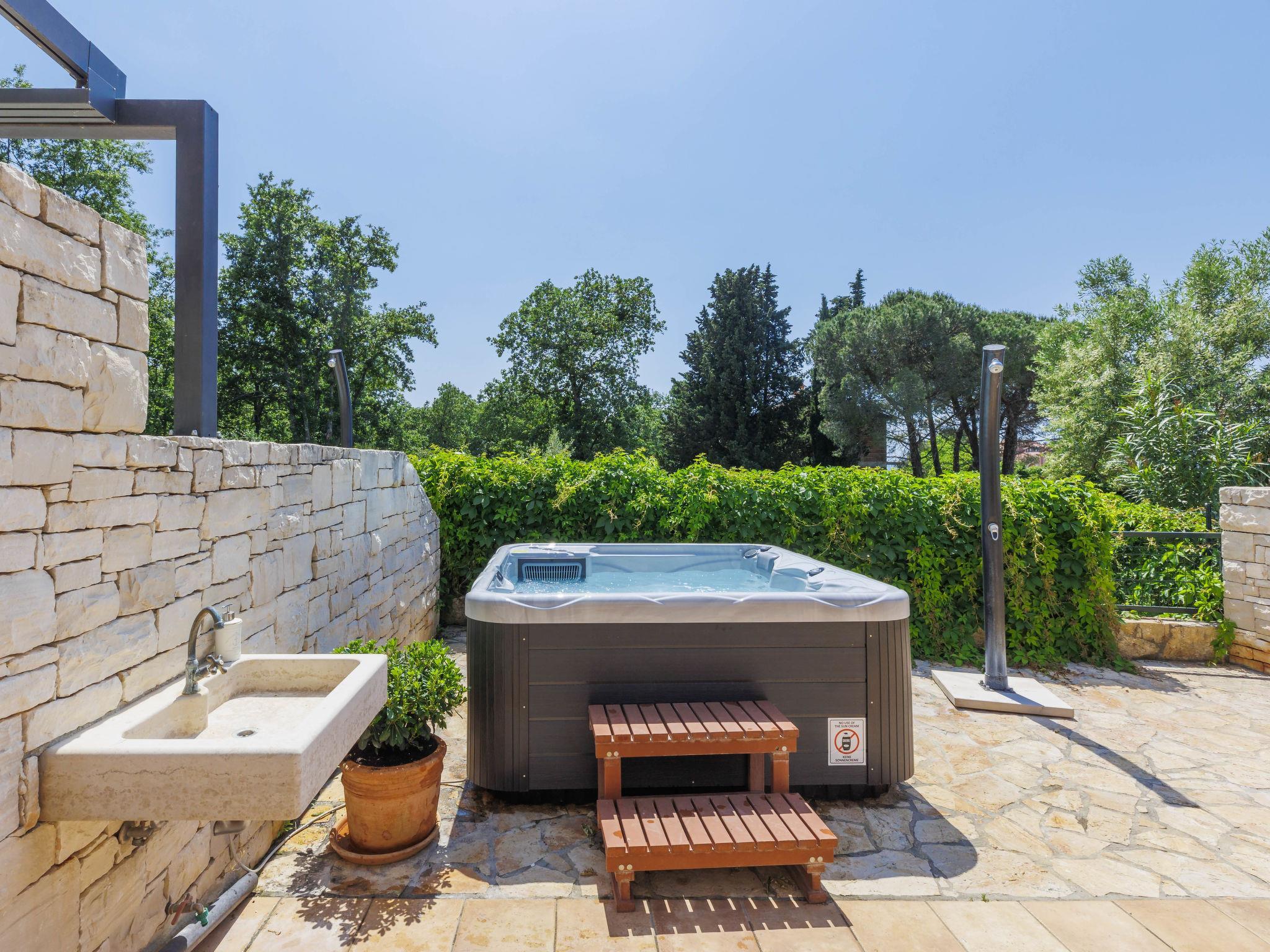 Modern, beautiful terraced house "Sv. Ivan 1", 2 storeys. In the hamlet Sv. Ivan 4 km from the centre of Umag, in a quiet, sunny position, 100 m from the sea, from the beach. For shared use: property 500 m2 (fenced) with lawn. Private: swimming pool (above ground) heated (2 x 2 m, depth 50 cm, seasonal availability: 11.Apr. - 10.Oct.). Barbecue. In the house: internet access, sauna. Parking. Shop 200 m, restaurant 100 m, bus stop 4 km, railway station 35 km, rocky beach 100 m. Golf course (18 hole) 15 km, tennis, cycle lane 100 m. Groups of teenagers on request only. Swimming pool for private use is a hot tub for 4 persons. Additional change of water in the hot tub (extra). In the same terraced house there is house r Ref. Nr. HR2200.451.1 for rent.