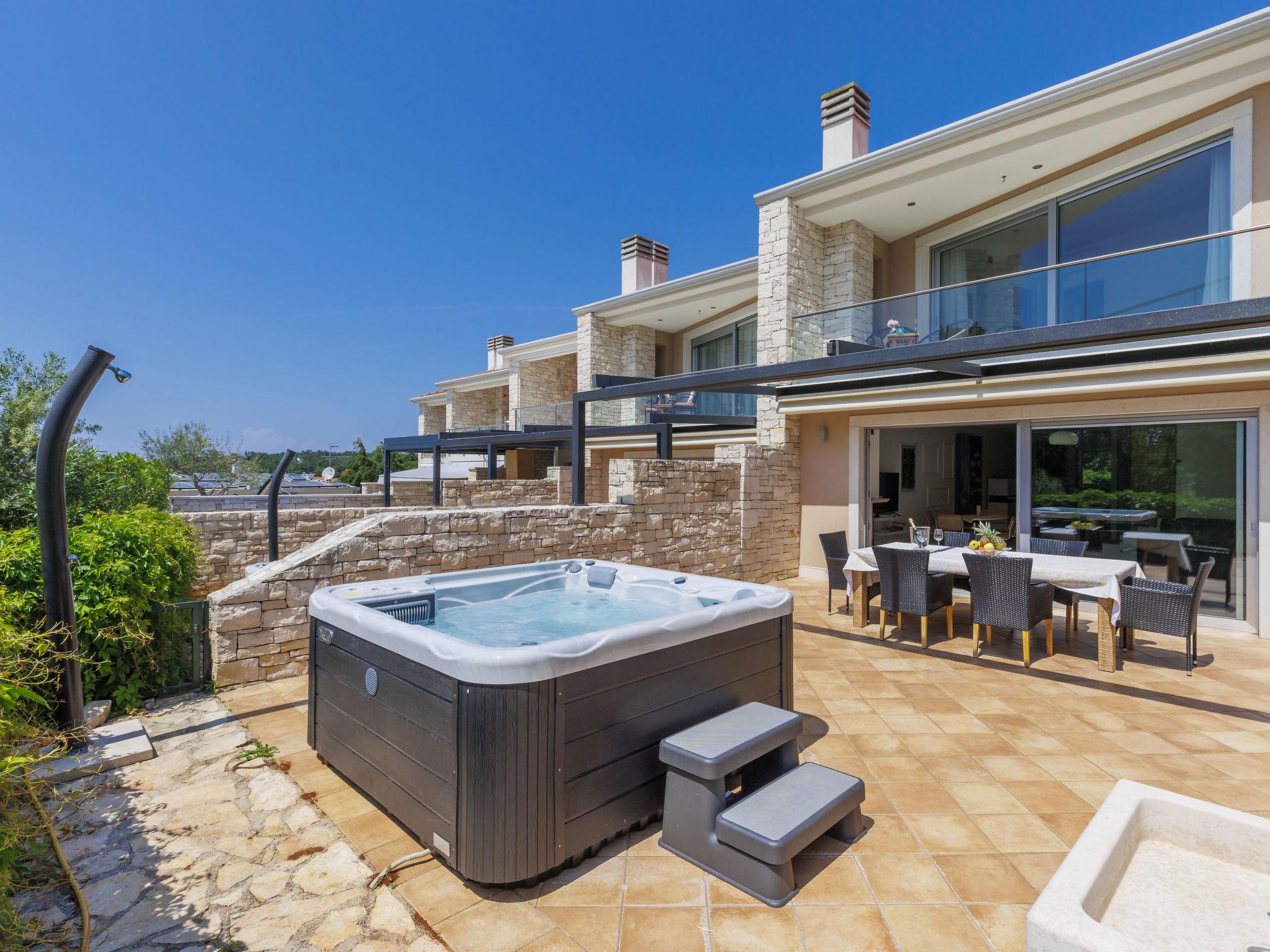 Modern, beautiful terraced house "Sv. Ivan 2", 2 storeys. In the hamlet Sv. Ivan 4 km from the centre of Umag, in a quiet, sunny position, from the sea, 100 m from the beach. For shared use: property 500 m2 (fenced) with lawn. Private: swimming pool (above ground) heated (2 x 2 m, depth 50 cm, seasonal availability: 13.Apr. - 12.Oct.). Barbecue. In the house: internet access. Parking. Shop 200 m, restaurant 100 m, bus stop 4 km, railway station 35 km, rocky beach 100 m. Golf course (18 hole) 15 km, tennis, cycle lane 100 m. Groups of teenagers on request only. Swimming pool for private use is a hot tub for 4 persons. Additional change of water in the hot tub (extra). In the same terraced house there is house ref. HR2200.450.1 for rent.