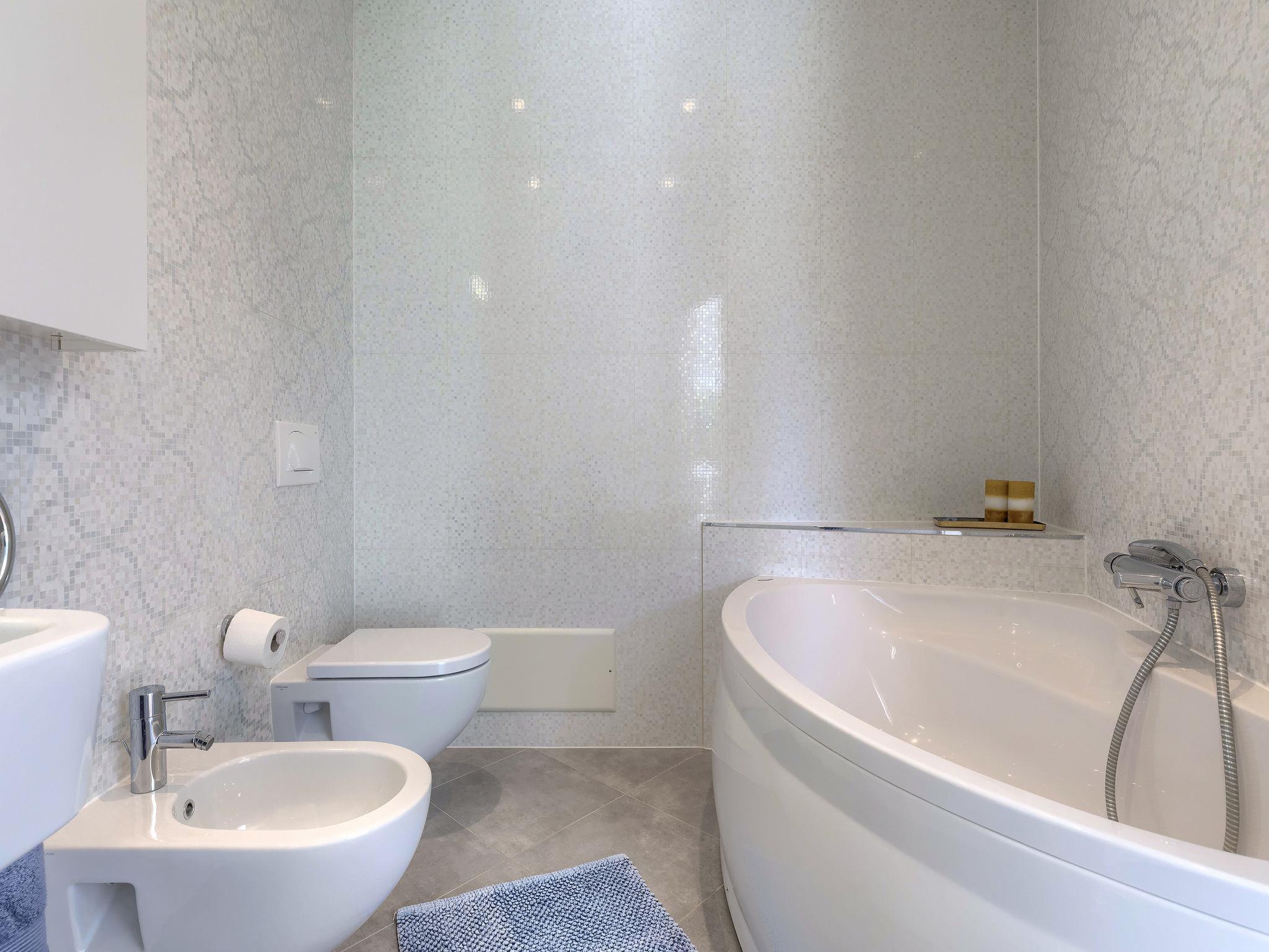 4-room terraced house 160 m2 on 2 levels. Living/dining room with open-hearth fireplace (only for decoration), satellite TV and air conditioning. Exit to the terrace. Open kitchen (4 hot plates, dishwasher, microwave, freezer). Shower/WC. On the lower ground floor: sep. WC. Upper floor: 1 room with 1 french bed (160 cm, length 200 cm), bath/bidet/WC, with corner bath and air conditioning. Exit to the terrace. 1 room with 1 french bed (160 cm, length 200 cm), air conditioning. 1 room with 2 beds (90 cm, length 200 cm), air conditioning. Shower/WC. Heating (extra). Terrace 20 m2, roofed, terrace 8 m2, roofed. Terrace furniture. View of the sea. Facilities: Internet (WiFi, free). Garage (2 cars). Maximum 1 small pet/ dog allowed.