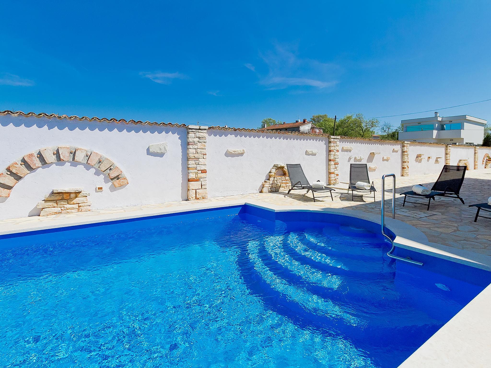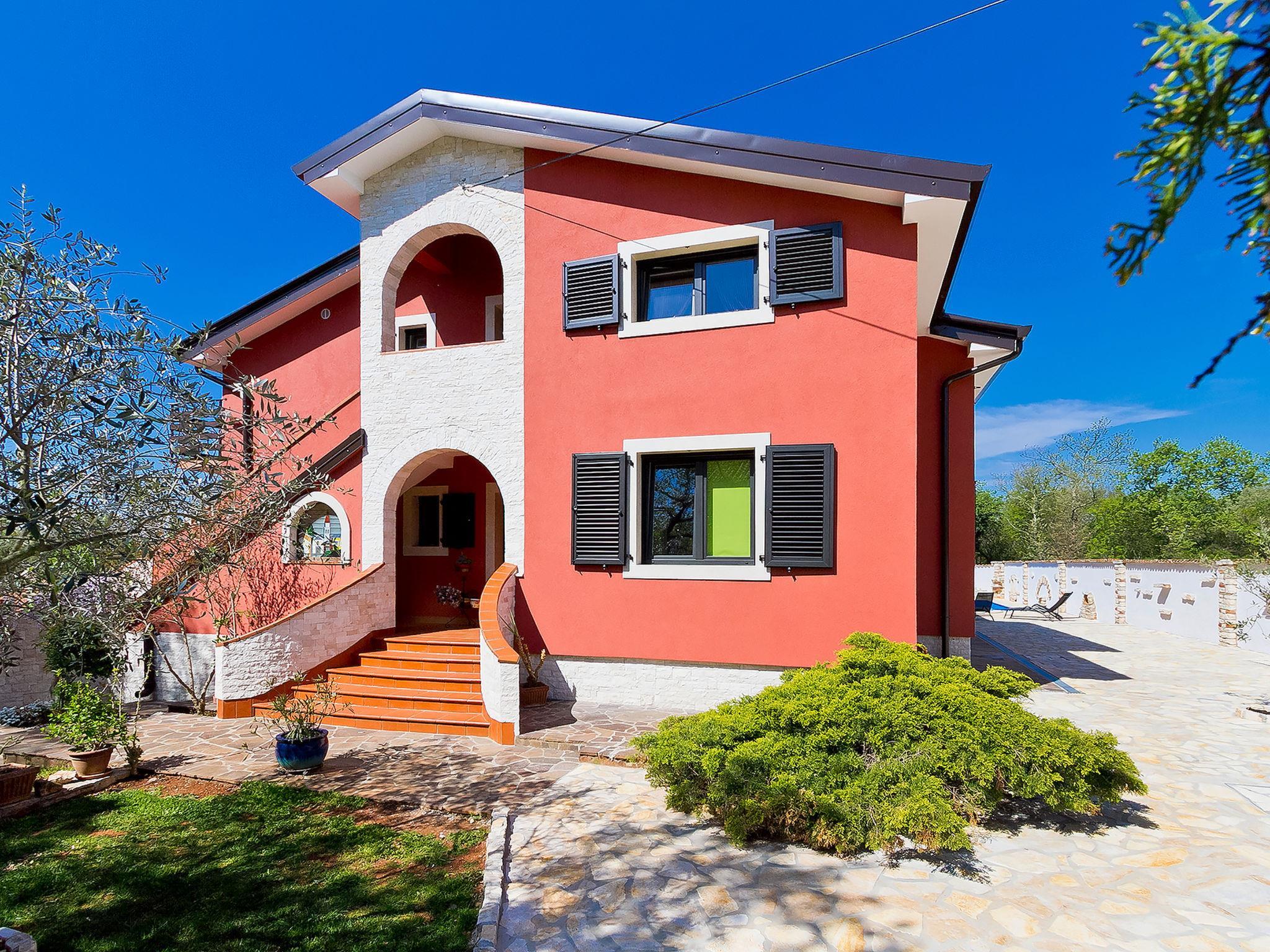2-family house "Majda". In the hamlet Barboj 5 km from the centre of Umag, in a quiet, sunny position, 1.5 km from the sea, 1.5 km from the beach, in a cul-de-sac. For shared use: property 1'000 m2 (fenced), beautiful garden with lawn. Private: swimming pool angular (8 x 4 m, depth 140 cm, seasonal availability: 15.May. - 28.Sep.) with internal staircase. WC in the pool area, outdoor shower, terrace (40 m2), garden furniture, barbecue. In the house: internet access. Parking at the house on the premises. Shop 1 km, supermarket 5 km, restaurant 1 km, bus stop 6 km, railway station 33 km, pebble beach 1.5 km, rocky beach 1.5 km, public bathing area 1.5 km. Golf course (18 hole) 3 km, tennis 1.5 km, walking paths from the house 150 m, cycle lane 200 m. Please note: the owner lives in the same residence. Youth groups are not allowed.