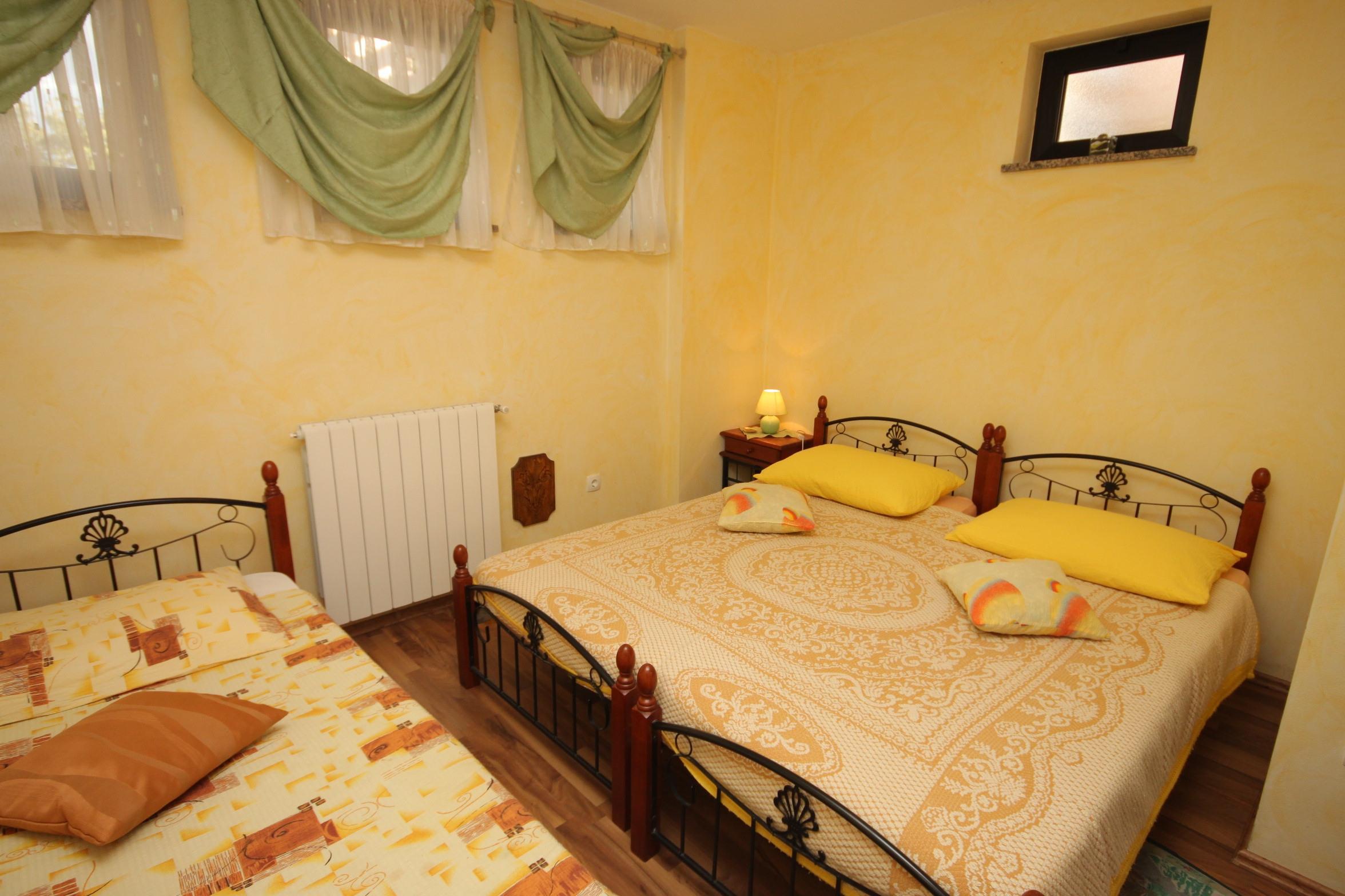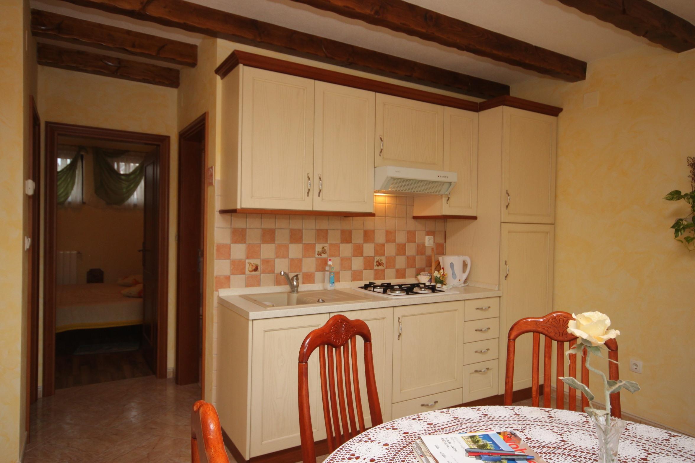 Apartment can accommodate 5 guests. Beds are situated in 1 sleeping rooms, but also in the living room and dining room, within 41m2. Guests can use a private terrace to enjoy the warm summer evenings. Food can be prepared using barbecue which is shared with other guests too.