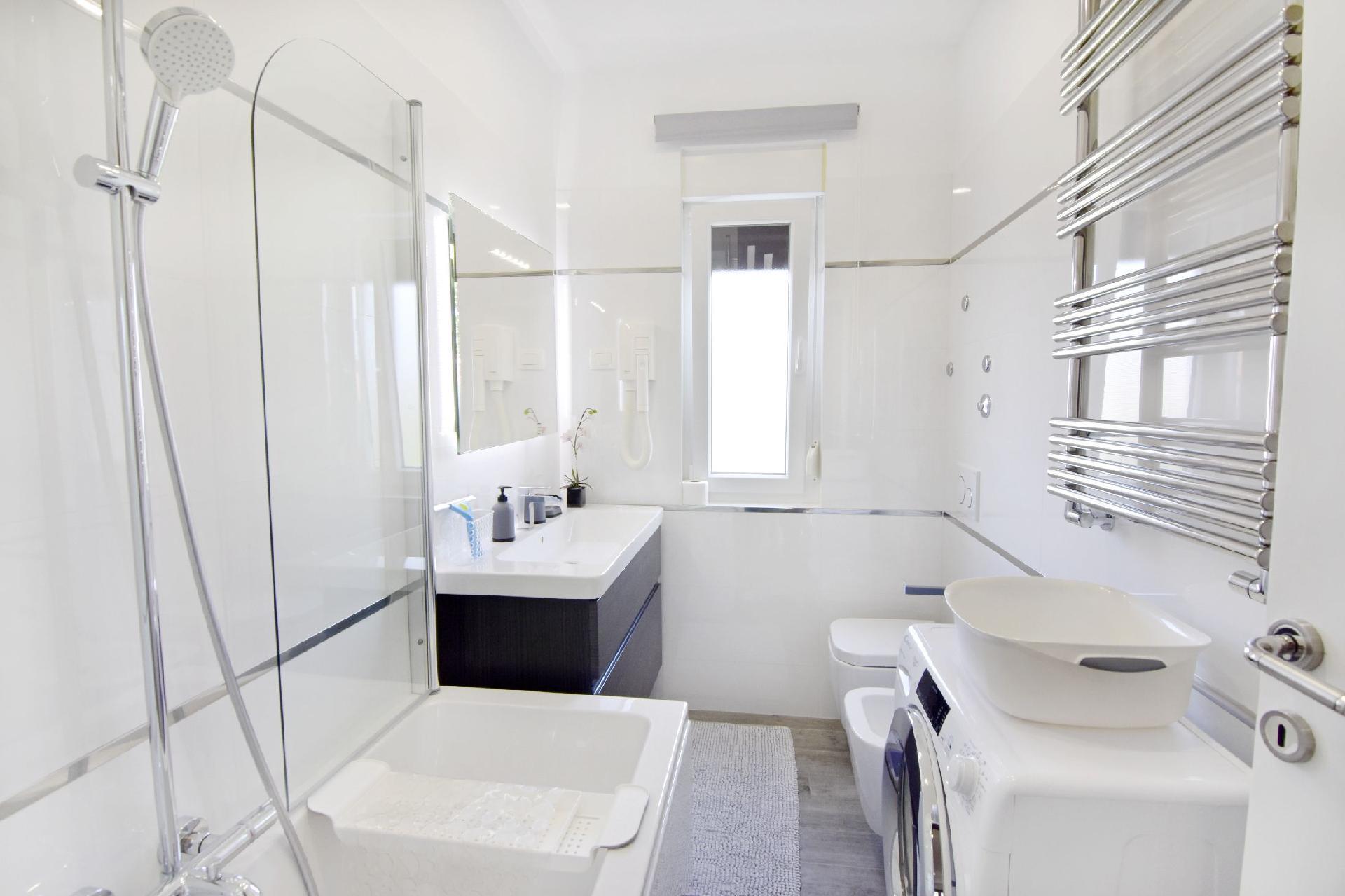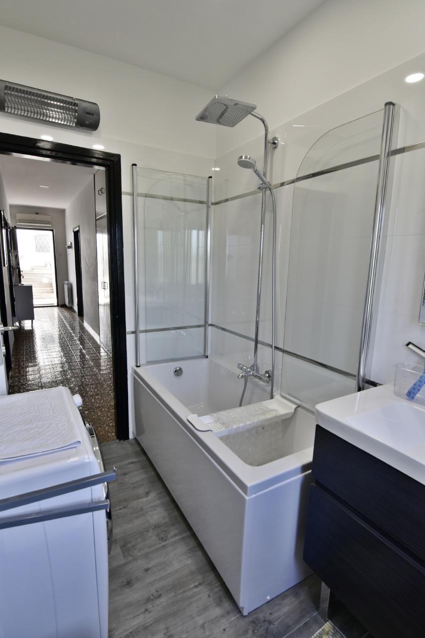 The 128 m² flat on the first floor impresses with a fully equipped kitchen that leaves nothing to be desired, including 3 gas burners, an electric hob, oven and many other appliances. It also offers a cosy living room with Smart TV, two bathrooms and several bedrooms, including one with access to a lovely terrace. The interior design is functional and modern, so that guests can immediately feel at home.