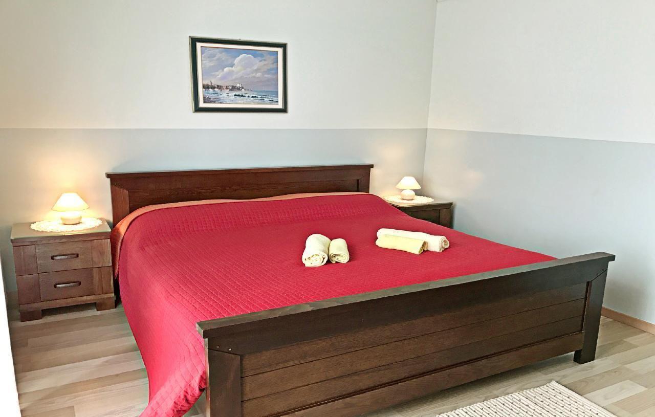 The accommodation consists of a bedroom with double bed 160x200, two bedside tables with night lamps, wardrobe, chest of drawers, a second bedroom with two single beds 80x200 that can be joined, wardrobe, a bedside table and night lamp and cabinet, linen bed provided (changed weekly), the furniture of the house in solid wood reinvigorates the quality of the house. The fully equipped eat-in kitchen has a microwave oven, kettle, oven, refrigerator with freezer area, stove with two gas and two electric burners, extractor hood, coffee machine, dishes and cutlery, pots, dining area with dining table. dining room and 4 chairs. The bathroom with box shower, toilet, sink with cabinet and mirror, bidet, washing machine, hairdryer, bathroom towels two per person provided (changed weekly), the service bathroom with toilet, sink with cabinet and mirror. At the entrance is the magnificent veranda with sofa and armchairs with coffee table and flat-screen satellite TV. Free Wi-Fi internet access is available. The strong point is also the possibility to park your car safely inside the fenced structure that will make you feel safer and more peaceful. In our holiday home, you can spend days of rest and relaxation relaxing in the wonderful garden or on the veranda. Ideal for families with children or two couples of friends.