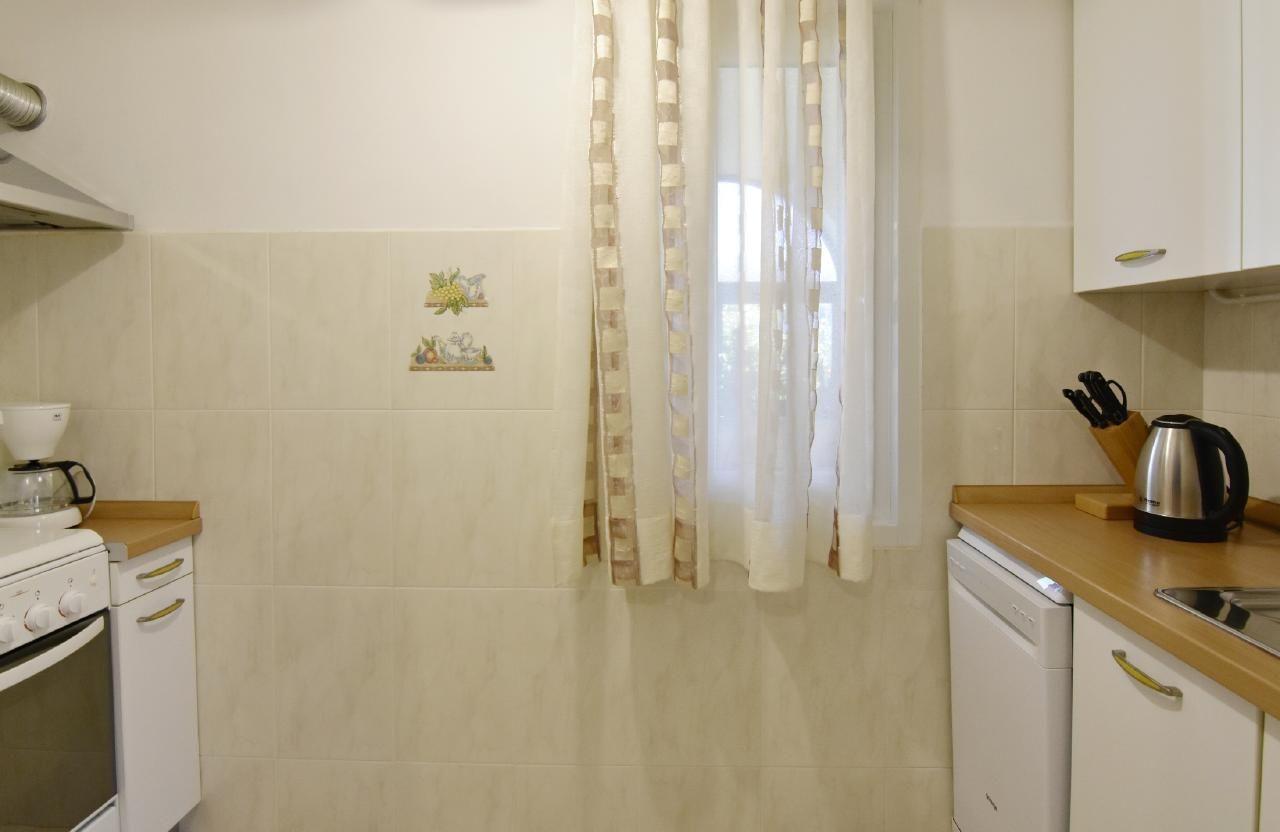 The accommodation consists of two bedrooms with double beds 160 x 200, wardrobes, night lamps, bed linen provided (changed weekly), an equipped kitchenette with dishwasher, microwave oven, kettle, coffee machine, oven, stove, extractor hood, the dining room with table and 4 chairs, fridge with freezer area, flat-screen satellite TV, free Wi-Fi internet connection, bathroom with shower, sink with cabinet and mirror, toilet, bidet, washing machine, hairdryer, bath towels provided (two per person - changed weekly), the corridor with hangers and air conditioner, the beautiful veranda furnished with table and chairs.