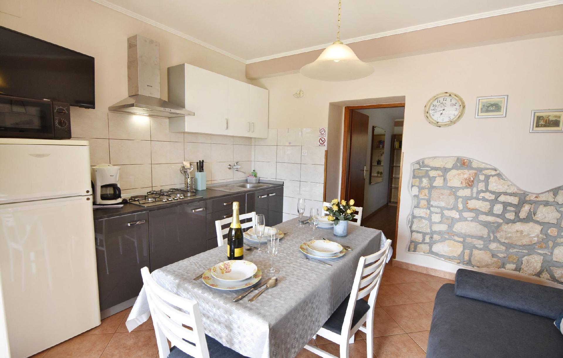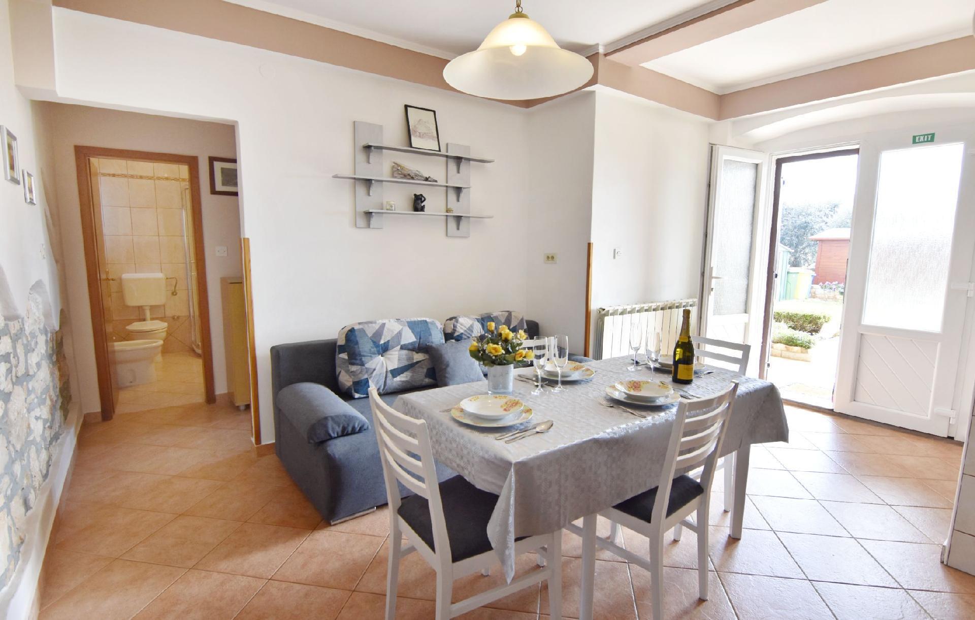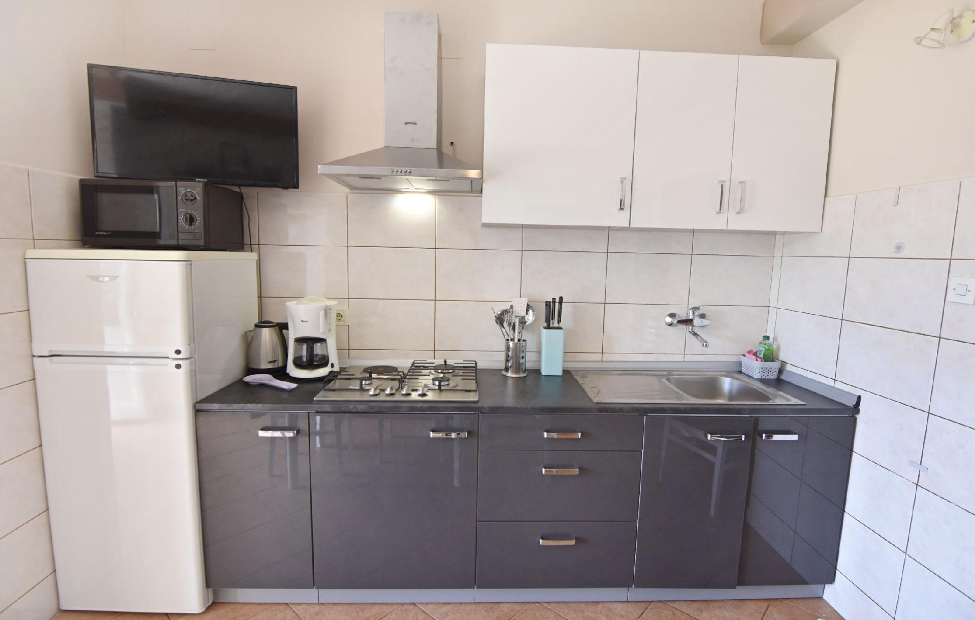 Comfortable 44 sqm apartment located on the ground floor of a family villa with a beautiful large enclosed garden for shared use. The location is perfect for families with children due to the proximity of the beaches. The bathing facilities are easily reachable on foot in a few minutes. The location is quiet, sunny surrounded by greenery, but still central.The house offers a beautiful fenced and well-kept garden, a small olive grove and two apartments for rent.The 47 sqm apartment located on the ground floor of a family house with a large garden and sea view. Located in the tourist area of ??Umag most loved by tourists for the variety of beaches, it will make your holiday unforgettable. The accommodation is ideal for families or small groups looking for comfort and tranquility. The comfortable apartment has two bedrooms, each with double bed (160x200), bed linen provided (changed weekly), two bedside tables with night lamps and wardrobe. The full bathroom has a shower, washing machine, sink with cabinet and mirror, hairdryer, two bath towels per person provided (changed weekly). The living area has a kitchen equipped with a stove with two gas and two electric burners, smoke extractor hood, oven, refrigerator, kettle, coffee machine, toaster, plates, cutlery, glasses and kitchen utensils. The living area has a sofa, dining table with 4 chairs, flat screen satellite TV, air conditioner and free Wi-Fi internet connection. At the entrance of the apartment there is a large covered terrace equipped with garden furniture with a wonderful sea view and garden decorated with flowers and plants. In the courtyard available for shared use the garden swing and the barbeque area with stone table and benches to spend summer evenings in the company of the outdoors.The area is quiet surrounded by greenery, the beach can be reached on foot in a few minutes. The nearby beaches are varied to satisfy every need, sandy, rocky, pebbly, equipped, with the possibility of renting deck chairs and umbrellas. These beaches make unique the wonderful Mediterranean vegetation along the coast that allows you to shelter from the sun during the hottest hours of the day. To find the beach you prefer, just move a few hundred meters, as the structure of the beaches changes. For those who love the gym, outdoor gym equipment is available for free on the seafront.The nearest beach at 600 m, the grocery store at 800 m, the restaurant at 250 m.In the vicinity of the apartment there are a couple of restaurants and pizzerias. Only 100 m away is the station of the tourist train which leaves from the tourist village of Katoro and along the coast arrives in the center of Umag and vice versa. The center of Umag can be reached on foot in 20 minutes or can be reached by tourist train. In the center of Umag to visit the museum, the aquarium, the cathedral, a walk along the famous Umag Dam is recommended, to explore the narrow and interesting alleys of the old town, or visit the stalls and to the delight of children the playground on the waterfront. To buy a larger quantity of food it is better to walk a few kilometers to the largest and most convenient supermarkets such as Lidl, Spar, Kaufland or Plodine.Nearby there are various leisure possibilities: tennis courts, the Adriatic Golf Club with 18 holes, horse riding, water sports, night clubs, adrenaline park, mini golf course, fishing. It is also possible to take various organized trips by boat or by bus. The area is full of renowned restaurants, simple restaurants, pizzerias, fast food restaurants, bars. We recommend visiting the Istrian hinterland for days off the beach or to spend the evenings. Very interesting is the artists' village Grožnjan, Motovun the typical medieval town located on a hill and known for the film festival which takes place every year at the end of July, the village of Livade very well known for its white truffle. For cave lovers to visit the Baredine cave. Don't miss the chance to visit Hum the smallest city in the world just 60 km from Umag. Also interesting are the places on the coast such as the NP Brijuni, Pula, Rovinj and Porec. Organize various fish picnic boat trips during which you will have the opportunity to visit Rovinj and Porec or Novigrad. The day trip by hydrofoil to Venice (if it is possible due to COVID). To visit the Istralandia water park 20 km from Umag to the delight of children and the Dinopark in Vrsar, fun is guaranteed there. For gourmets various possibilities of tasting wines, cheeses, olive oil, typical Istrian ham and much more. For organized trips we recommend the Trevitours agency which, after a telephone consultation or with the owner, also brings the tickets to your home* Registration only on the first day, to be paid on arrival in cash* Guests are kindly requested to use the appliances with care.* It is forbidden to smoke indoors but you can smoke on the terrace.* For any damage caused, guests are kindly requested to inform the owner or the agency that after a careful assessment of the damage, the cost of the damage will be charged on the spot.Short descriptionOther : Non-smoking houseShort description 1Number of kitchens : 1SurroundingNearby sports facilities : Basketball, Bike tours, Diving, Fishing, Football area, Golf course, Hunting facilities, Mountainbiking, Riding possibilities, Sailing, Sport center, TennisRental Facilities : Bicycle rental service, Boat rental service, car rentalGarden and outdoorGarden facilities : Garden furniture provided, Grill