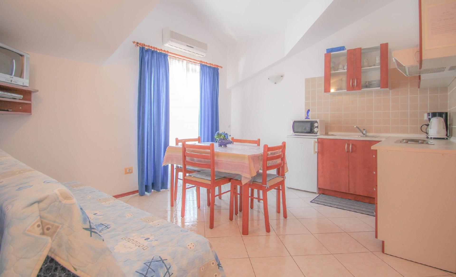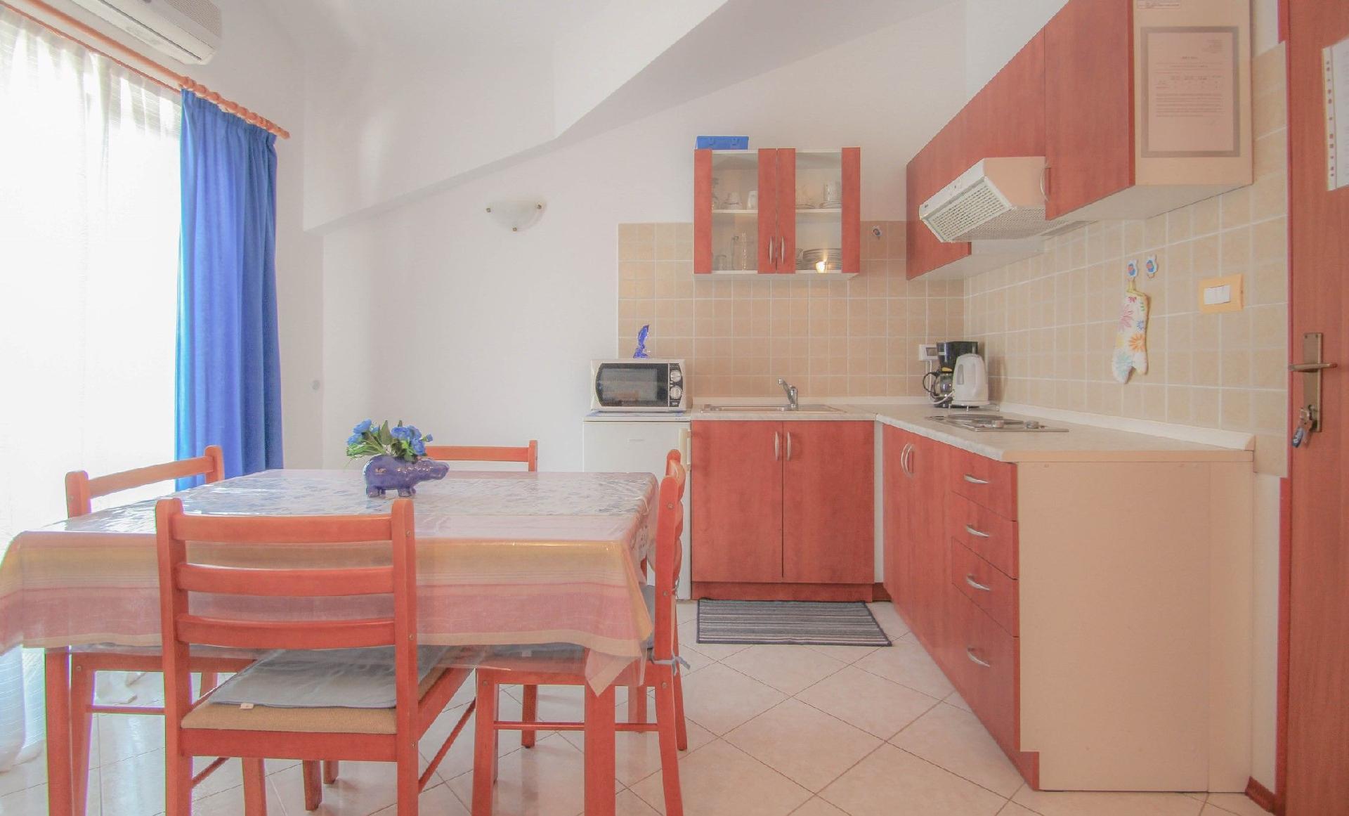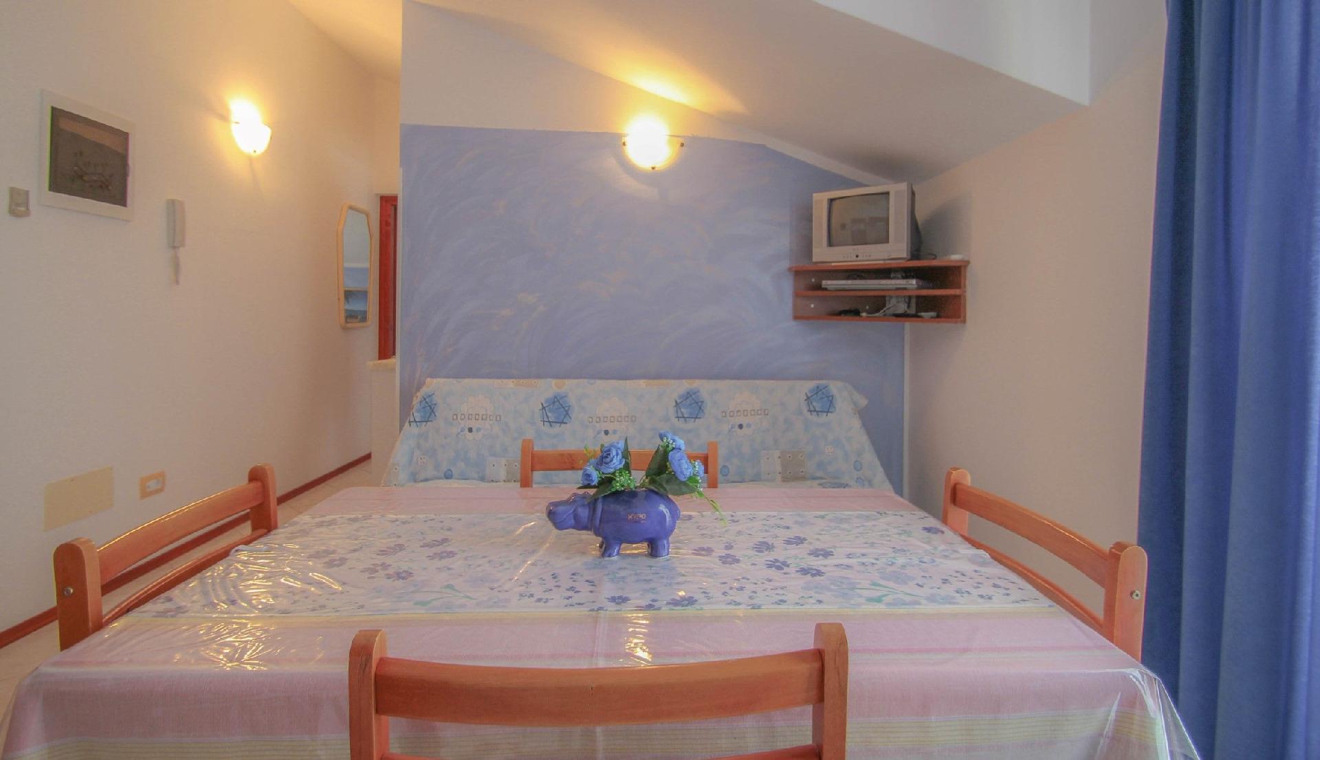 Inside, the apartment is well-equipped to ensure a comfortable stay. The cosy space integrates a neat bedroom with a double bed, ensuring a restful night's sleep. The living area houses a sofa bed suitable for an additional guest, making it perfect for small families or a group of friends. For those who enjoy preparing their meals, the kitchen comes ready with an electric stove, refrigerator, microwave, and a coffee maker, catering to all your culinary needs. The convenience of a bathroom with a shower ensures your refreshment after a day out exploring or lounging on the beach.