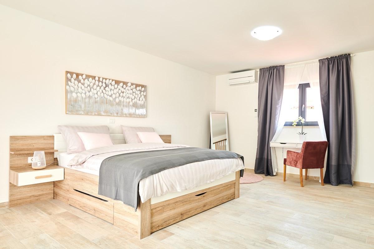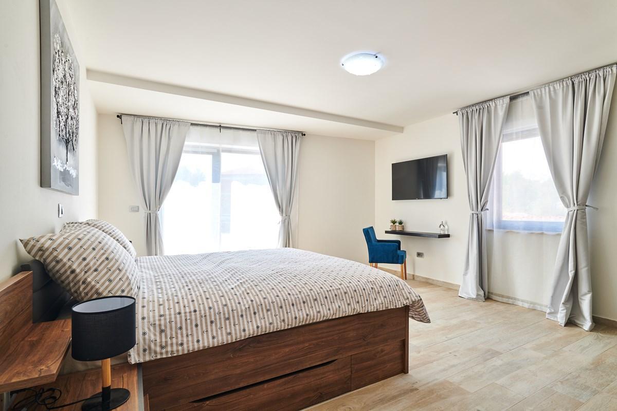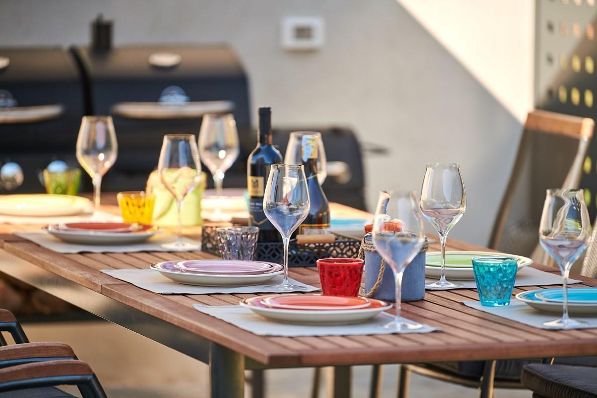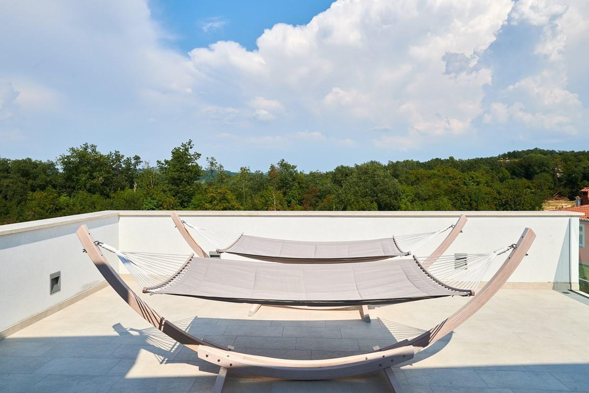 Luxury Villa Dolcea is located in the village of Kaštel, near Umag. The villa is a few minutes away from beaches and good restaurants. Villa Dolcea is beautifully decorated with best equipment and design and spreads over three floors. In the basement of the villa there is a entertainment room, table football and darts, separate toilet and additional kitchen with a fireplace for relaxation and socializing with the loved ones. On the ground floor of the villa there is a spacious living room, dining room and fully equipped kitchen with all necessary appliances, separate toilet and two double bedrooms with private bathrooms. Also, on the ground floor there is a large terrace with outdoor pool, barbecue and garden furniture. On the 1st floor there are two double bedrooms with bathrooms and a balcony overlooking the nature, where you can enjoy and rest in the summer hot nights on hanging loungers. The whole villa is air-conditioned, equipped with SAT-TV, WiFi internet and safe. In front of the Villa Dolcea there are four parking spaces available.