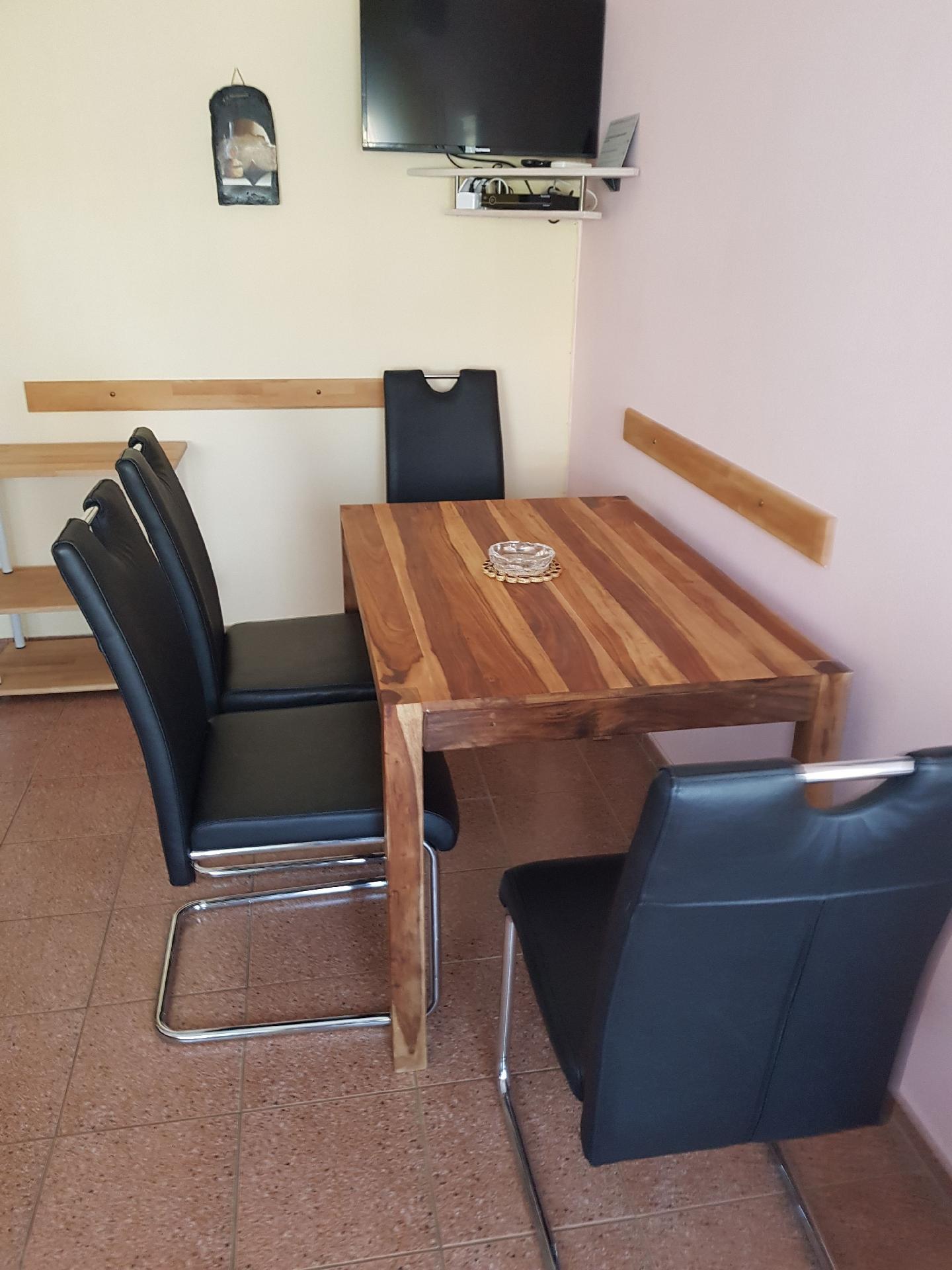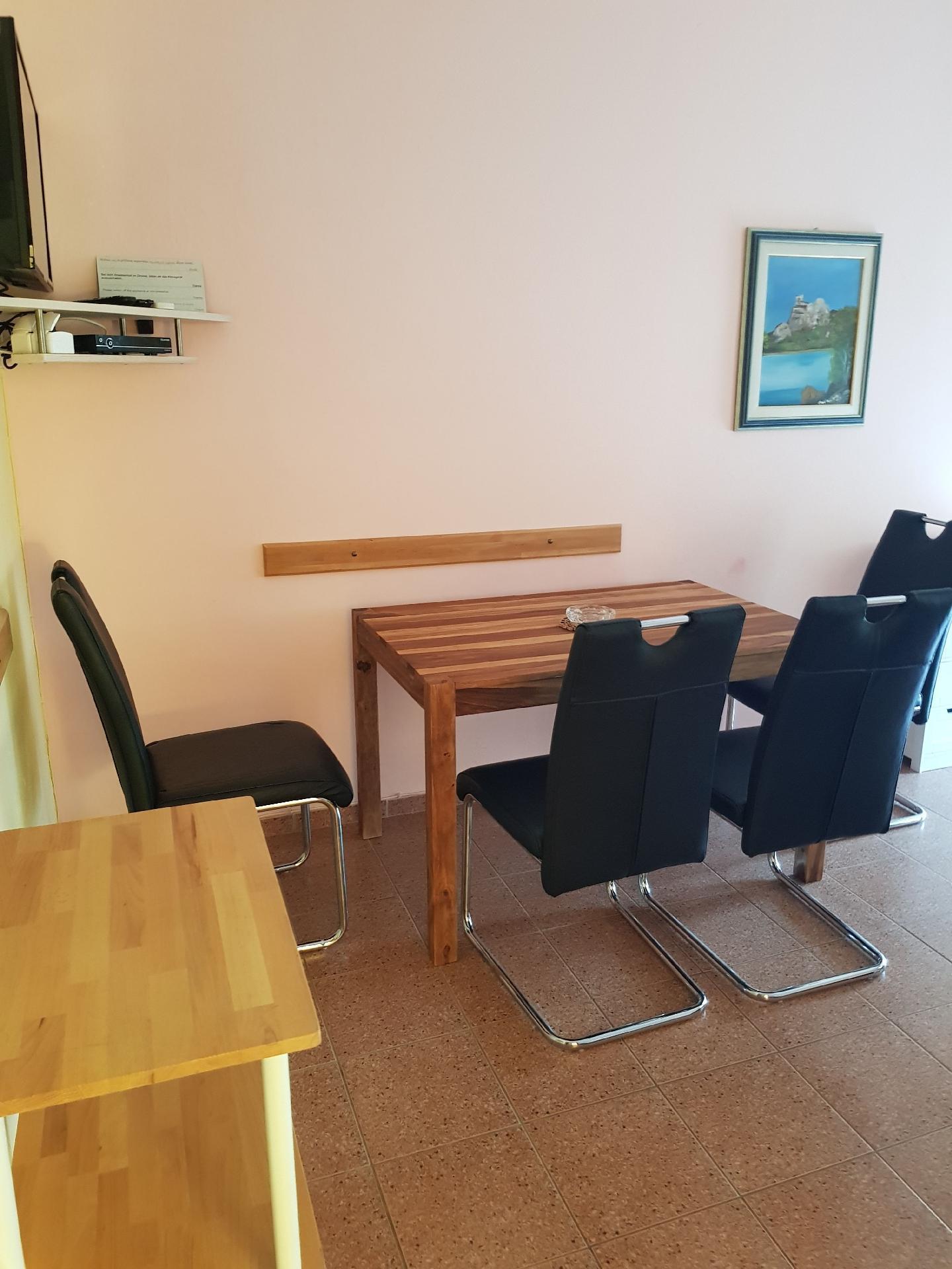 Inside, you will find a comfortably furnished bedroom with two single beds, ideal for a restful night's sleep. Two further sleeping options with a double bed provide additional sleeping comfort. Technical amenities such as WiFi, air conditioning (partial) and a TV with satellite connection ensure modern comfort. There is also a washing machine available for exclusive use, making your stay a pleasant one even for longer periods. A coffee machine and kettle are available for cosy hours and the preparation of small snacks.