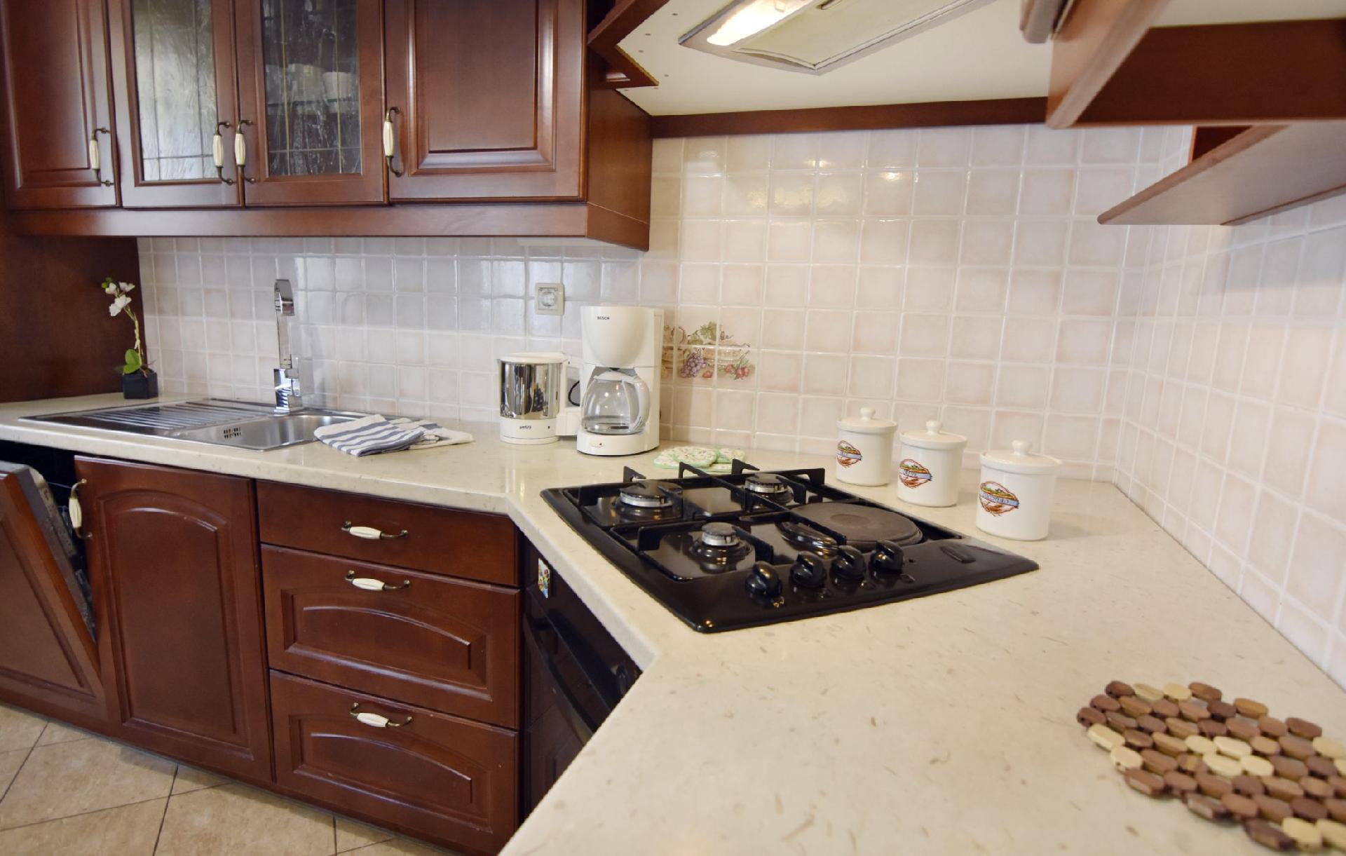 Kitchen: Ceran stove; Coffee machine; Dishwasher; Freezer; Fridge; Microwave; Oven; Water boiler