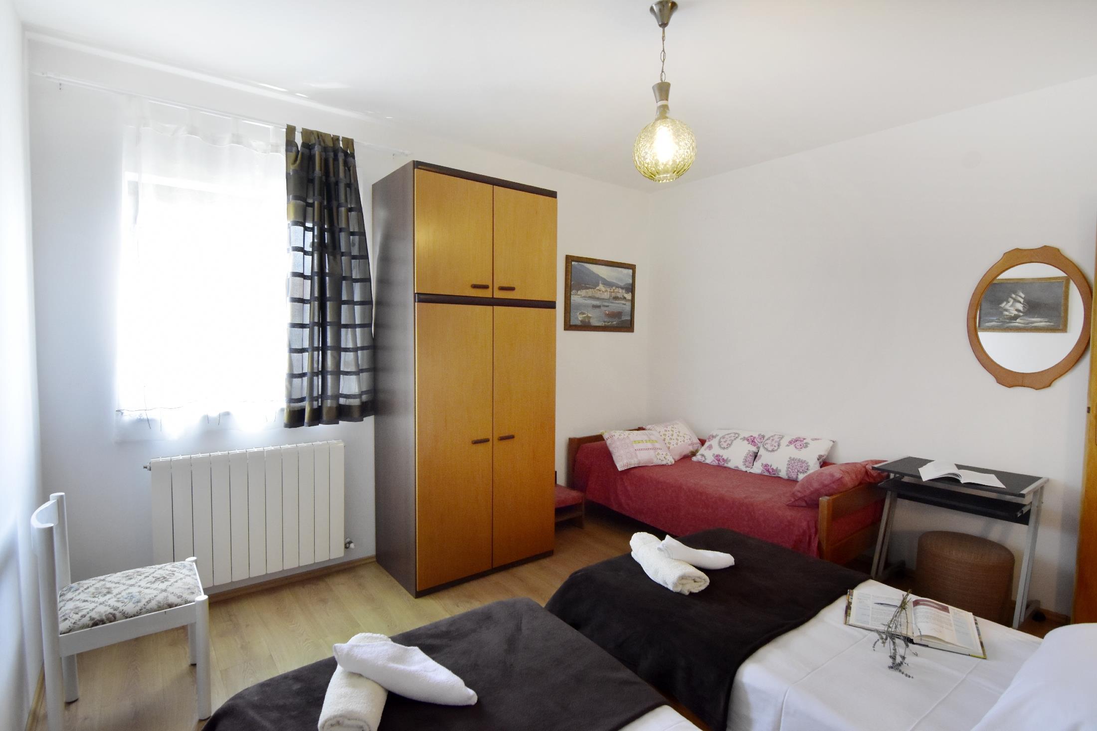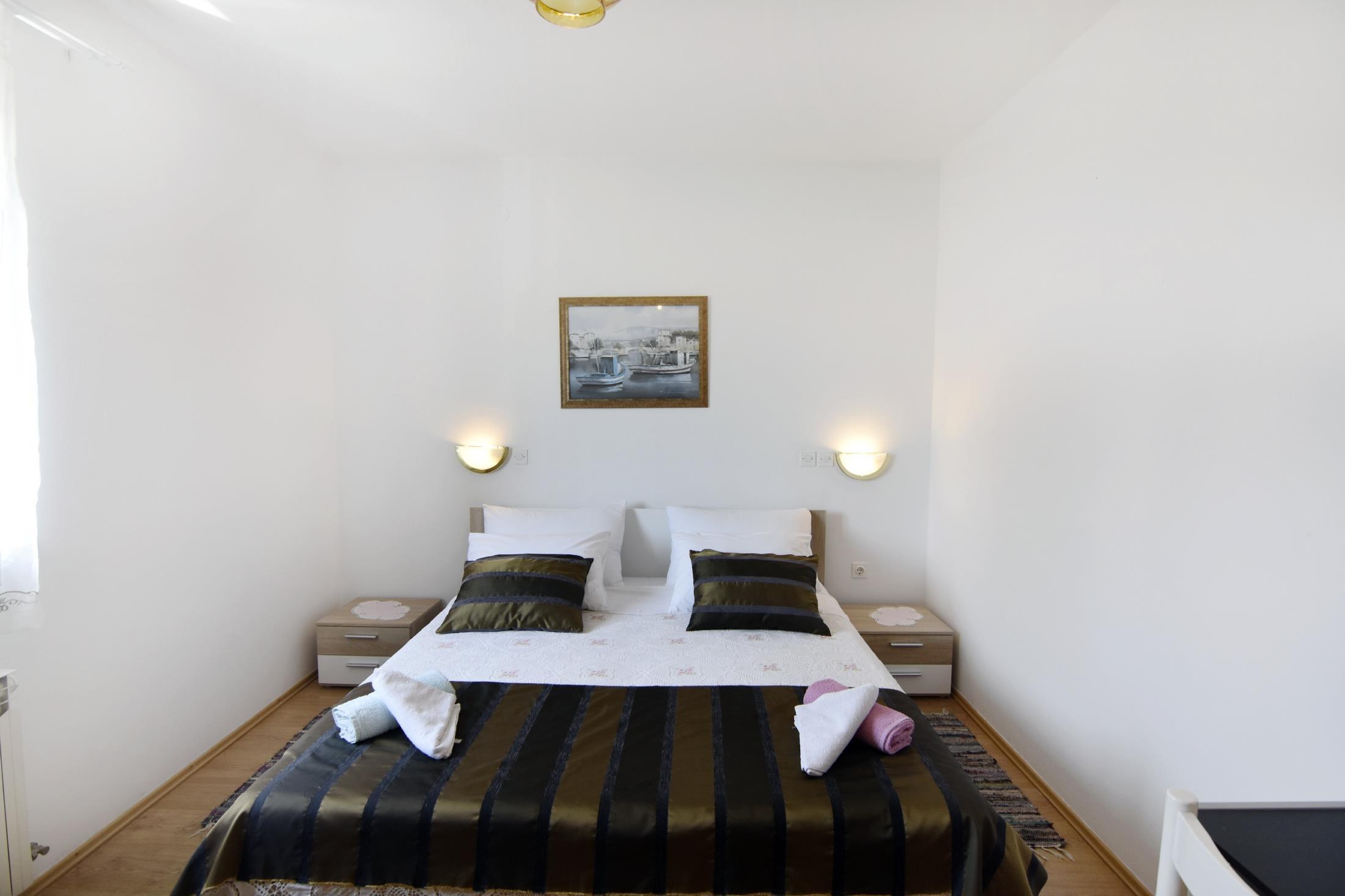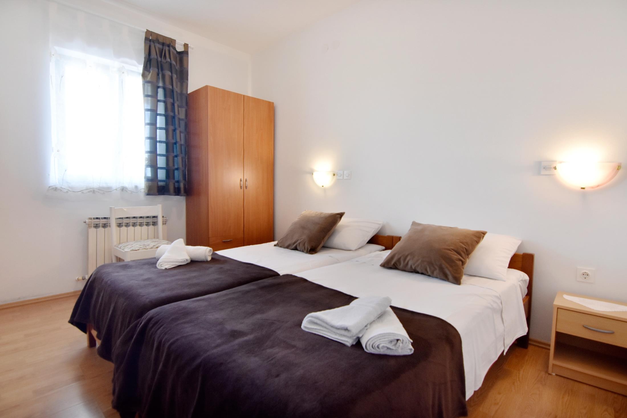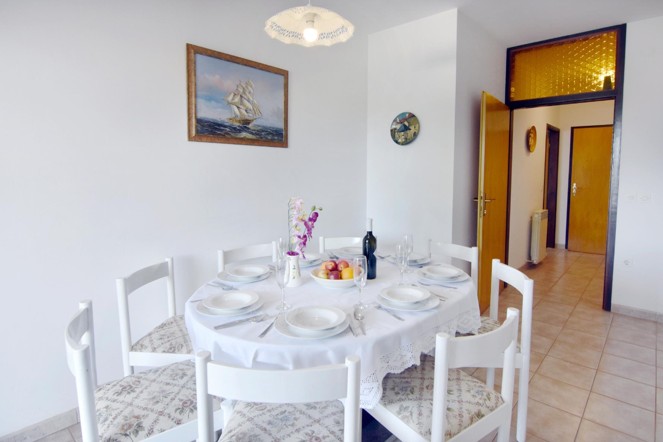 Apartment can accommodate 8 guests. Beds are situated in 3 sleeping rooms, within 72m2. Guests can use a private terrace to enjoy the warm summer evenings. Food can be prepared using barbecue which is shared with other guests too. This accommodation unit welcomes pets at an additional charge.