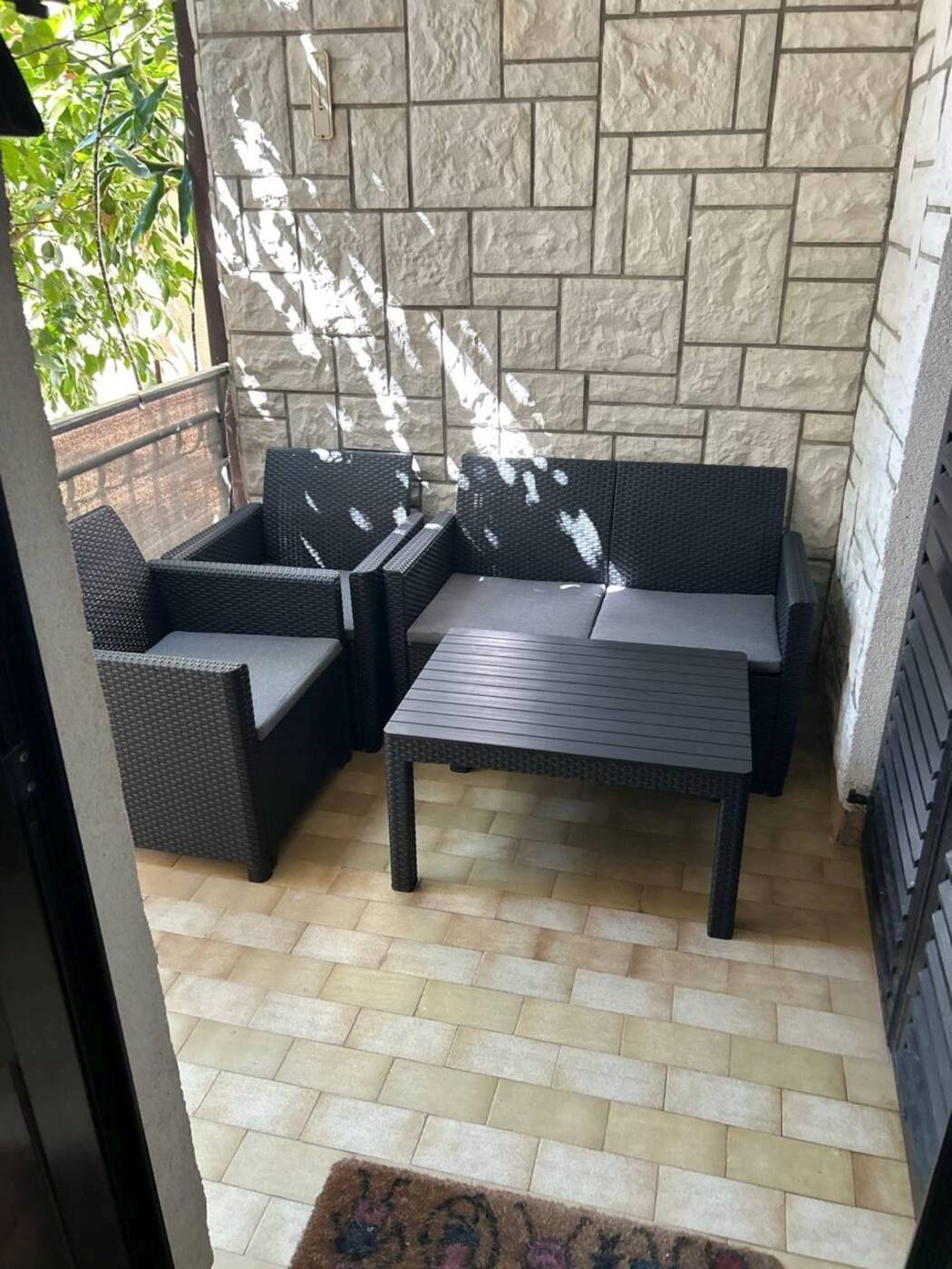 Flat with balcony, 40 m², 70 metres from the beach, space for up to 3 people, ground floor, WLAN, satellite TV, air conditioning, shared use of garden