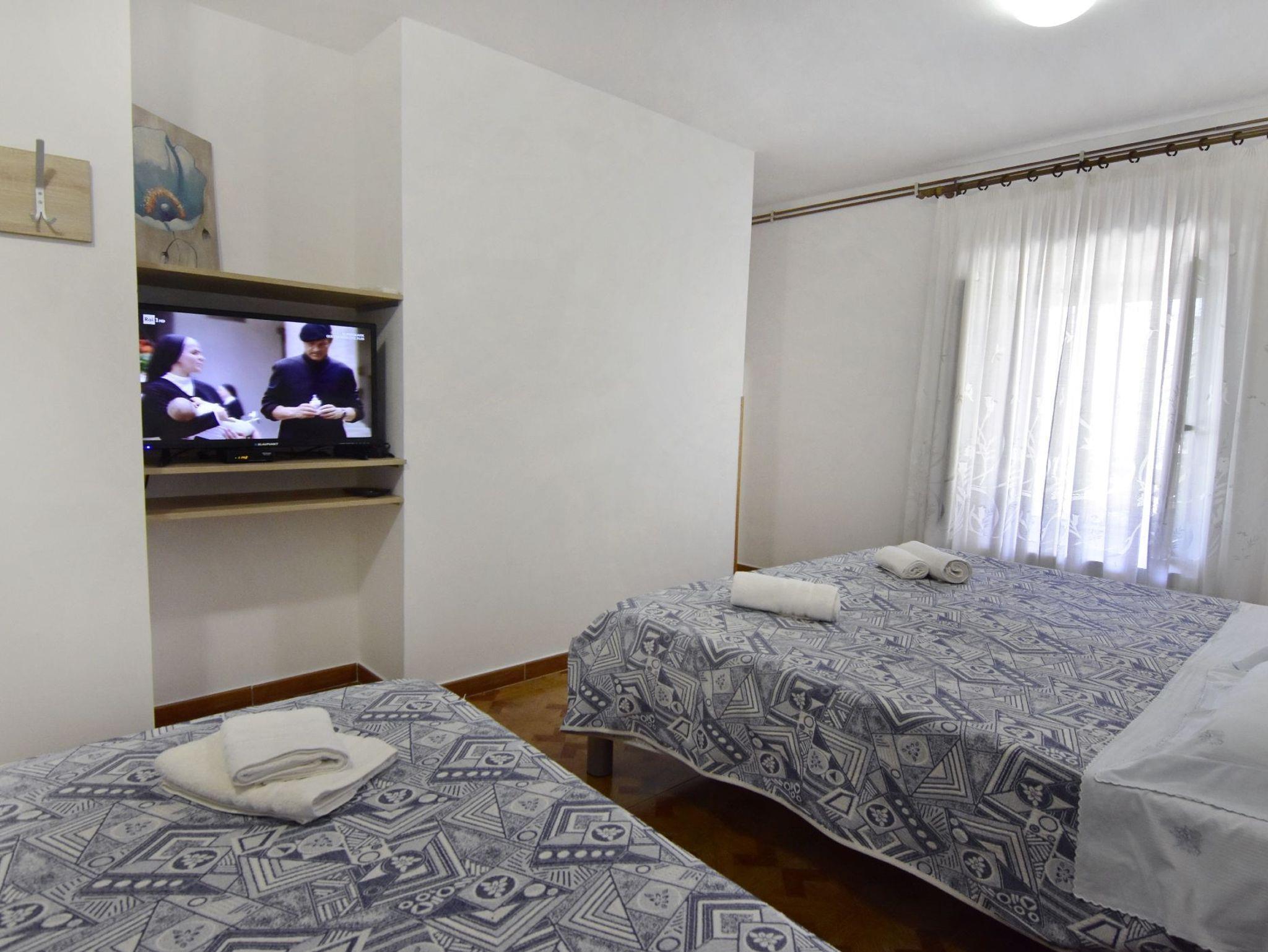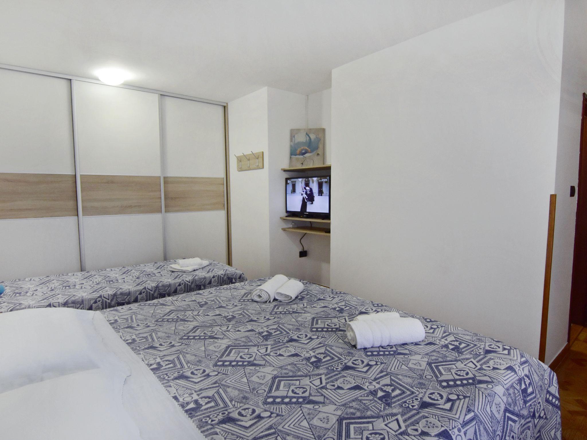 Ferienwohnung bietet Platz für 4 Gäste. Die Betten sind in Schlafzimmern, die es 1 gibt, und in Wohnzimmer, innerhalb einer Gesamtfläche von 55m2, angeordnet. Die Gäste haben eine eigene Terrasse zur Verfügung, auf der sie in warmen Sommernächten genießen können. IM PREIS INBEGRIFFEN: Kurtaxe, Endreinigung, Klimatisierung, Parkplatz, Internet, Föhn. Die Verfügbarkeit zusätzlicher Dienstleistungen in Ihrem reservierten Termin und die Preise derselben (falls nicht aufgeführt) müssen im Voraus überprüft werden. Zusätzliche Dienstleistungen die in der Zahlungsaufforderung nicht aufgeführt sind werden direkt beim Vermieter bezahlt, angenommen der Gast nutzt auch diese.