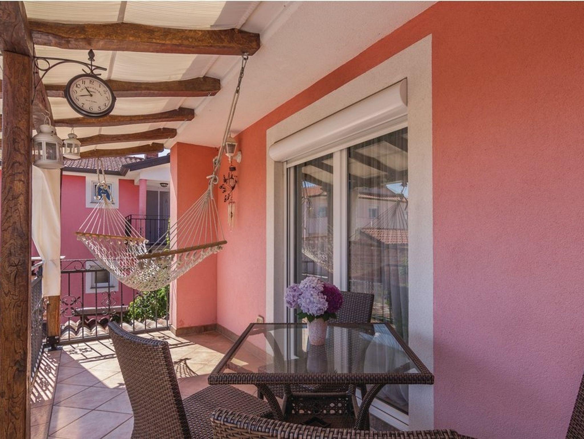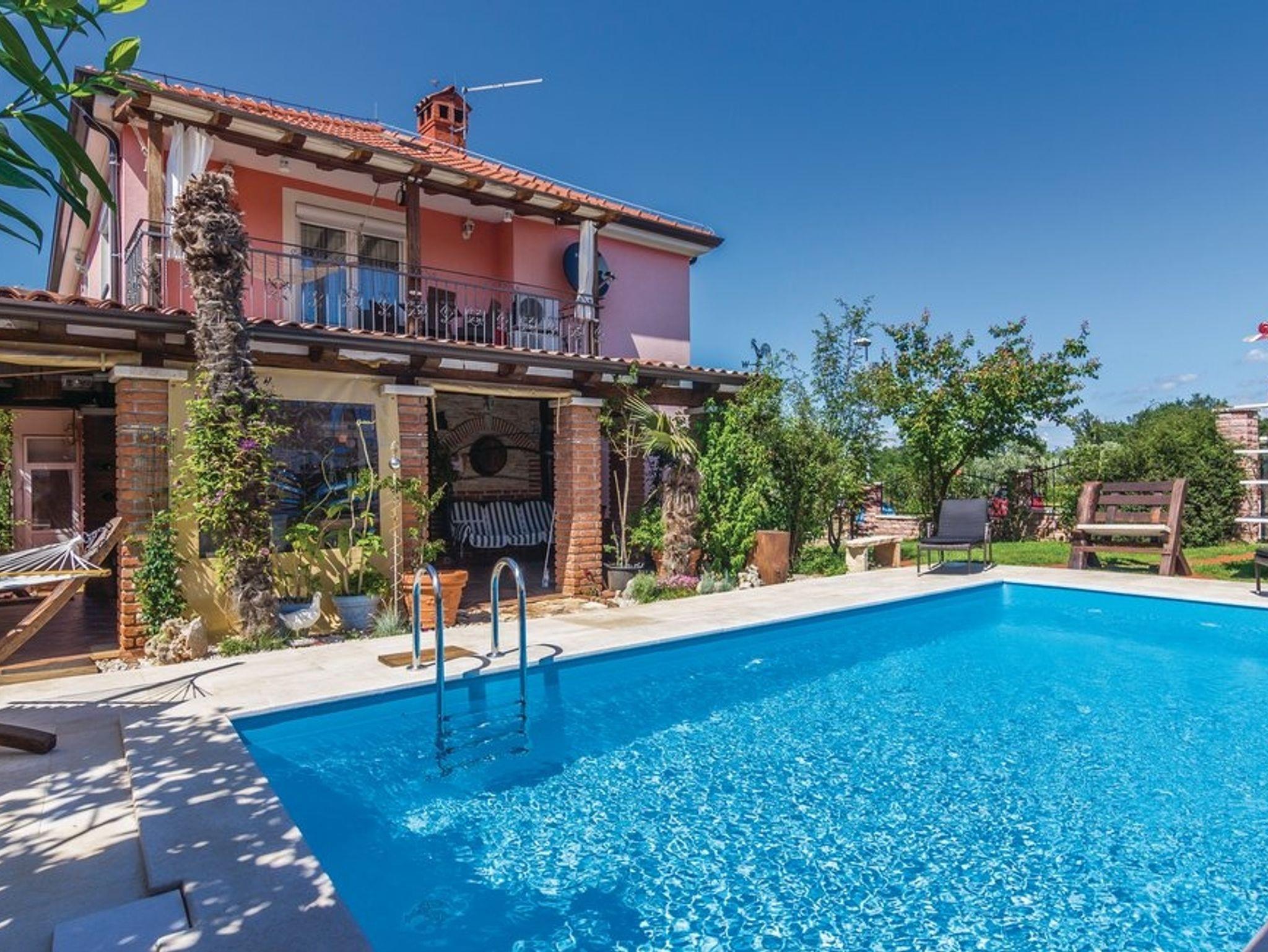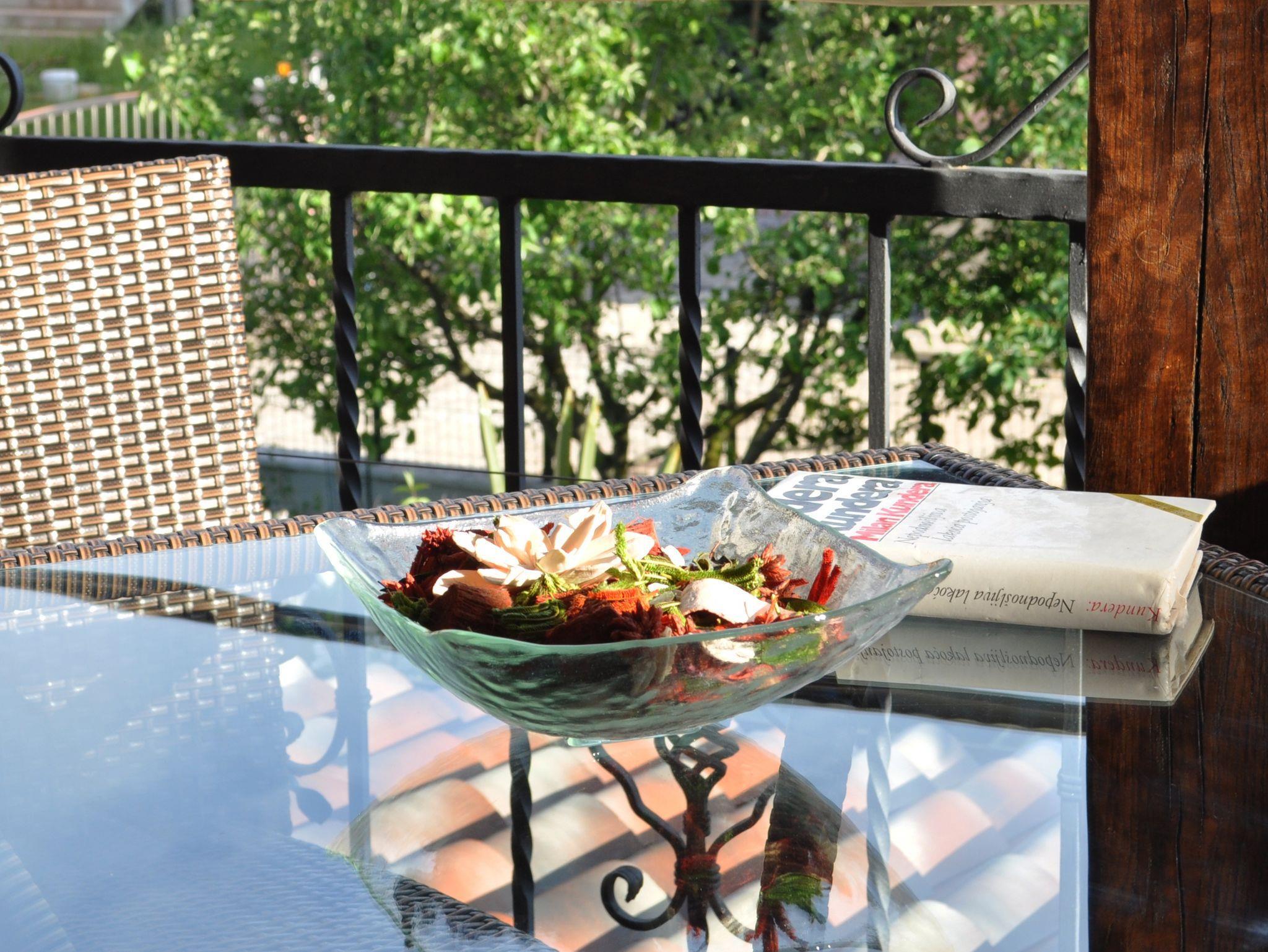 Umgebung des Objekts (Ordentlich), Hof (100m2, Kinderbereich, Sitzbereich), Parkplatz (Anzahl der Parkplätze: 2, Entfernung vom Objekt: im Hof), Parkplatz (Anzahl der Parkplätze: 2, Entfernung vom Objekt: 10 m), Pool: gemeinsam, Dimensionen: 7m x 3.5m x 1.4m, Wassertyp: Süßwasser, Grill: gemeinsam, WiFi Internet, Wäschewaschen, Föhn, Bügeleisen, Kinderbett