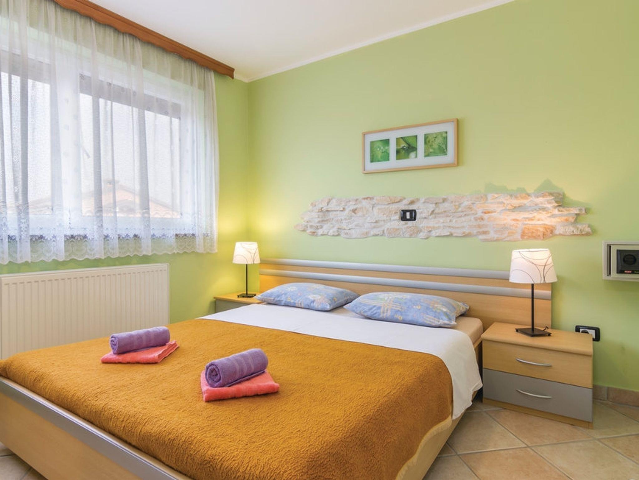 Ferienwohnung bietet Platz für 4 Gäste. Die Betten sind in Schlafzimmern, die es 1 gibt, und in Wohnzimmer, innerhalb einer Gesamtfläche von 35m2, angeordnet. Die Gäste haben eine eigene Terrasse zur Verfügung, auf der sie in warmen Sommernächten genießen können. Es ist erlaubt, Speisen auf dem Gemeinschafts-Grill vorzubereiten. Während ihres Aufenthalts können Gäste das gemeinsam zur Nutzung stehende Schwimmbad benutzen. IM PREIS INBEGRIFFEN: Kurtaxe, Endreinigung, Klimatisierung, Pool, Parkplatz, Internet, Kinderbett, Bügeleisen, Föhn. VERBINDLICHE ZUSÄTZLICHE KOSTEN: Aufzahlung für Kurzaufenthalte (prozentualer Zuschlag pro Nächtigungsanzahl: 30% - 1, 20% - 2, 10% - 3). UNVERBINDLICHE ZUSÄTZLICHE KOSTEN: Zentralheizung (6,00 € pro Nacht), Wäschewaschen (4,00 € Waschen). Die Verfügbarkeit zusätzlicher Dienstleistungen in Ihrem reservierten Termin und die Preise derselben (falls nicht aufgeführt) müssen im Voraus überprüft werden. Zusätzliche Dienstleistungen die in der Zahlungsaufforderung nicht aufgeführt sind werden direkt beim Vermieter bezahlt, angenommen der Gast nutzt auch diese. Ermäßigung auf den Grundpreis: Gratistag 14=13 (bei einem Aufenthalt von 14 Tagen oder mehr erhalten Sie einen Gratistag für den Aufenthalt bis 31.12.26).