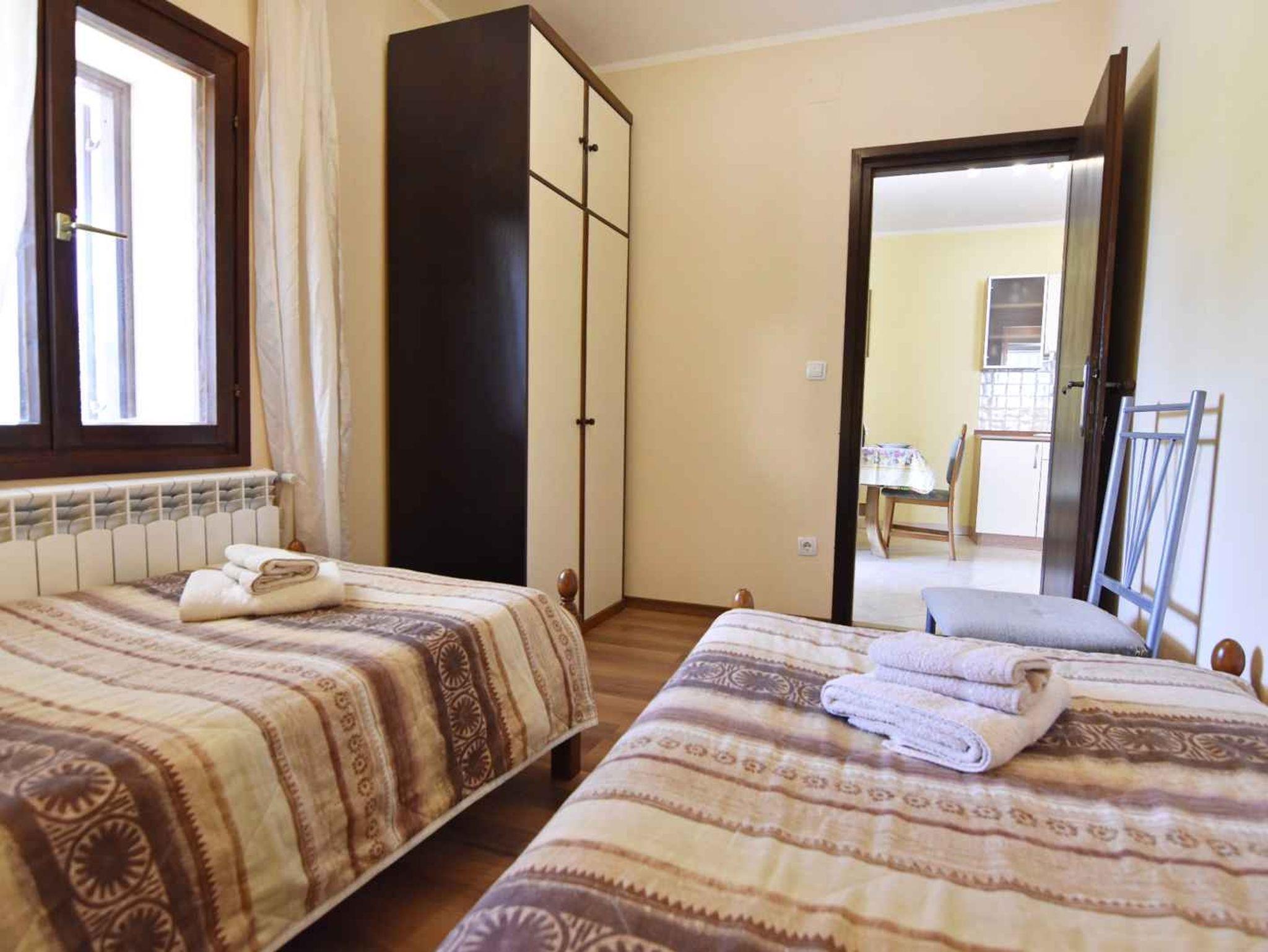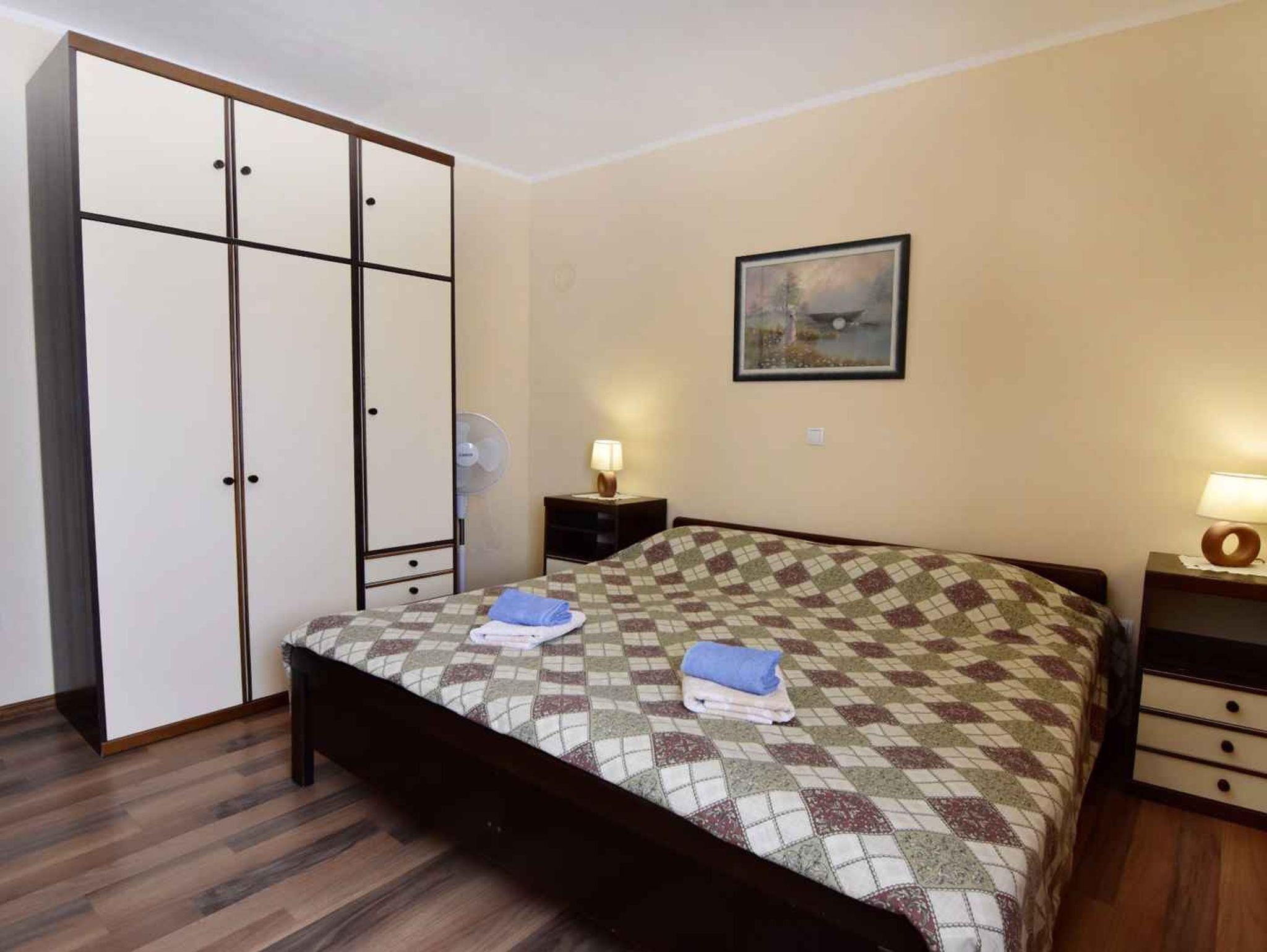 Ferienwohnung bietet Platz für 5 Gäste. Die Betten sind in Schlafzimmern, die es 2 gibt, innerhalb einer Gesamtfläche von 46m2, angeordnet. Die Gäste haben eine eigene Terrasse zur Verfügung, auf der sie in warmen Sommernächten genießen können. Für vollen Genuss und Entspannung gibt es einen privaten Grill für Gäste dieser Unterkunft. In der Unterkunftseinheit besteht die Möglichkeit des Mitbringens von Haustieren gegen Aufpreis. IM PREIS INBEGRIFFEN: Kurtaxe, Endreinigung, Klimatisierung, Parkplatz, Internet. UNVERBINDLICHE ZUSÄTZLICHE KOSTEN: Haustiere (13,00 € pro Nacht). Die Verfügbarkeit zusätzlicher Dienstleistungen in Ihrem reservierten Termin und die Preise derselben (falls nicht aufgeführt) müssen im Voraus überprüft werden. Zusätzliche Dienstleistungen die in der Zahlungsaufforderung nicht aufgeführt sind werden direkt beim Vermieter bezahlt, angenommen der Gast nutzt auch diese.