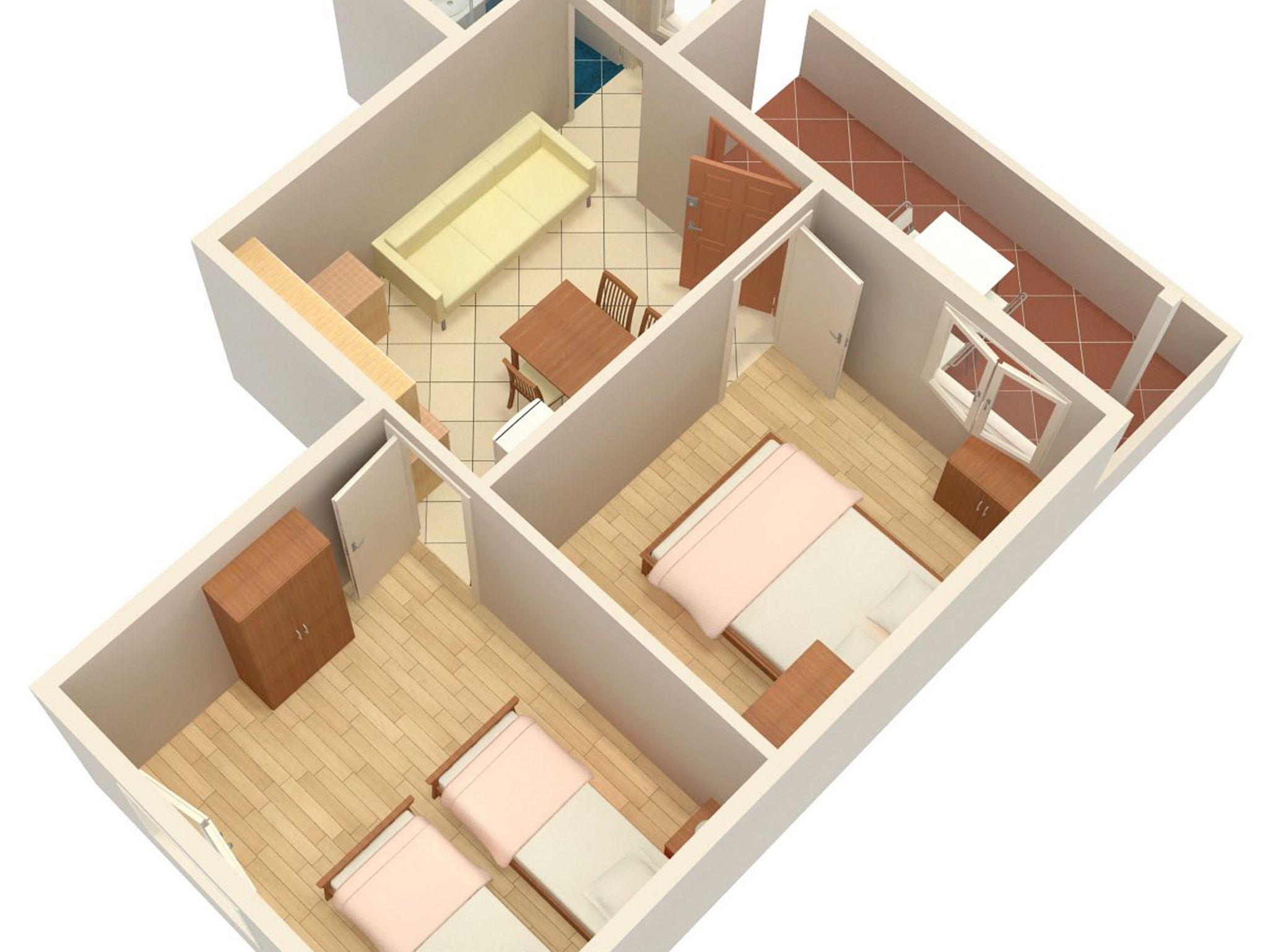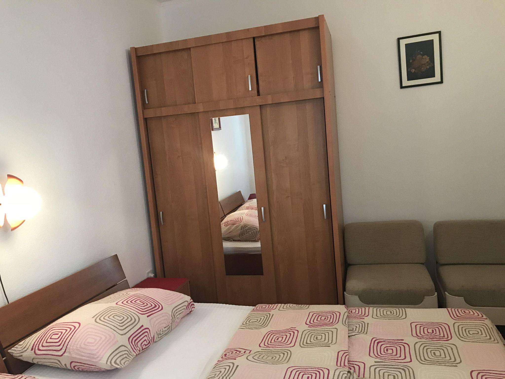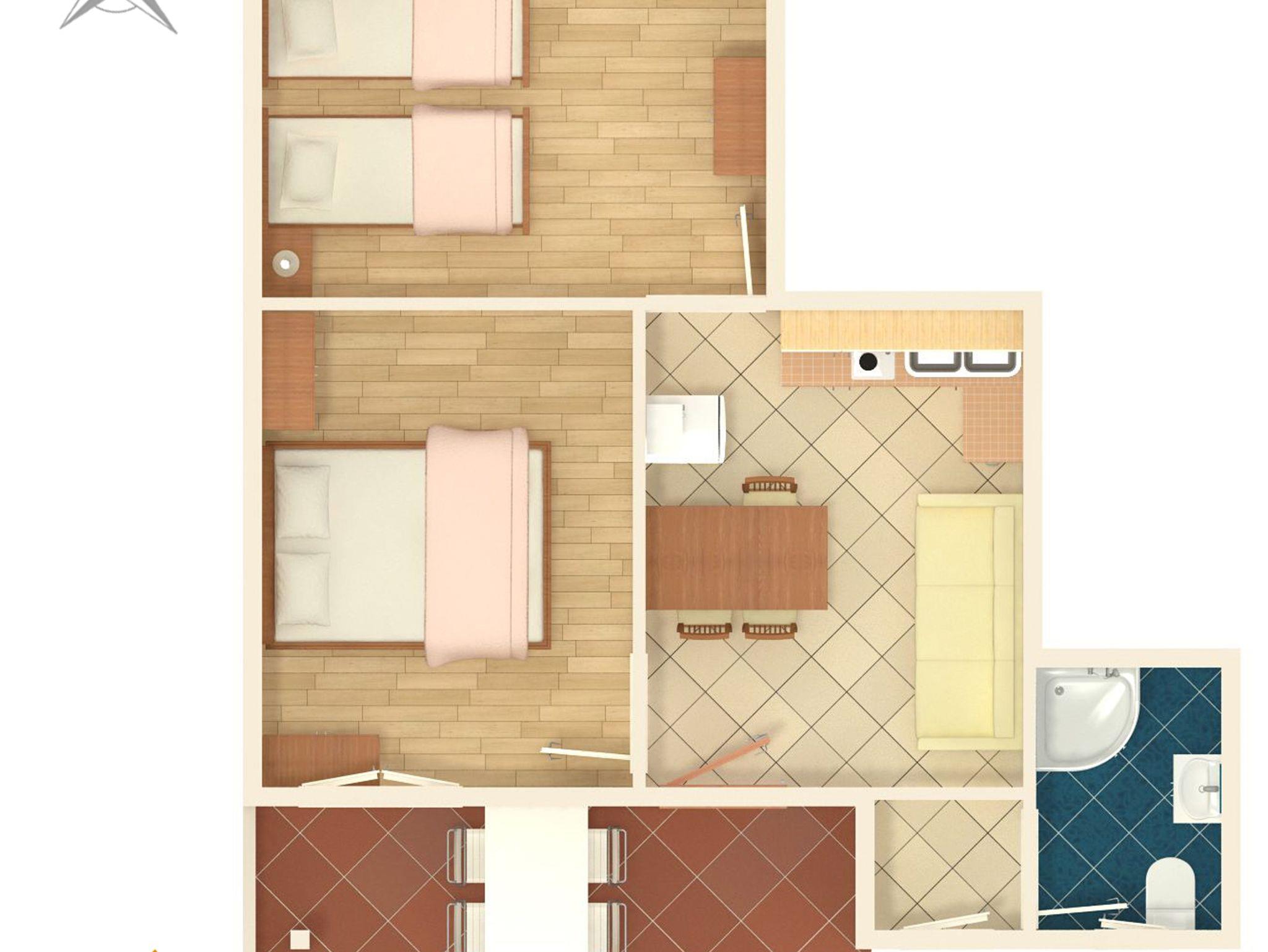 Ferienwohnung bietet Platz für 4 Gäste. Die Betten sind in Schlafzimmern, die es 2 gibt, innerhalb einer Gesamtfläche von 34m2, angeordnet. Die Gäste haben eine eigene Terrasse zur Verfügung, auf der sie in warmen Sommernächten genießen können. Es ist erlaubt, Speisen auf dem Gemeinschafts-Grill vorzubereiten. IM PREIS INBEGRIFFEN: Kurtaxe, Endreinigung, Klimatisierung, Parkplatz, Internet, Wäschewaschen, Bügeleisen, Bügelbrett, Föhn. VERBINDLICHE ZUSÄTZLICHE KOSTEN: Aufzahlung für Kurzaufenthalte (prozentualer Zuschlag pro Nächtigungsanzahl: 30% - 1, 20% - 2, 10% - 3). Die Verfügbarkeit zusätzlicher Dienstleistungen in Ihrem reservierten Termin und die Preise derselben (falls nicht aufgeführt) müssen im Voraus überprüft werden. Zusätzliche Dienstleistungen die in der Zahlungsaufforderung nicht aufgeführt sind werden direkt beim Vermieter bezahlt, angenommen der Gast nutzt auch diese. Ermäßigung auf den Grundpreis: Gratistag 14=13 (bei einem Aufenthalt von 14 Tagen oder mehr erhalten Sie einen Gratistag für den Aufenthalt bis 31.12.26).