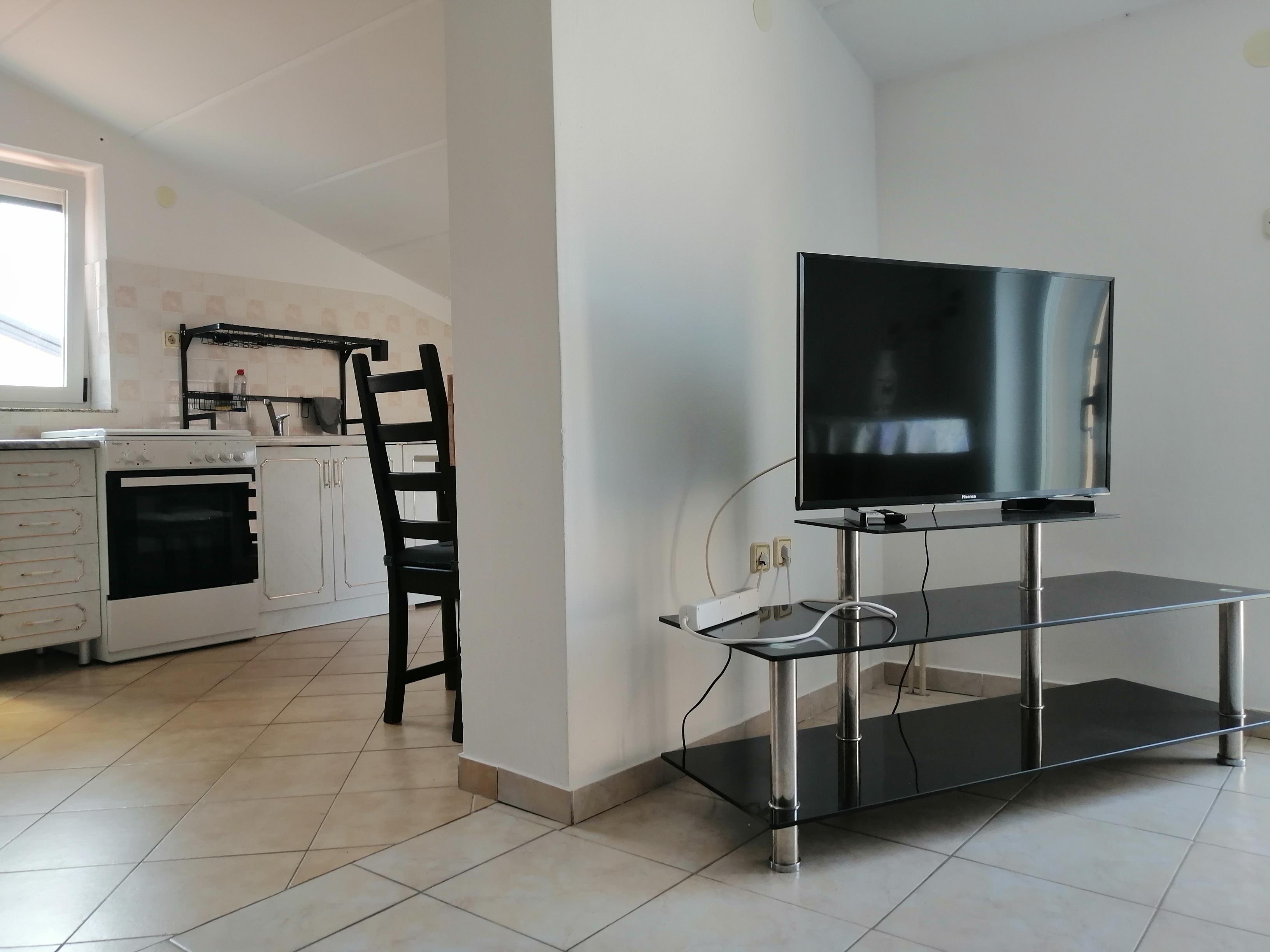 Apartment can accommodate 5 guests. Beds are situated in 2 sleeping rooms, but also in the living room, within 83m2. Guests can use a private terrace to enjoy the warm summer evenings. Food can be prepared using barbecue which is shared with other guests too.