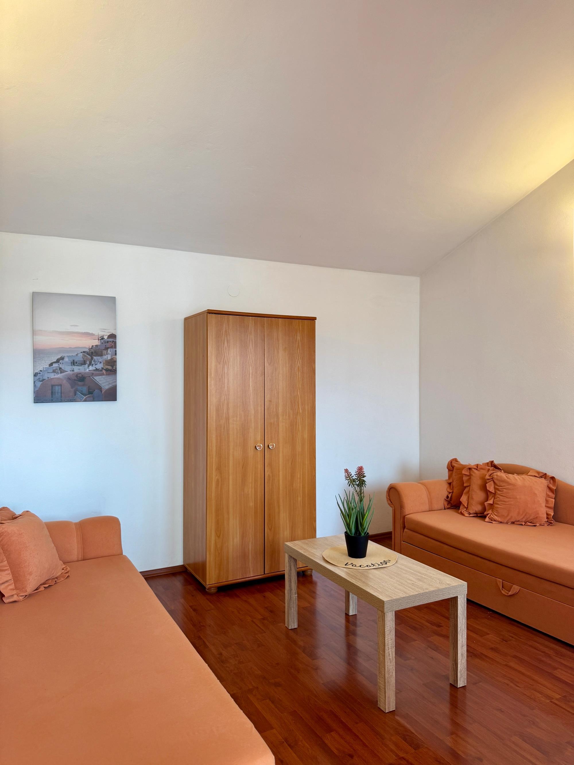 Apartment can accommodate 4 guests. Beds are situated in 1 sleeping rooms, but also in the living room, within 42m2. Guests can use a private balcony to enjoy the warm summer evenings. Food can be prepared using barbecue which is shared with other guests too. This accommodation unit welcomes pets at an additional charge.