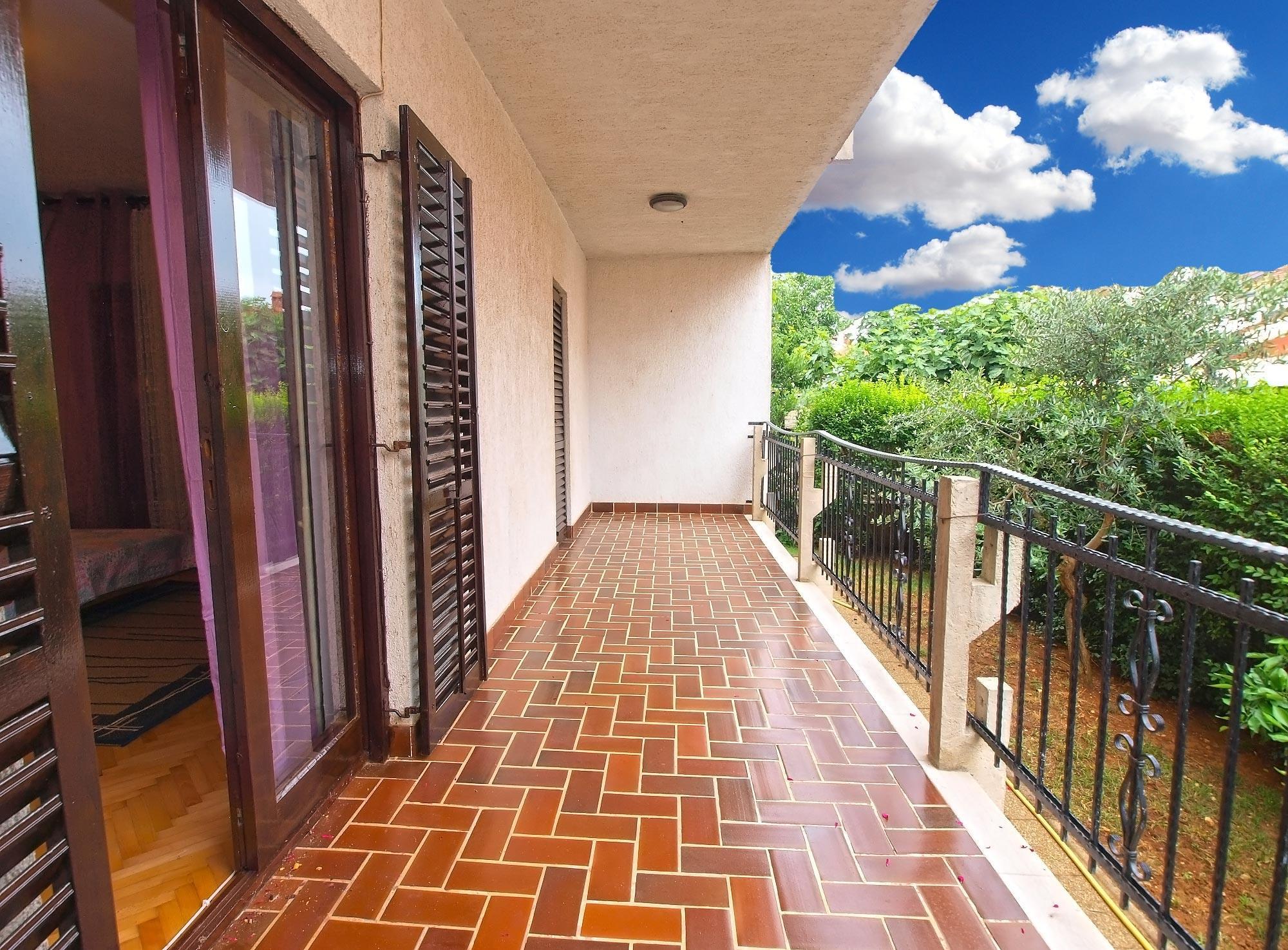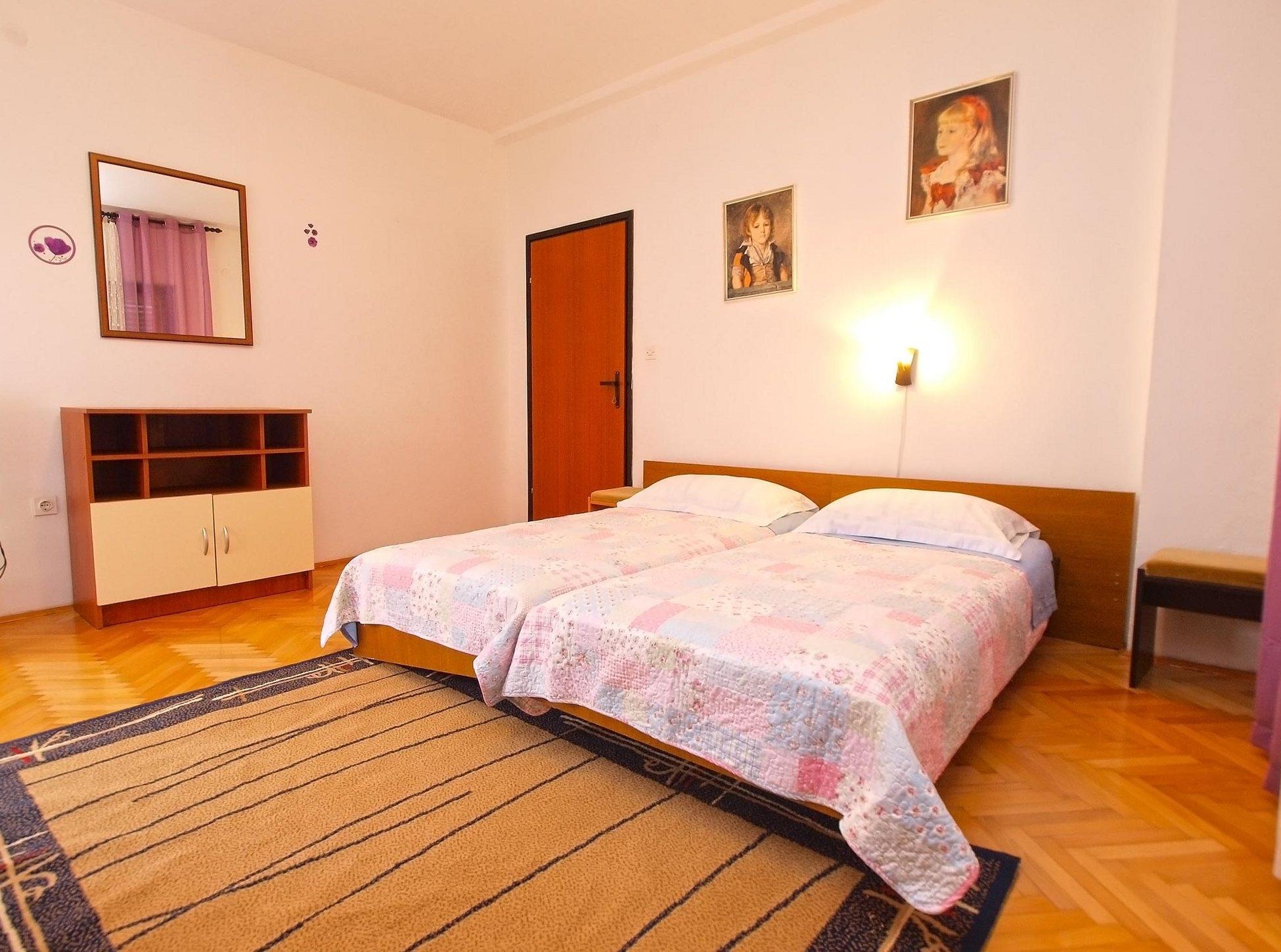 Apartment can accommodate 5 guests. Beds are situated in 2 sleeping rooms, but also in the dining room, within 50m2. Guests can use a private terrace to enjoy the warm summer evenings. Food can be prepared using barbecue which is shared with other guests too.