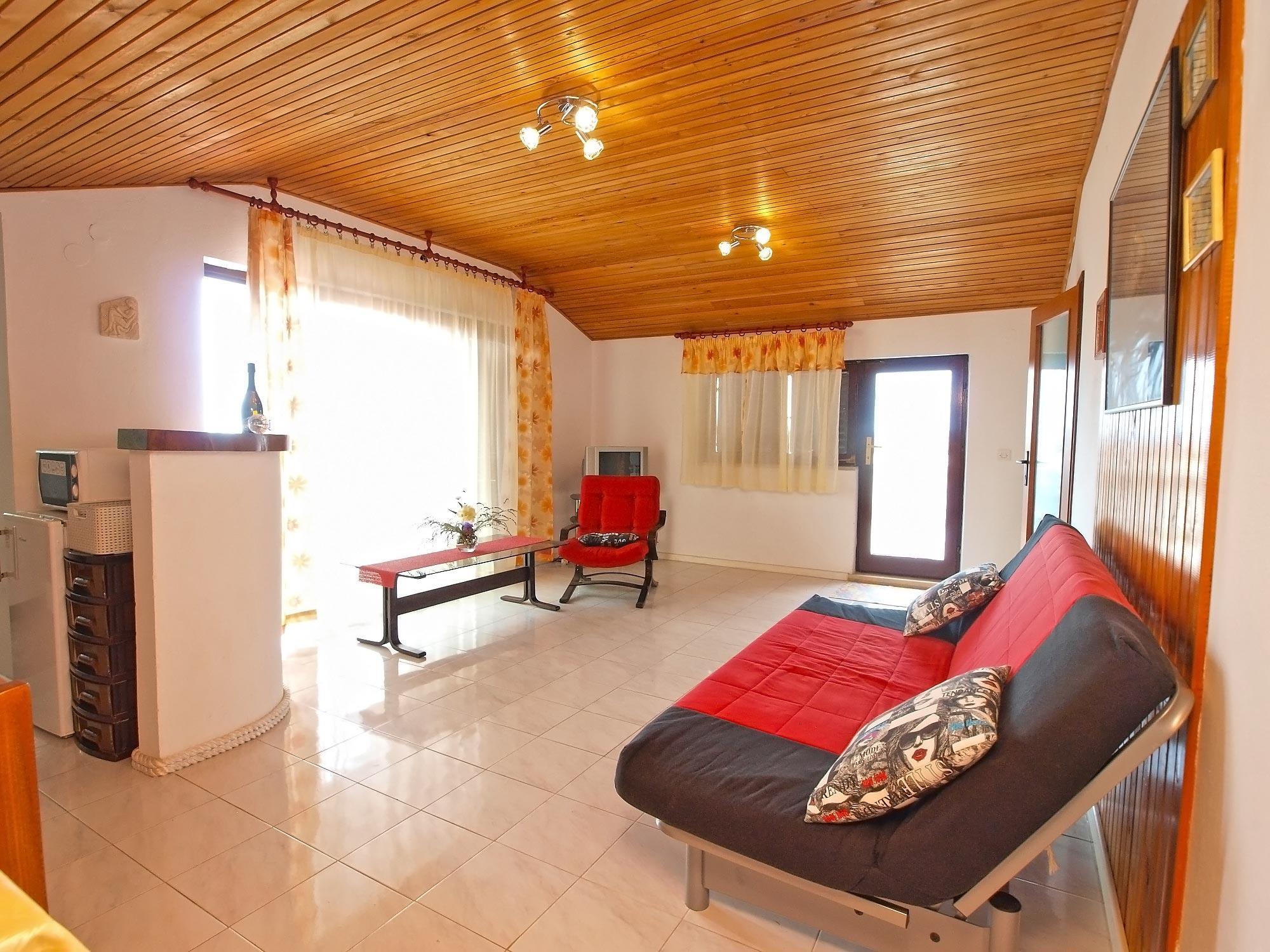 Apartment can accommodate 5 guests. Beds are situated in 2 sleeping rooms, but also in the living room, within 50m2. Guests can use a private terrace to enjoy the warm summer evenings. Food can be prepared using barbecue which is shared with other guests too.