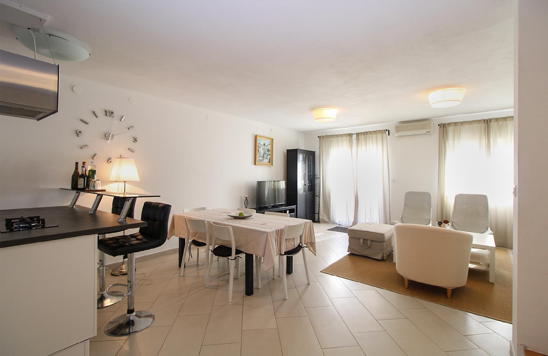 House 1581/16219 has 6 beds (basic beds: 5 and extra beds: 1).The area of the apartment is 100m2 and is situated on the ground floor.House 1581/16219 has: Air condition, Internet, Tv.