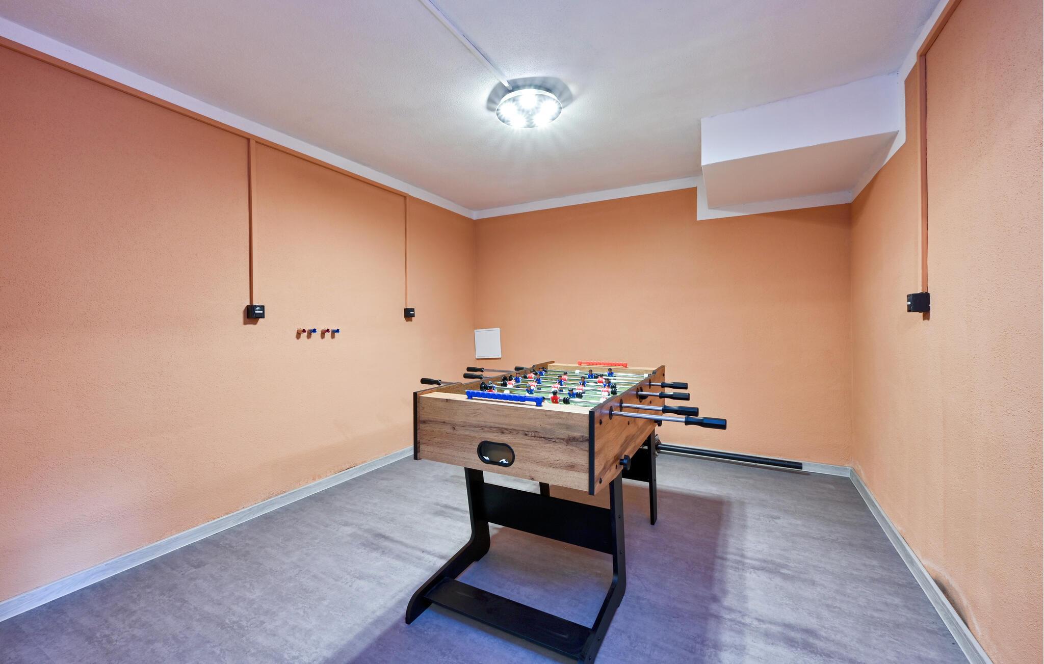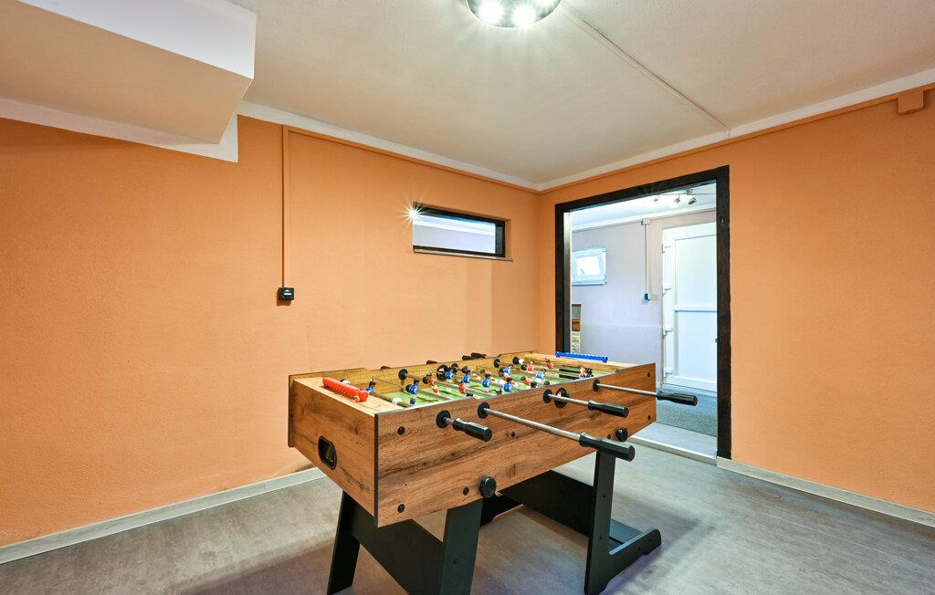 Dieses familienfreundliche Ferienhaus auf mehreren Etagen bietet Ihnen alles, was Sie für einen entspannten Urlaub benötigen. Die geschmackvolle Einrichtung schafft eine behagliche Atmosphäre, in der sich die ganze Familie wohlfühlen kann. Im unteren Stockwerk warten eine private Bar und ein Tischfußballtisch für gesellige Abende. Genießen Sie die herrliche Aussicht auf die grüne Landschaft von einer der zwei Terrassen aus, wo Sie auch einen großen Grillplatz finden. Der aufgestellte Pool im Garten lädt Sie an heißen Tagen zum Erfrischen ein.
