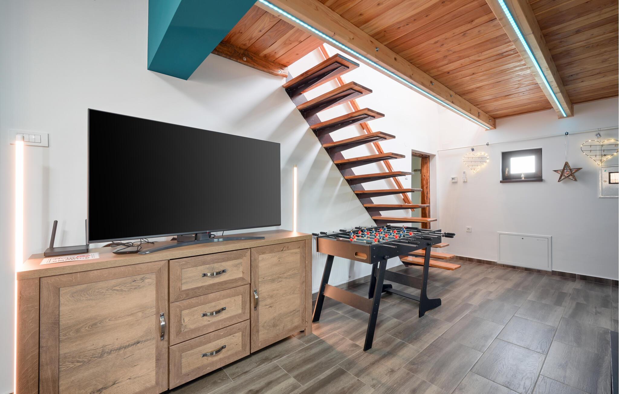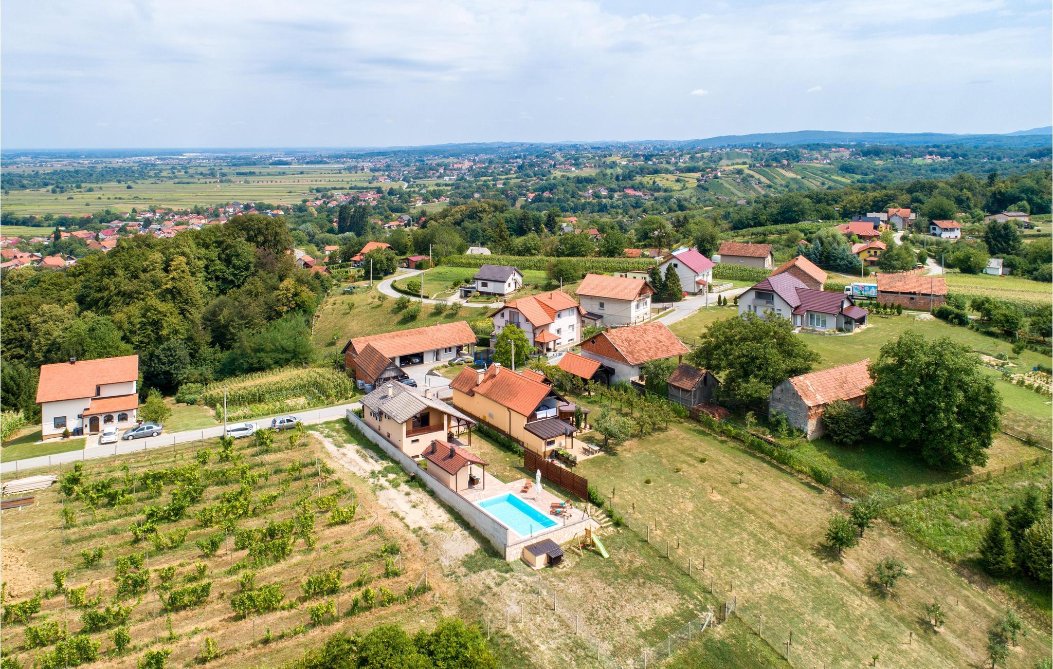 Gelegen nördlich der Hauptstadt Zagreb in der Nähe zur slowenischen Grenze, ist dieses fantastische Haus ein ideales Urlaubsheim, das sie mit bester Aussicht über die tiefergelegene Landschaft willkommen heißt. Praktische Einrichtung, Pool uns Sauna erzeugen ein heimeliges Wohngefühl. Bestens geeignet ist das Haus auch für Kinder und Haustiere.