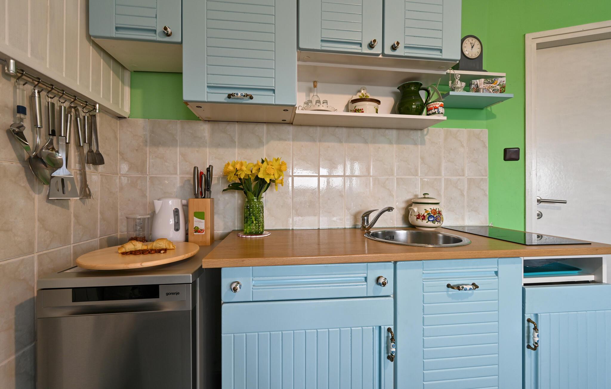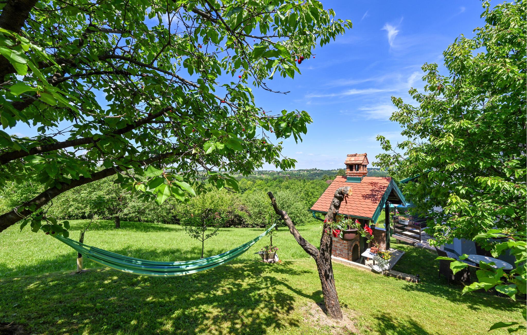 Sie wohnen hier in der Nähe des Kurortes Varazdin, bekannt für sein heilendes Thermalwasser, seine alten römischen Bäder und seine Heilwasserquelle. Gönnen Sie sich wohltuende Entspannung und erleben die Weiden, Weinbergen und Obstgärten und blicken auf die Landschaft. In der Umgebung gibt es zahlreiche Restaurants und Weingüter, in denen Sie einheimische Weinsorten probieren können. Besuchen Sie die Stadt Varazdin mit ihrem reichen Angebot an kulturellen und historischen Sehenswürdigkeiten und kehren mit neuer Energie in Ihren Alltag zurück.
